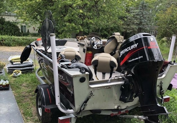 2004 Princecraft Holiday DLX SC 162. Beautiful fishing boat. Very well maintained by a fishing lover. Keep warm all winter. You have the opportunity to have a boat owned by a perfectionist. What has been redone last year. - electrical wiring - steering cable - addition of interior lights Included in the sale price: - Hummingbird HELIX 7 Sonar - Minn Kota 55 lbs electric motor with remote control - Mercury 50hp 4 stroke engine with cover - spare propeller - TRAC electric anchor with auto-anchorage (really a great feature) - livewell (fills and empties with a button) - 3 new foldable Princecraft seats - bilge pump< - storage box - new steering wheel - complete safety kit (gaffe, extinguisher, horn, floating cable, fleets) - 4 tusks - 2 floating auto-fishing safety belts (value over $450) - 2 draws (including 1 large format) - transport canvas - Princecraft trailer galvanized 1 axle with spare wheel Denver shoe - 2 12v batteries for the electric motor including a new one - electric charger - cane doors - glass holders - AM FM bluetooth radio Many other things such as a battery charger, a battery booster, an oar, fishing gloves, etc...