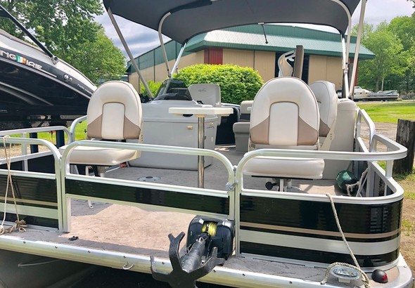 2011 Misty Harbor 2085 FS Pontoon. 20 Foot Pontoon Boat in Beautiful shape. The boat is 2011, Engine new in 2015. Brand new cover and POWER BIMINI TOP was just installed last year.2015 Trailer included and like new (used once)! It has been stored in Indoors Rack Storage. Prepped and winterized - READY for a new owner. New power bimini top. Included depth finder, cover, trailer, Power Bimini Top, anchor, batteries, portable toilet.