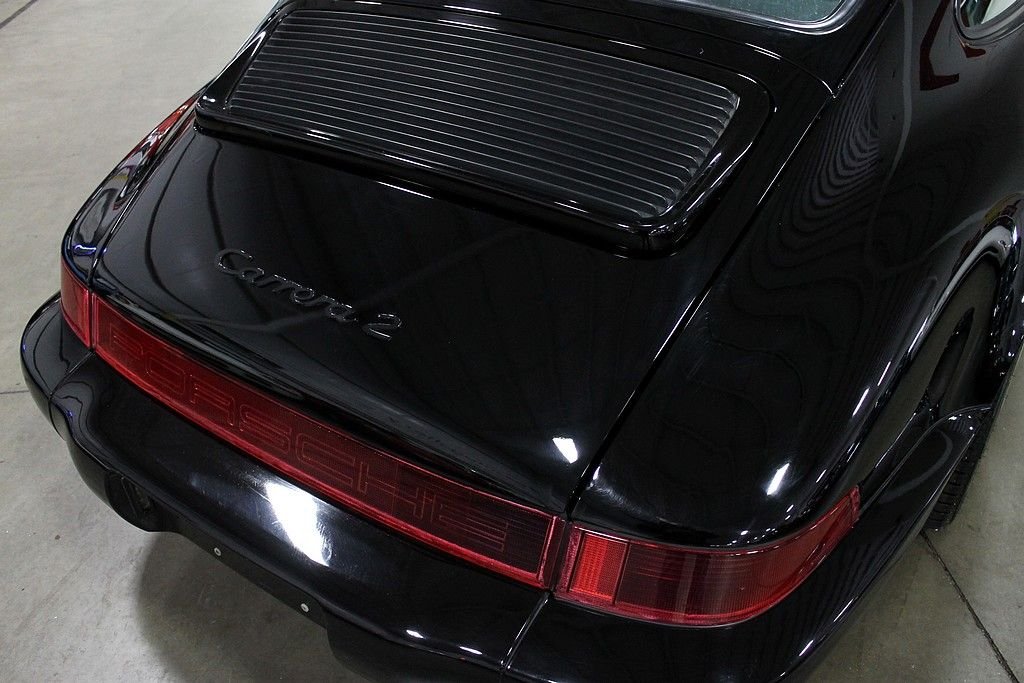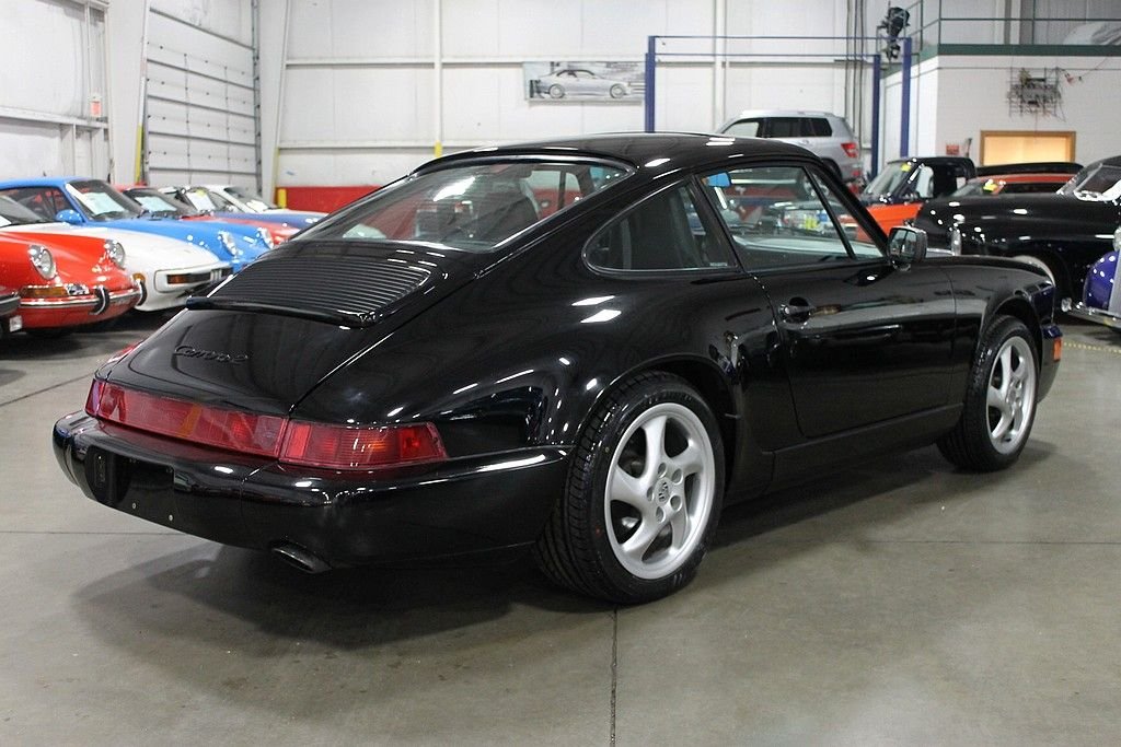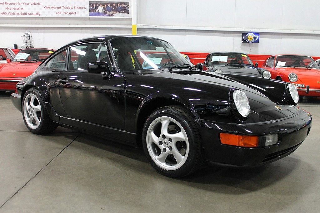 The Porsche 964 is perhaps Porsche's most innovative model for their famed air-cooled generation of cars. It was a bold departure from the beloved Carrera of the late 80's. Porsche boldly beefed up its performance with a newly designed 3.6 liter air cooled flat six power plant producing 247 hp and the Carrera 2 version delivering 0 to 60 times in 5.5 seconds. The 964 also introduced for the first time coil spring suspension, power steering, and ABS brakes bringing the overall performance of Porsche's new 911 to a whole new level. The new body design consisted of smoother bumpers, more integrated rockers and most notably the recessed rear spoiler that would raise when speeds reached 45 MPH all while preserving the beautiful lines of the car while at rest. The 1990 Porsche 911 Type 964 Carrera 2 offered has had three owners and was harvested out of the state of California. The car is well equipped with standard features and is also optioned with Automatic Speed Control and amplified stereo system. The Black / black color combination is considered by many to be the most attractive for the car and the added 17 inch Turbo Twist Wheels are an added bonus. The car comes complete with owners manual, stamped service book, tools, air compressor and space saver spare. It has been routinely maintained for 72752 miles and is ready to satisfy a new owner. Air Cooled Porsche 911's are some of the most sought after cars on the planet. The give huge driver satisfaction and are time after time proven investments.