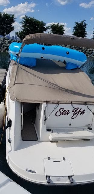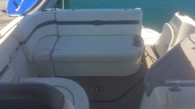 Sporty cruiser with large cockpit and oversized swim platform for entertaining. Freshwater boat. Trailer included.