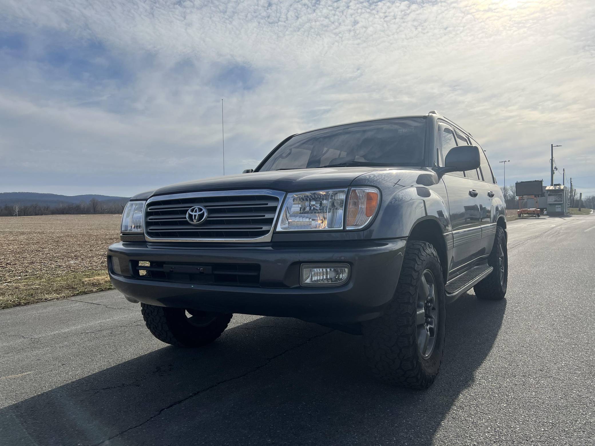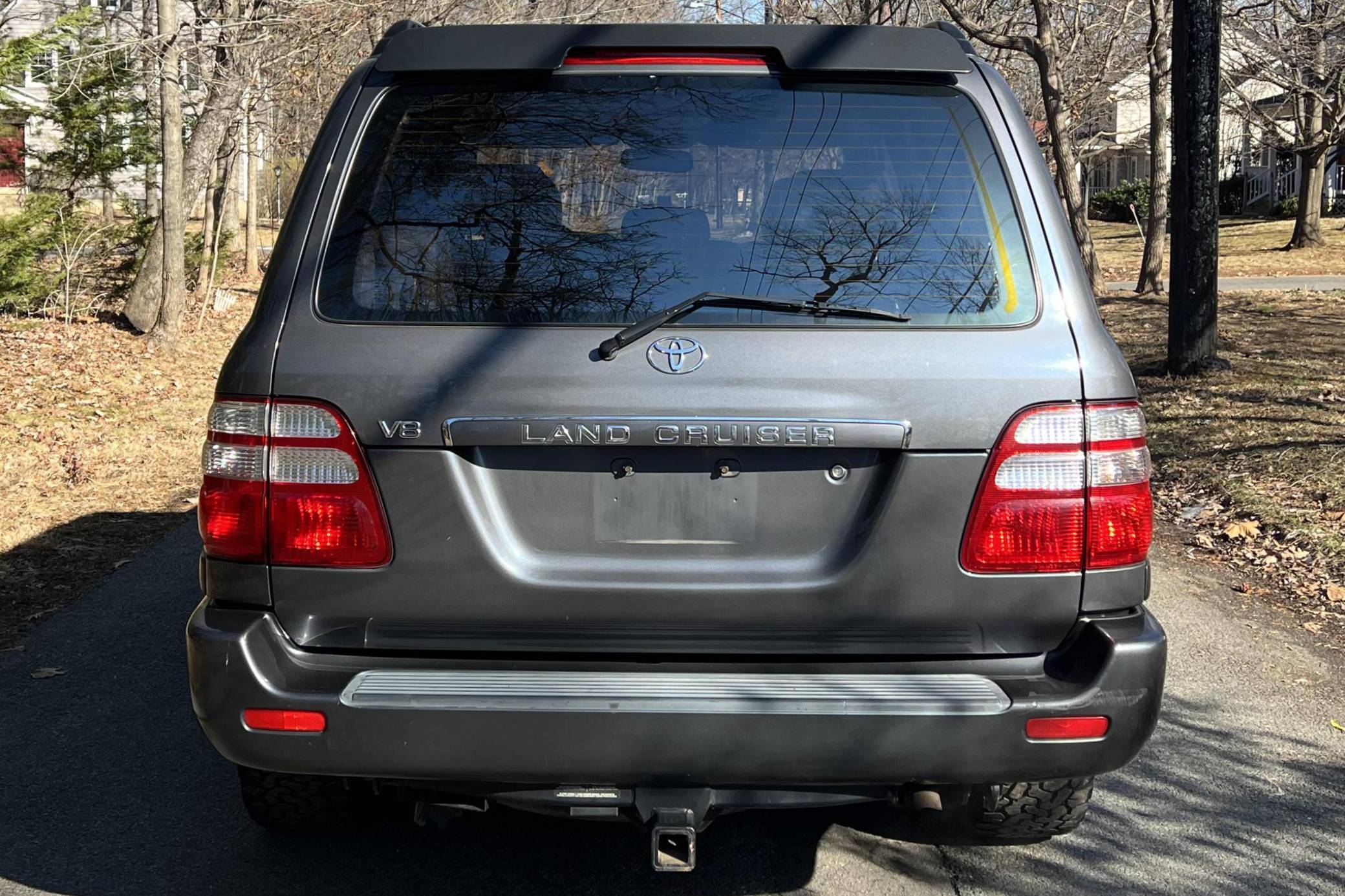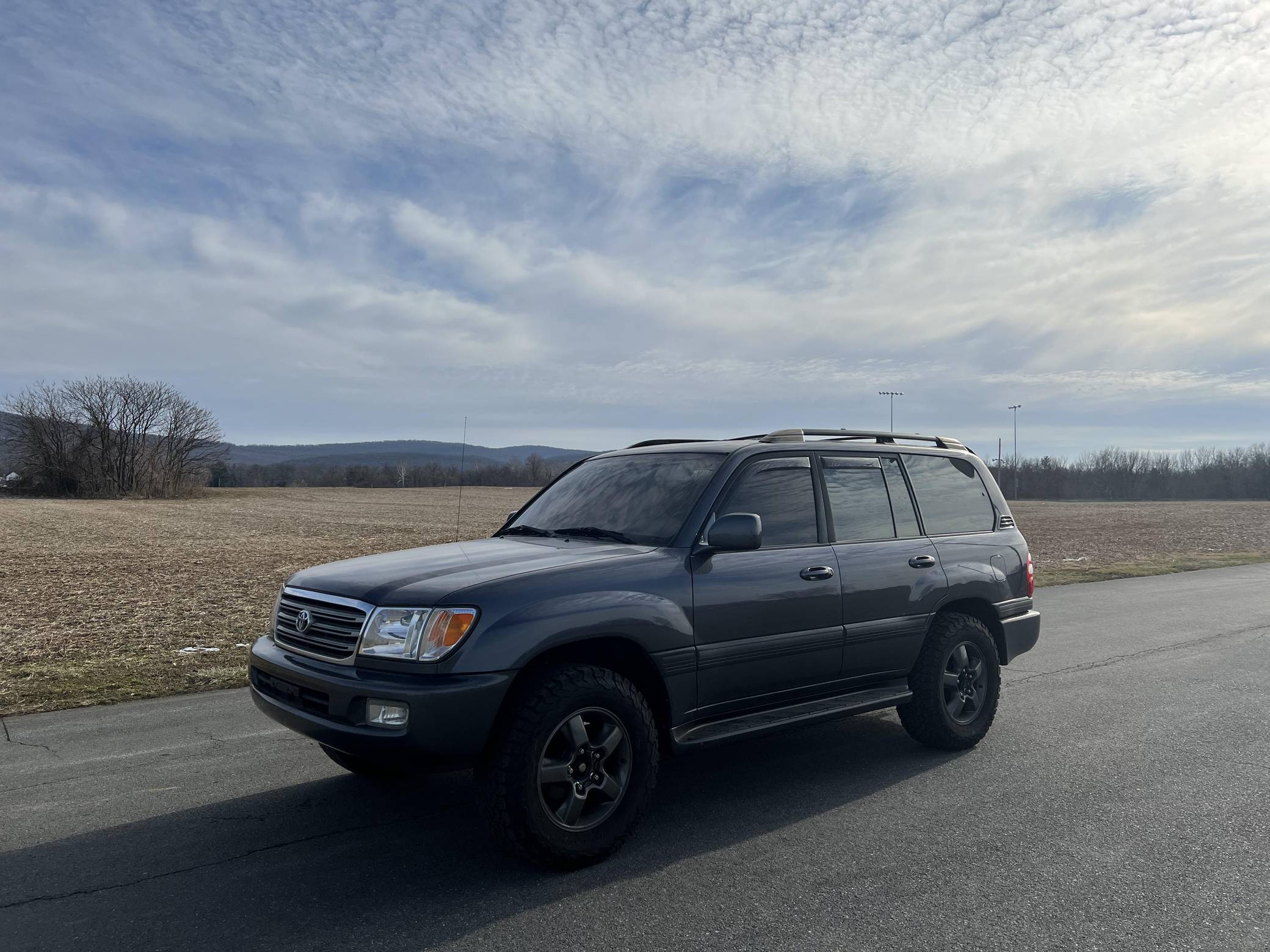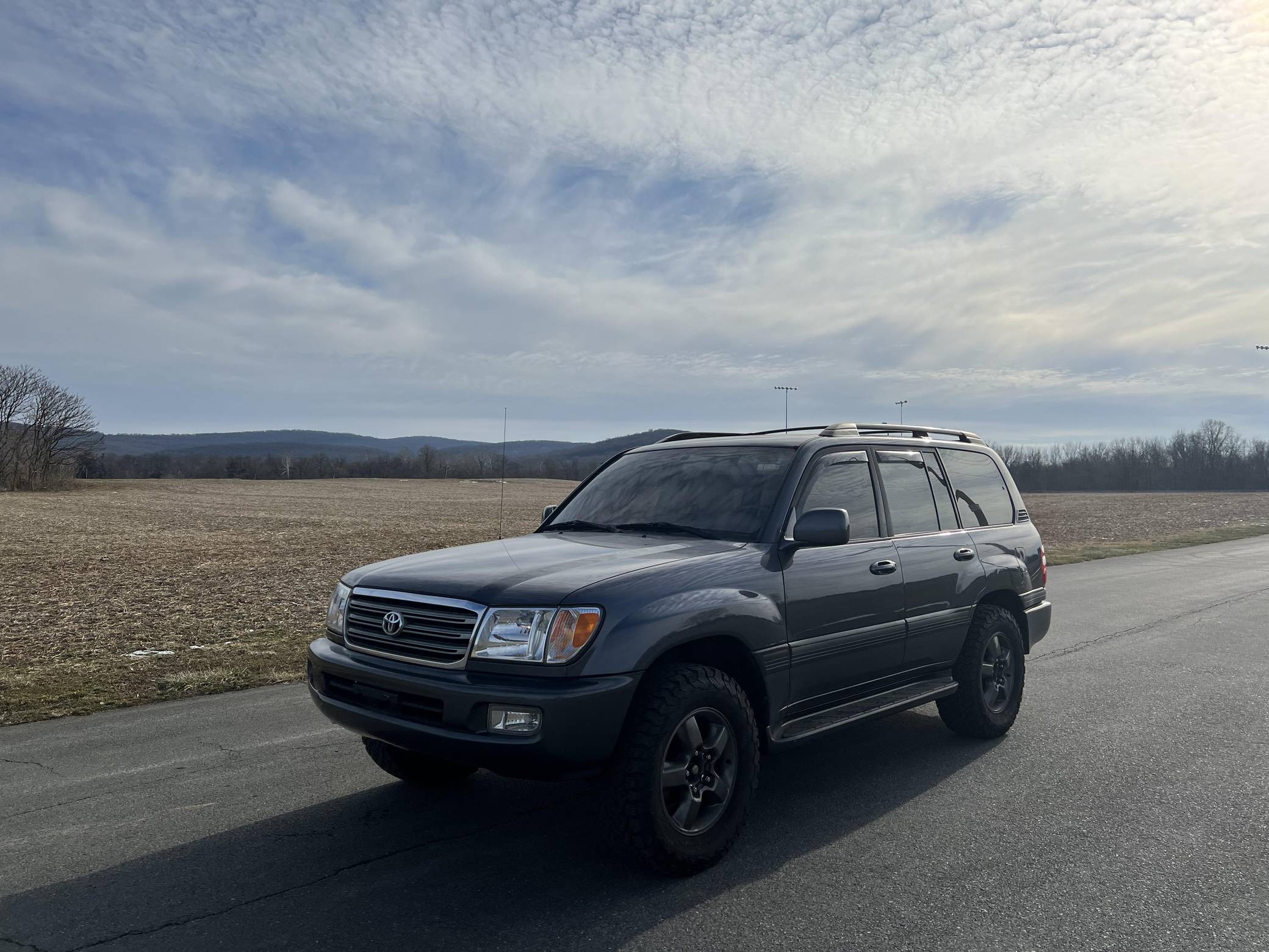THIS… is a 2003 Toyota Land Cruiser, finished in Galactic Gray Mica with a gray interior. It also shows that this Land Cruiser is a two-owner car. Factory equipment includes the Convenience Package, 18-inch wheels, a center locking differential, a tow hitch, a roof rack, a power sunroof, leather upholstery with heated front seats, third-row seats, a rear seat entertainment system, a JBL audio system, and more as detailed below. Modifications reported by the seller include Bilstein suspension, a 2-inch lift kit, wheel spacers, BFGoodrich tires, and interior ambient lighting. The 100-Series Land Cruiser replaced the 80-Series model in 1998 with amenities like an electronically-controlled 4-wheel drive system with skid control, improved passenger comfort, and digital navigation that brought the nameplate firmly into the modern era. Toyota's now-legendary "2UZ-FE" V8 was another serious upgrade to the platform, and it's one of the big reasons this machine is a favorite of those who wish to not only get far off the grid but also come back safely. Power comes from a “2UZ-FE” 4. 7-liter V8, rated at 235 horsepower and 320 lb-ft of torque. Output is sent to all four wheels through a 5-speed automatic transmission and a 2-speed transfer case.