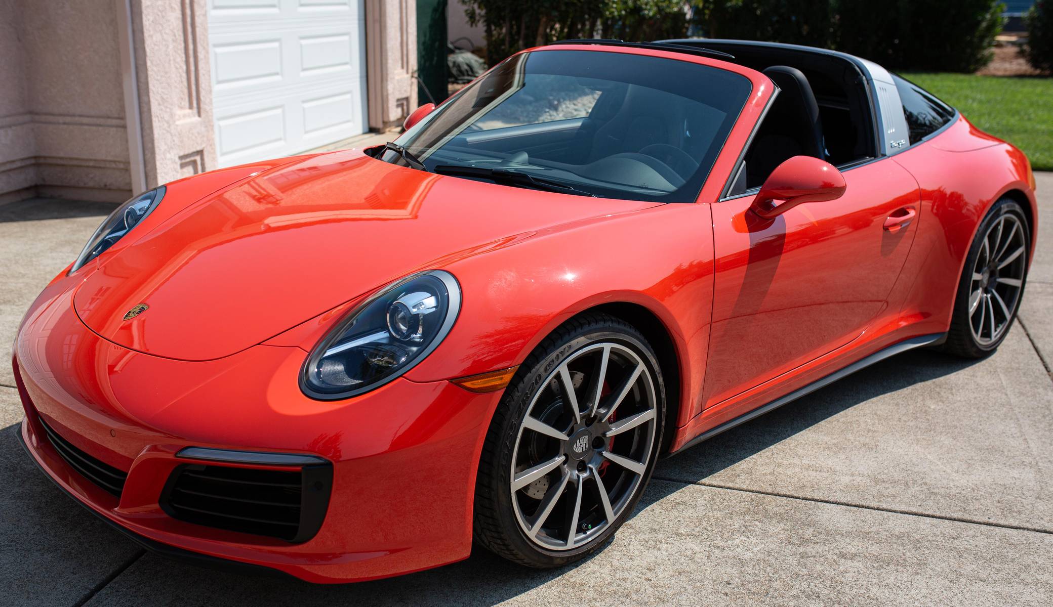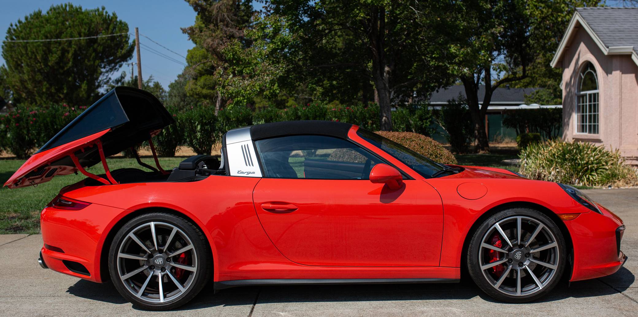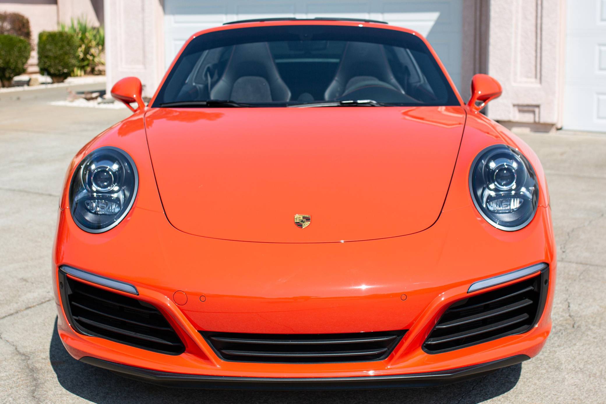 THIS… is a 2019 Porsche 911 Targa 4S, finished in Lava Orange with a black interior. Factory equipment includes the Sport Chrono package, 20-inch Carrera Classic wheels, bi-xenon headlights with PDLS, a power-operated targa top, leather/Alcantara upholstery, carbon fiber interior trim, power-adjustable and heated adaptive front seats, a Burmester High-End Surround Sound system, and more as listed below. Modifications reported by the seller are limited to tinted windows. Porsche introduced the 991-generation 911 for the 2012 model year. It arrived as an evolution of its predecessor, the 997, which received more powerful engines across the board and a more luxurious interior. 2017 brought a significant change: Porsche turbocharged non-Turbo variants, including the base Carrera, for the first time in the name of fuel efficiency. 991 production ended in 2019. Unlike the sliding glass-roofed Targas of the 993, 996, and 997 models, the 991 Targa features a fixed roll bar reminiscent of earlier G-body and 964 Targas and a fully-automatic retractable center roof panel. Power comes from a twin-turbocharged 3. 0-liter flat-6, rated at 420 horsepower and 368 lb-ft of torque. Output is sent to all four wheels via a 7-speed dual-clutch automatic transmission.