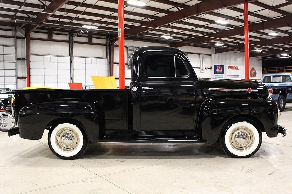 The Ford F100 was known for reliability and ruggedness and was an integral part of American history. Their timeless design, style and utilitarian nature make them useful classics to own and care for and they represent the American dream for many as they were used by many businesses and workers at a time considered great by many. The 1952 F-100 offered here is a wonderfully restored example finished in black over Black and Tan interior. The truck is powered by the bullet proof inline 6 mated to a 3 speed manual transmission. Other features included a new wood bed, excellent chrome, hub caps with trim rings, highly detailed engine bay, brand new Whitewall tires, heater, and more. Mechanically, this is an excellent driver that is turn key and ready for immediate use. The motor and transmission have been rebuilt and have tons of receipts for the restoration process with well over $25,000 into it. This highly restored F100 will not disappoint.