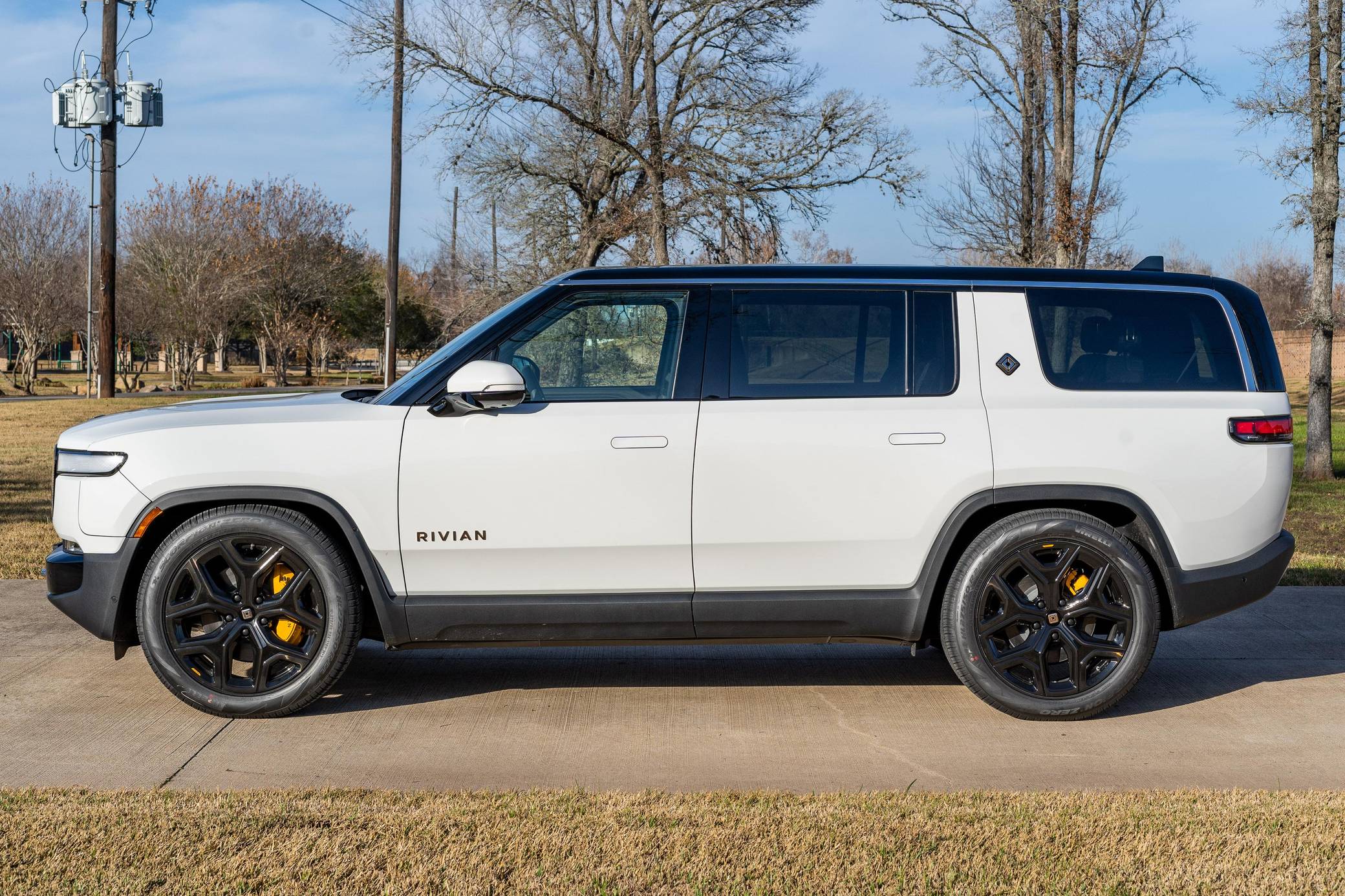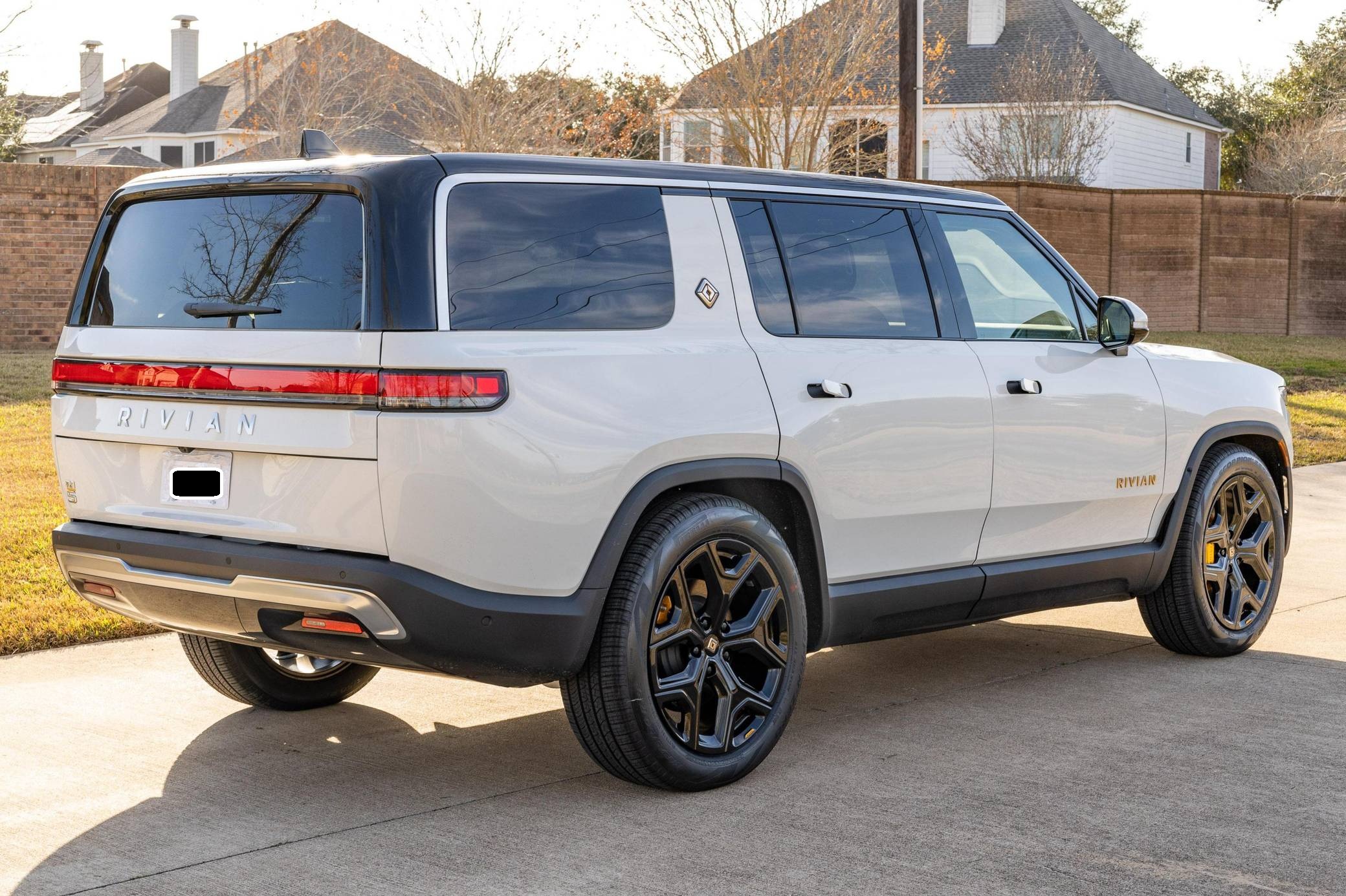 THIS. . . is a 2022 Rivian R1S Launch Edition, finished in Glacier White with a Black Mountain interior. Factory equipment includes 22-inch "Sport Dark" wheels, an air suspension system, heated, ventilated, and power-adjustable front seats, heated second-row seats, folding third-row seats, dark ash wood interior trim, an air compressor integrated into the trunk, and a Rivian Elevation by Meridian sound system. The R1S entered production in 2022 as Rivian's second model. Closely related to the R1T pickup, it's an electric SUV with up to seven seats that was developed with the outdoors in mind. It's spacious, and it features a long list of comfort and technology features as well as through-the-road all-wheel drive. Power comes from four electric motors, which draw electricity from a 135-kilowatt-hour lithium-ion battery pack to zap the four wheels with 835 horsepower and 908 lb-ft of torque. The R1S earned a maximum driving range rating of 316 miles from the EPA.