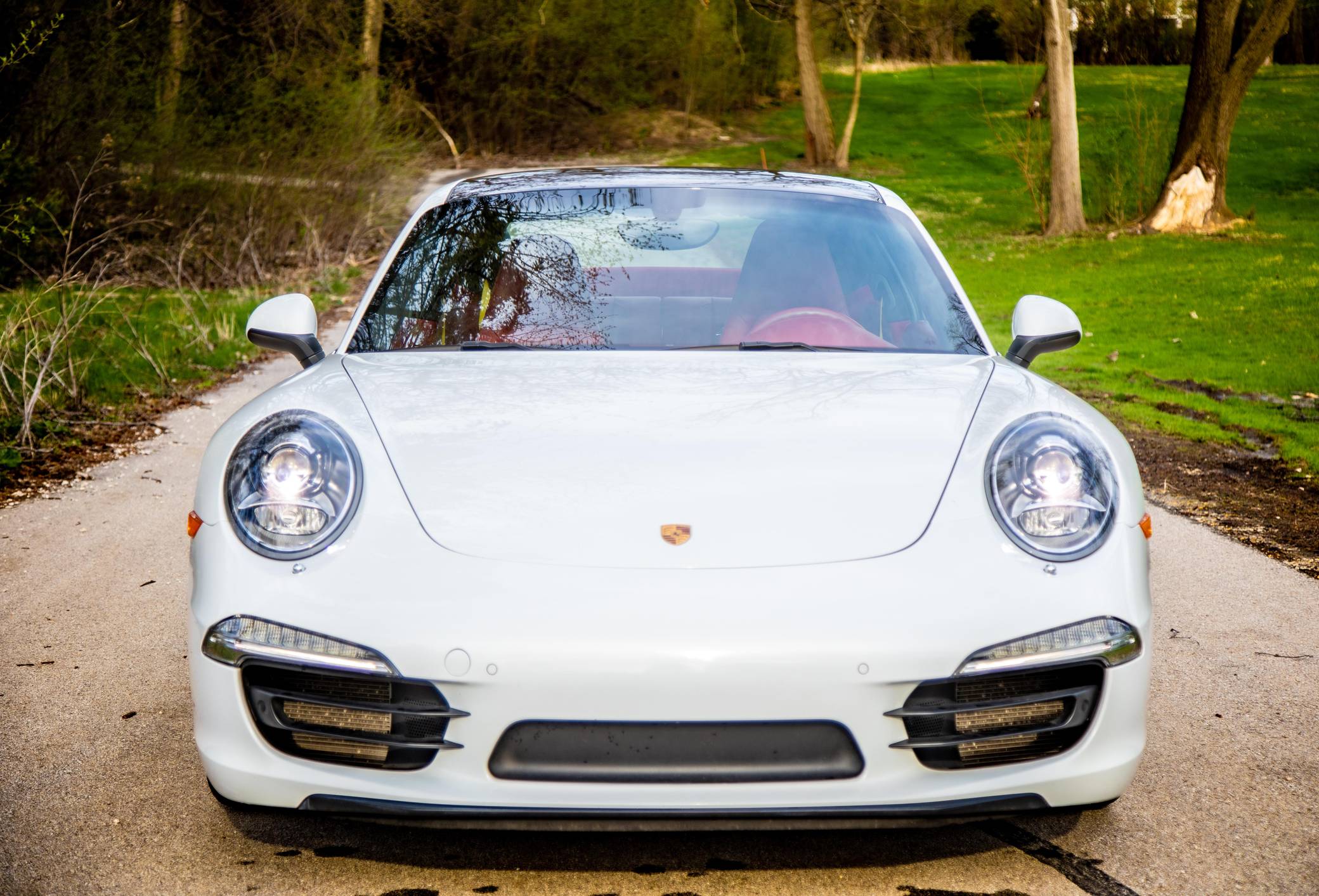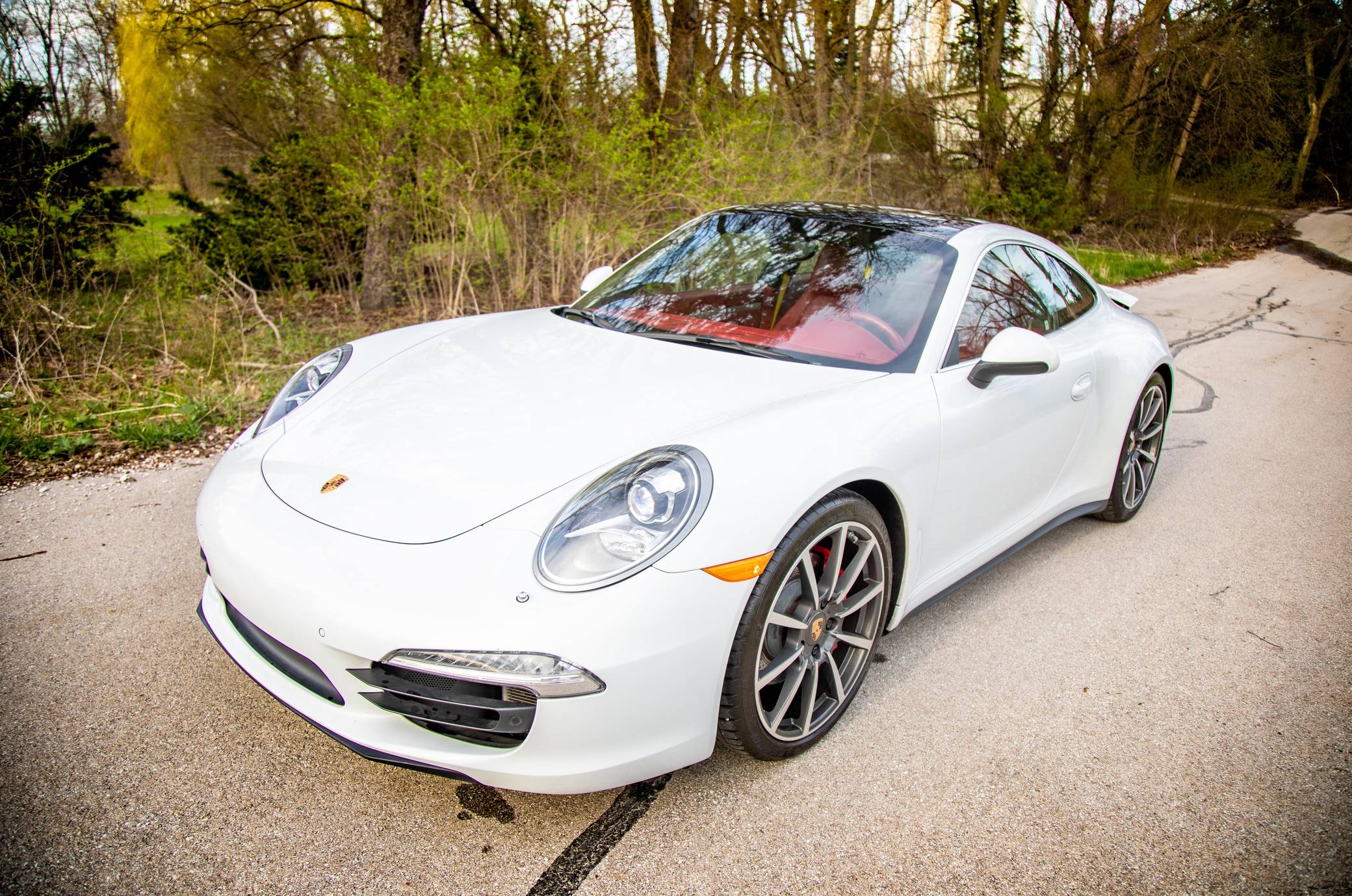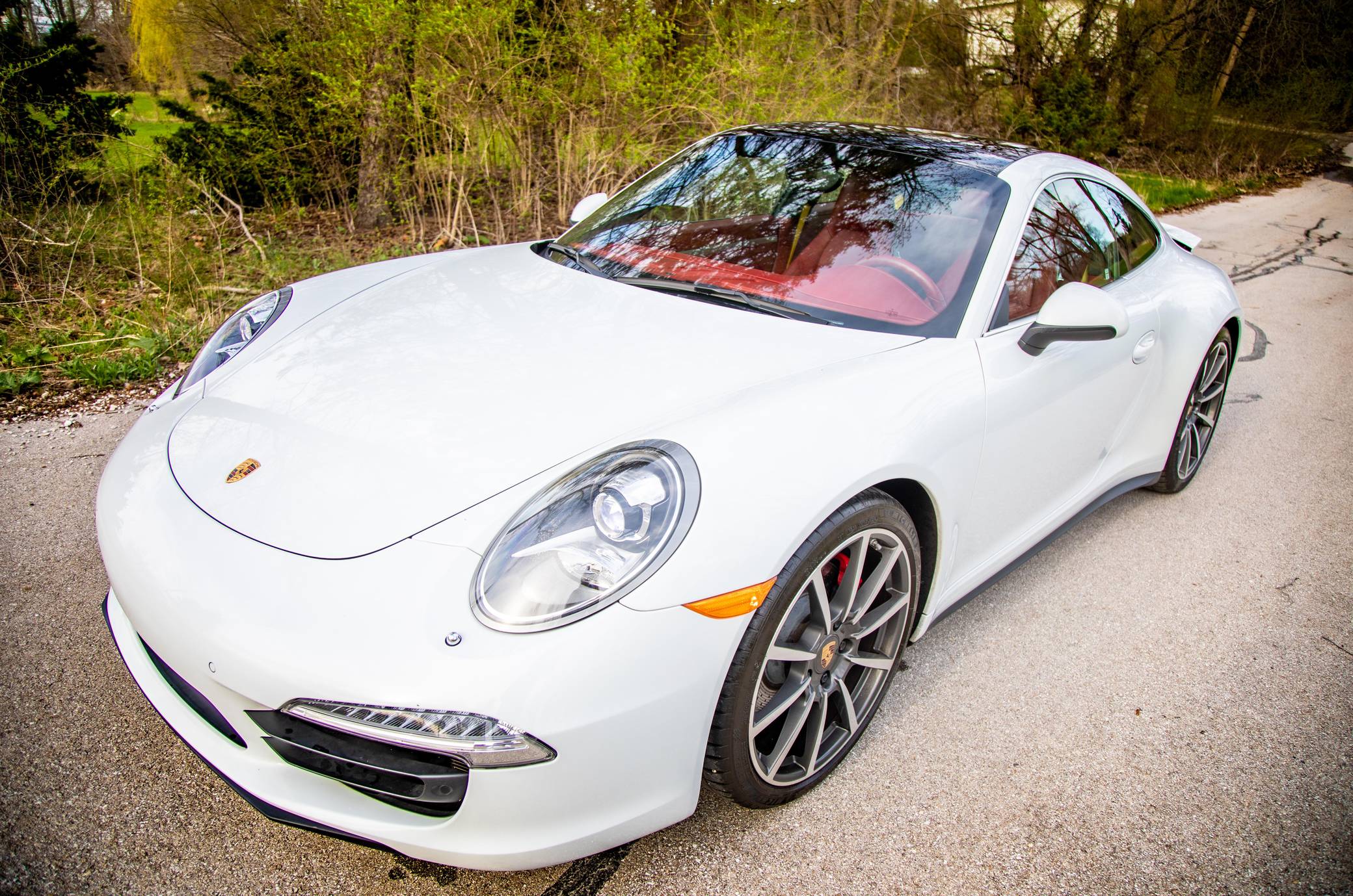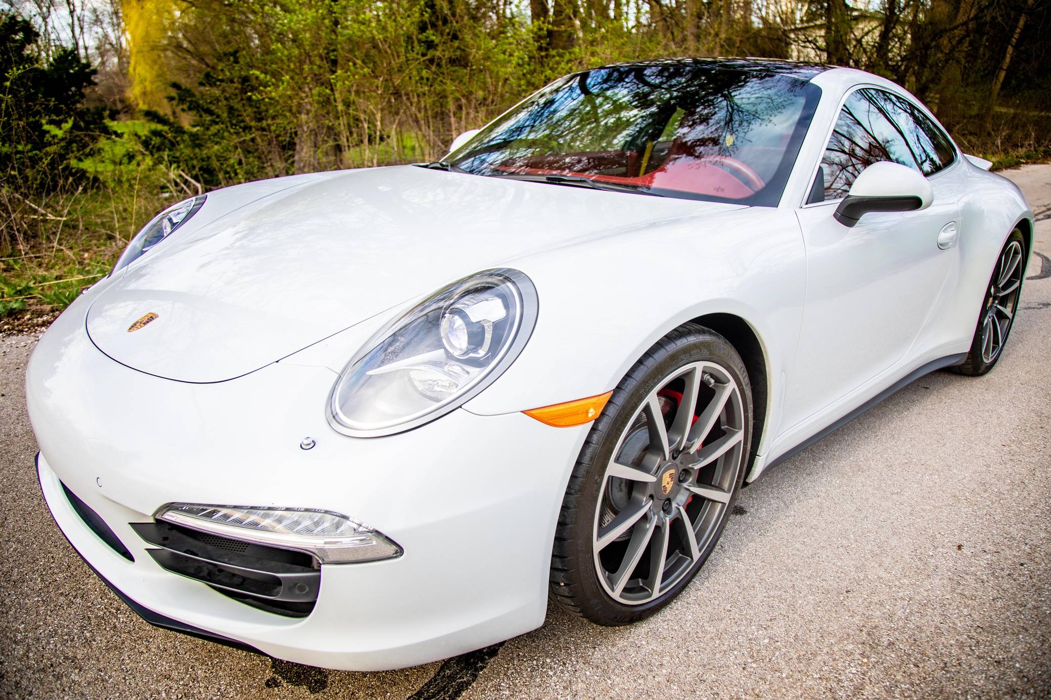 2015 Porsche 911 Carrera 4S Coupe, finished in Carrara White Metallic with a Garnet Red interior. This Carrera 4S is equipped with the desirable 7-speed manual transmission, and its odometer currently displays about 27,500 miles. Factory equipment includes the Premium Package Plus, 20-inch Carrera Classic wheels, a glass sunroof, Natural Leather interior, seat belts and instrument dials in Racing Yellow, ParkAssist (front and rear), a Bose sound system, and more as detailed below. The seller reports no modifications. Porsche introduced the 991-generation 911 for the 2012 model year. It arrived as an evolution of its predecessor, the 997, which received more powerful engines across the board and a more luxurious interior. It was longer, lower, and wider but it relied extensively on aluminum to avoid putting on weight. Power comes from a 3. 8-liter flat-6, rated at 400 horsepower and 325 lb-ft of torque. It spins the four wheels via a 7-speed manual transmission.