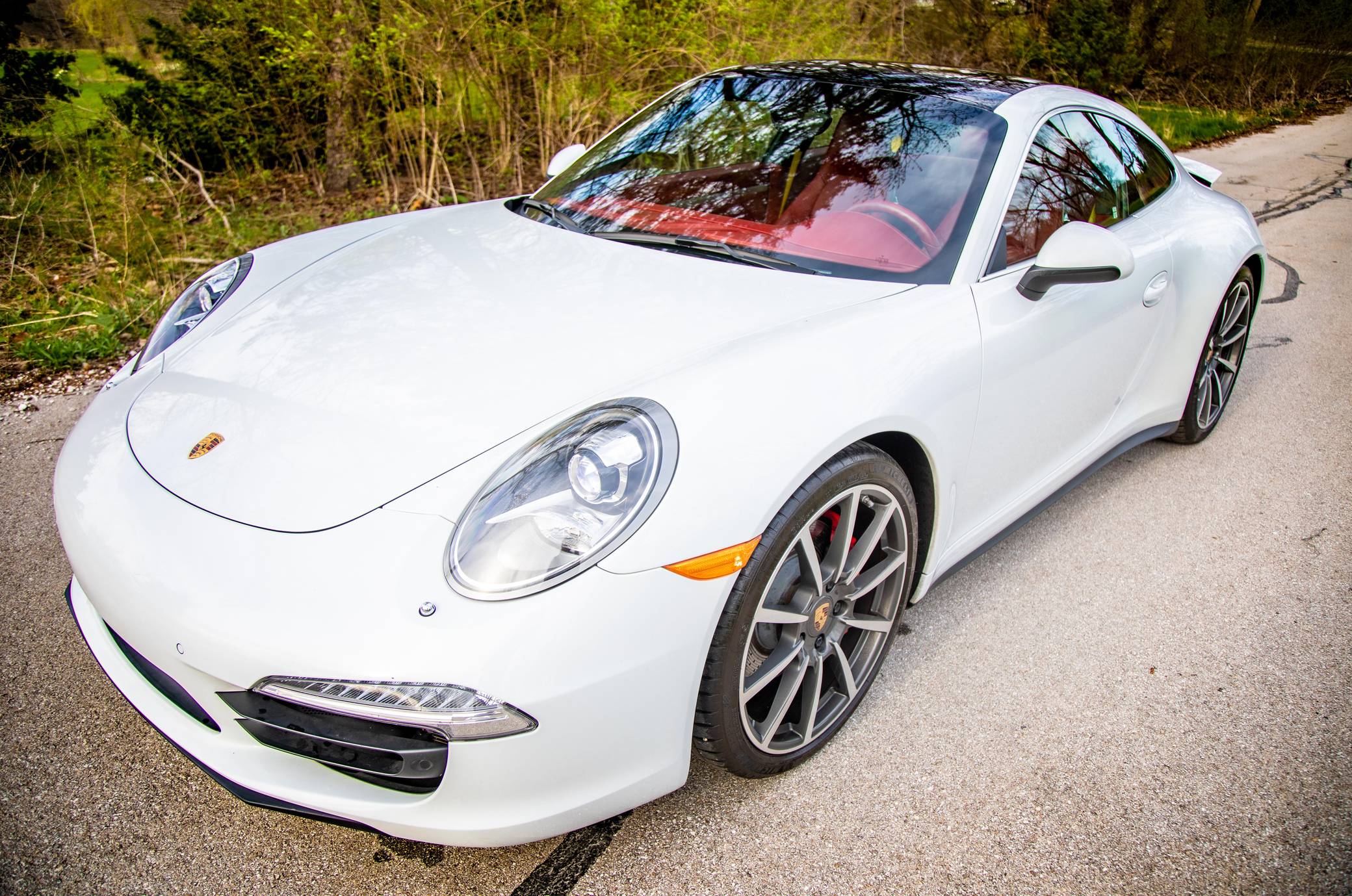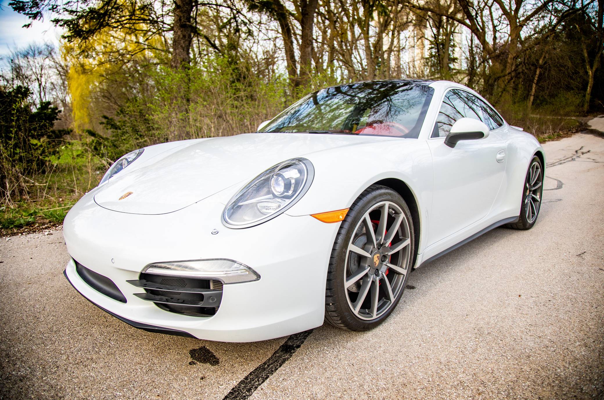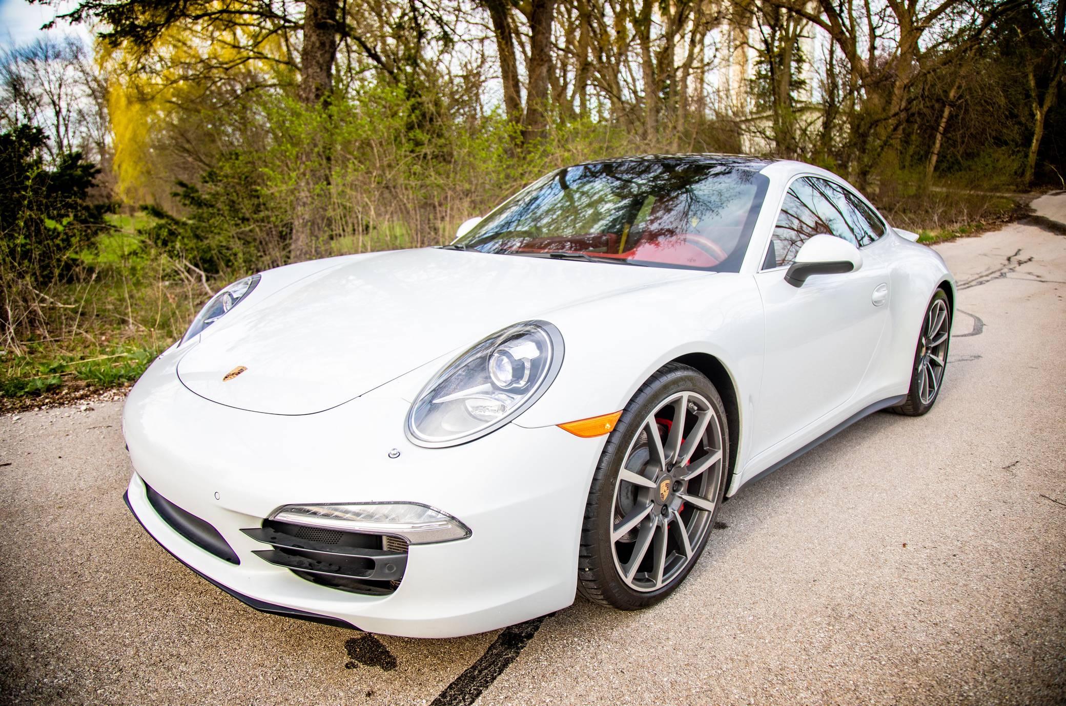 2015 Porsche 911 Carrera 4S Coupe, finished in Carrara White Metallic with a Garnet Red interior. This Carrera 4S is equipped with the desirable 7-speed manual transmission, and its odometer currently displays about 27,500 miles. Factory equipment includes the Premium Package Plus, 20-inch Carrera Classic wheels, a glass sunroof, Natural Leather interior, seat belts and instrument dials in Racing Yellow, ParkAssist (front and rear), a Bose sound system, and more as detailed below. The seller reports no modifications. Porsche introduced the 991-generation 911 for the 2012 model year. It arrived as an evolution of its predecessor, the 997, which received more powerful engines across the board and a more luxurious interior. It was longer, lower, and wider but it relied extensively on aluminum to avoid putting on weight. Power comes from a 3. 8-liter flat-6, rated at 400 horsepower and 325 lb-ft of torque. It spins the four wheels via a 7-speed manual transmission.