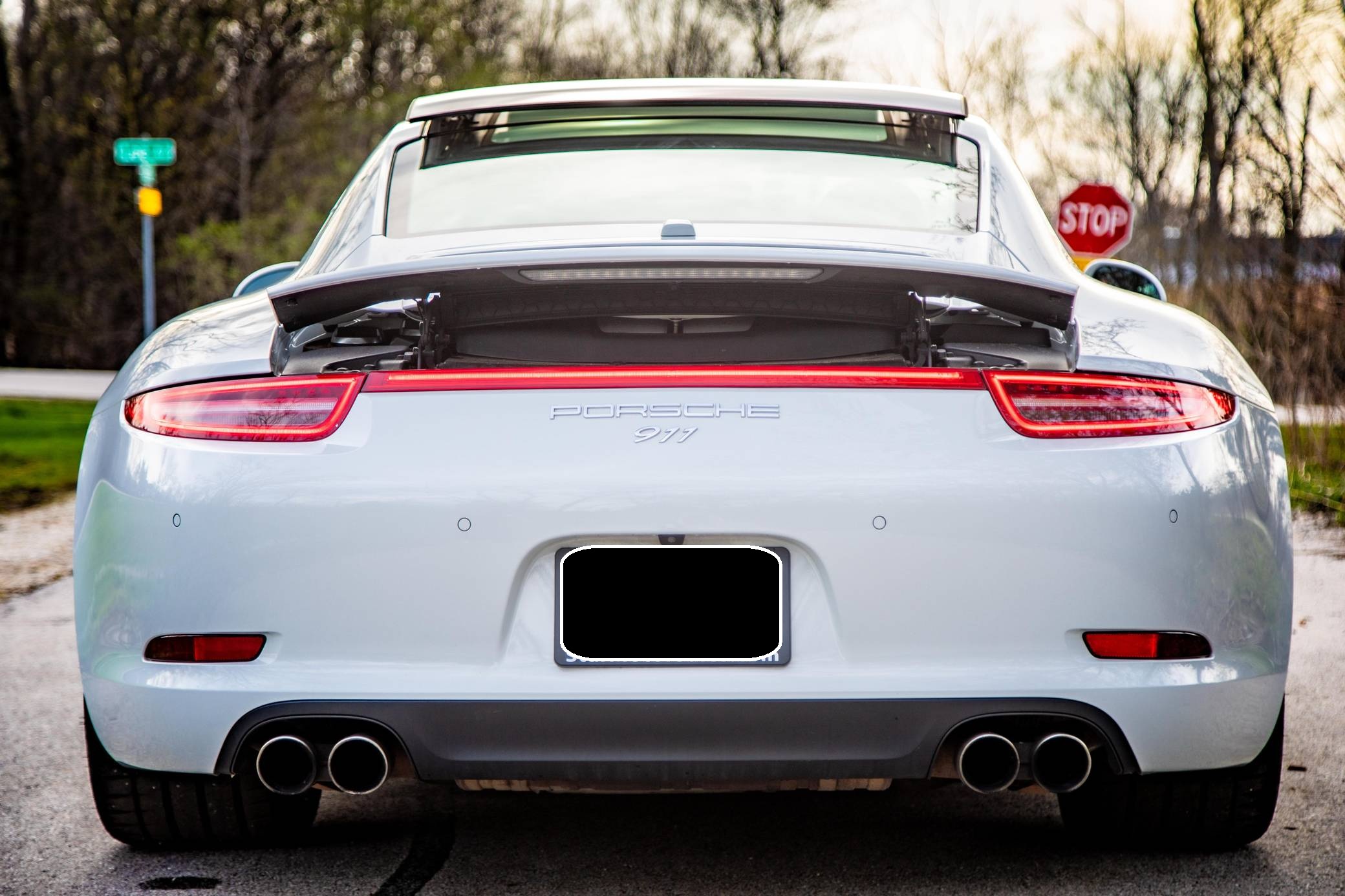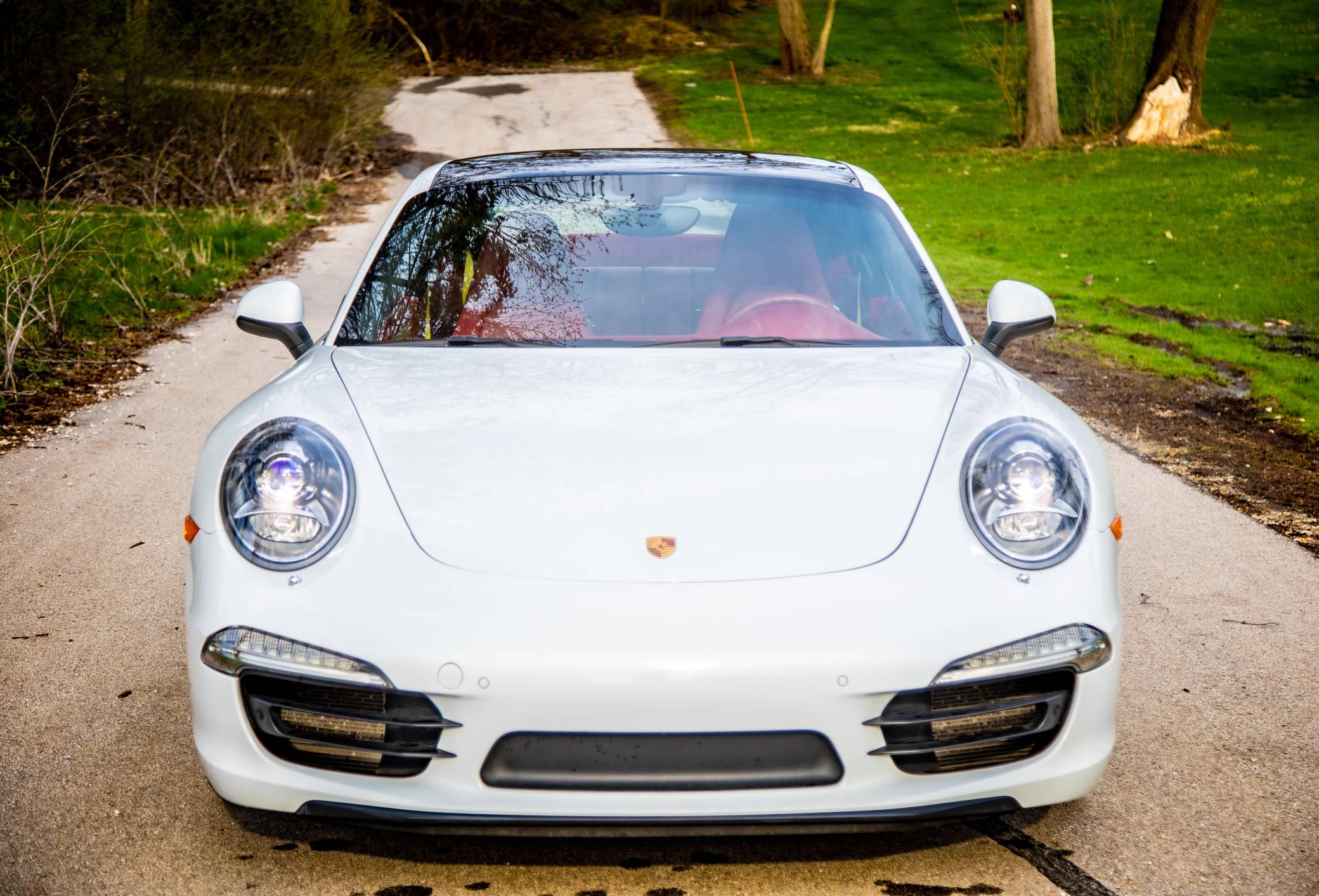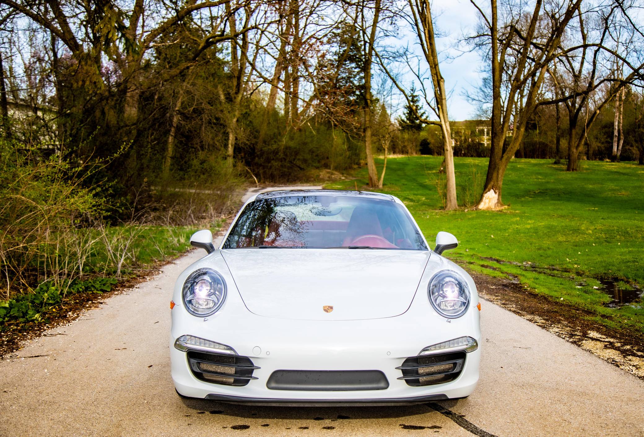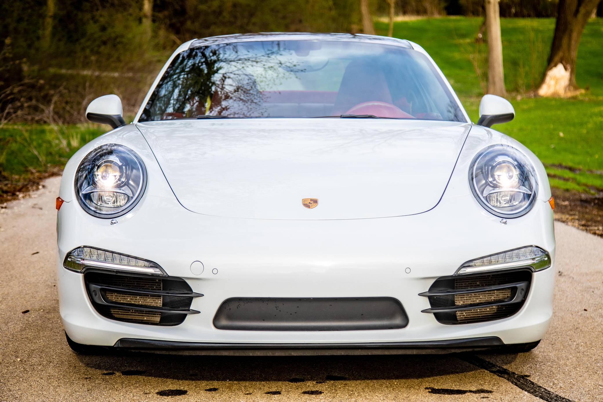 2015 Porsche 911 Carrera 4S Coupe, finished in Carrara White Metallic with a Garnet Red interior. This Carrera 4S is equipped with the desirable 7-speed manual transmission, and its odometer currently displays about 27,500 miles. Factory equipment includes the Premium Package Plus, 20-inch Carrera Classic wheels, a glass sunroof, Natural Leather interior, seat belts and instrument dials in Racing Yellow, ParkAssist (front and rear), a Bose sound system, and more as detailed below. The seller reports no modifications. Porsche introduced the 991-generation 911 for the 2012 model year. It arrived as an evolution of its predecessor, the 997, which received more powerful engines across the board and a more luxurious interior. It was longer, lower, and wider but it relied extensively on aluminum to avoid putting on weight. Power comes from a 3. 8-liter flat-6, rated at 400 horsepower and 325 lb-ft of torque. It spins the four wheels via a 7-speed manual transmission.