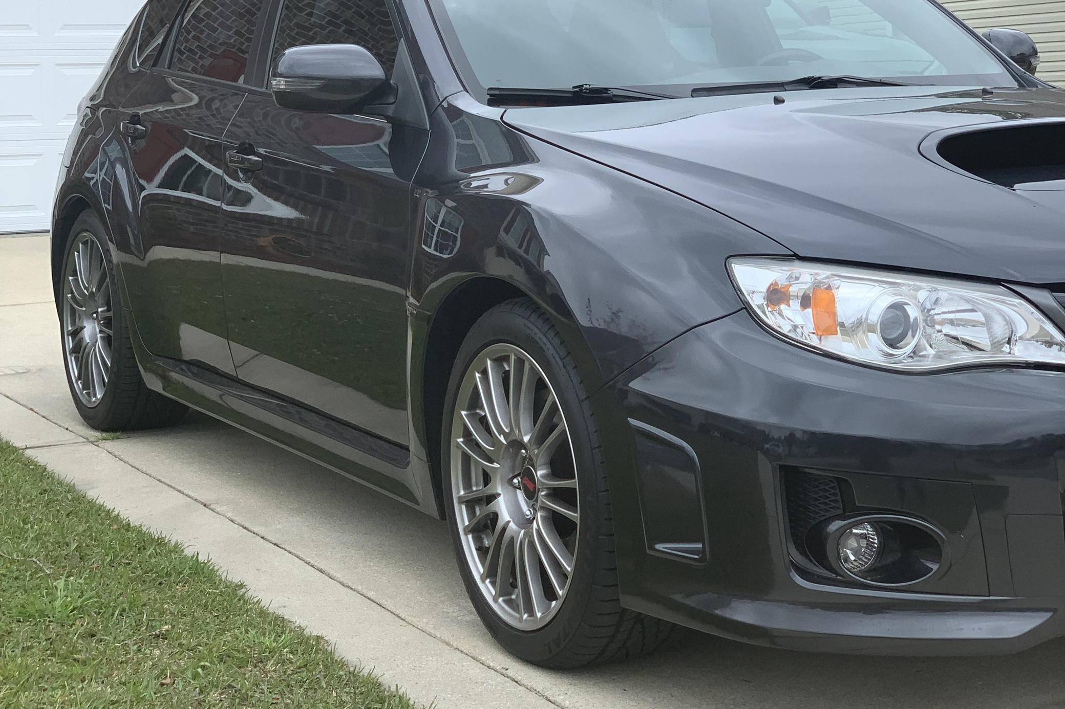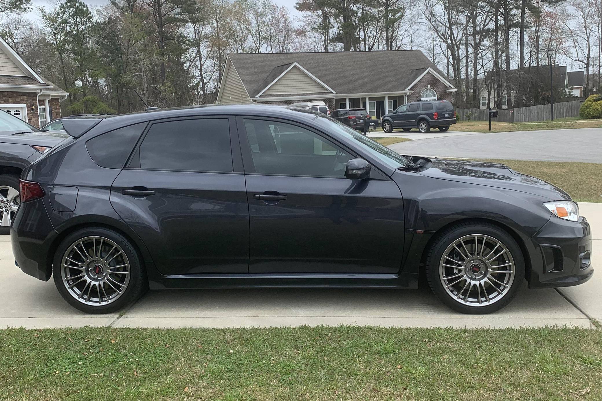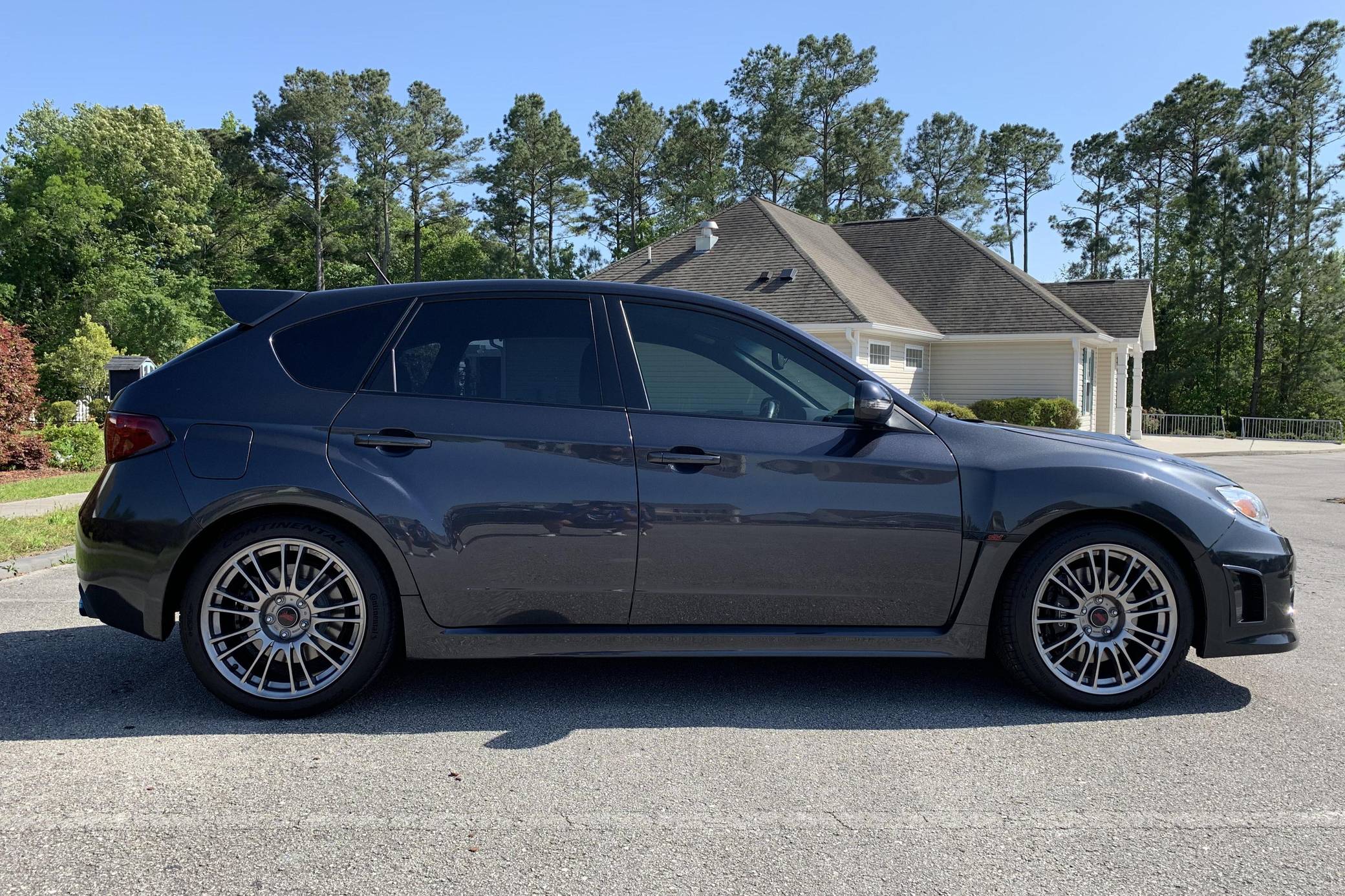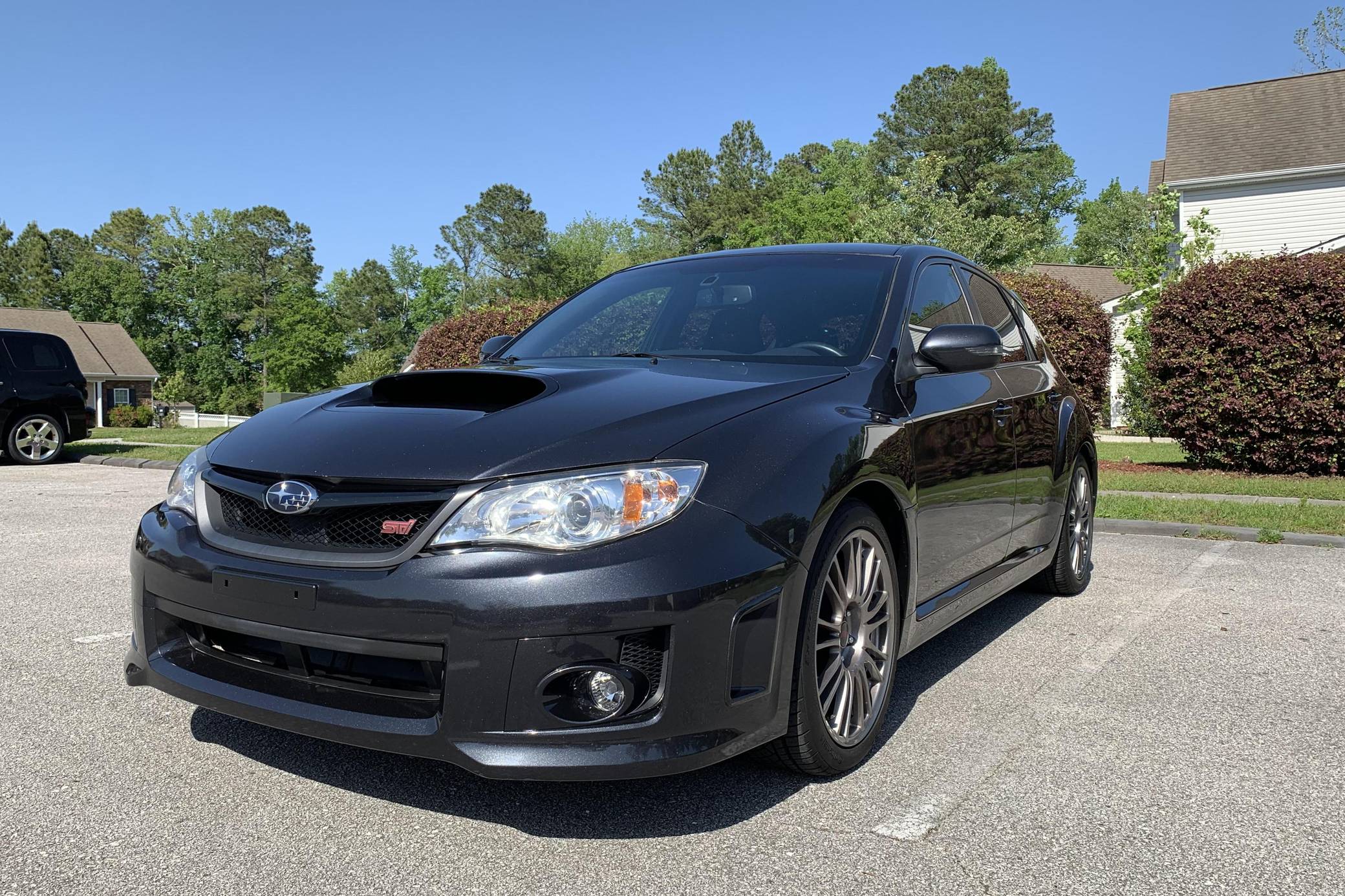 2014 Subaru WRX STI hatchback, finished in Dark Gray Metallic with a black interior. According to the build sheet provided in the gallery, factory equipment includes 18-inch BBS wheels, Brembo brakes, a rear spoiler, heated sport seats for the front passengers, and more as detailed below. Modifications mentioned by the seller include a GST Motorsports tune, a COBB Tuning air intake, an HKS axle-back exhaust, a Pioneer head unit, and an aftermarket amplifier and subwoofer. Subaru released the rally-bred WRX STI variant of the third-generation Impreza for the 2008 model year. It received a mid-cycle update for 2011 that brought an overhauled suspension system, visual tweaks on both ends, and a sedan body style sold alongside the hatchback. Production ended in 2014, and Subaru hasn't released another STI hatch since. Power for this WRX STI comes from a turbocharged 2. 5-liter flat-4 engine, rated at 305 horsepower and 290 lb-ft of torque in stock form. According to the attached dyno sheet, this STI makes 261 all-wheel horsepower and 279 lb-ft of all-wheel torque thanks to the aforementioned modifications. It spins the four wheels via a 6-speed manual transmission and limited-slip front and rear differentials.