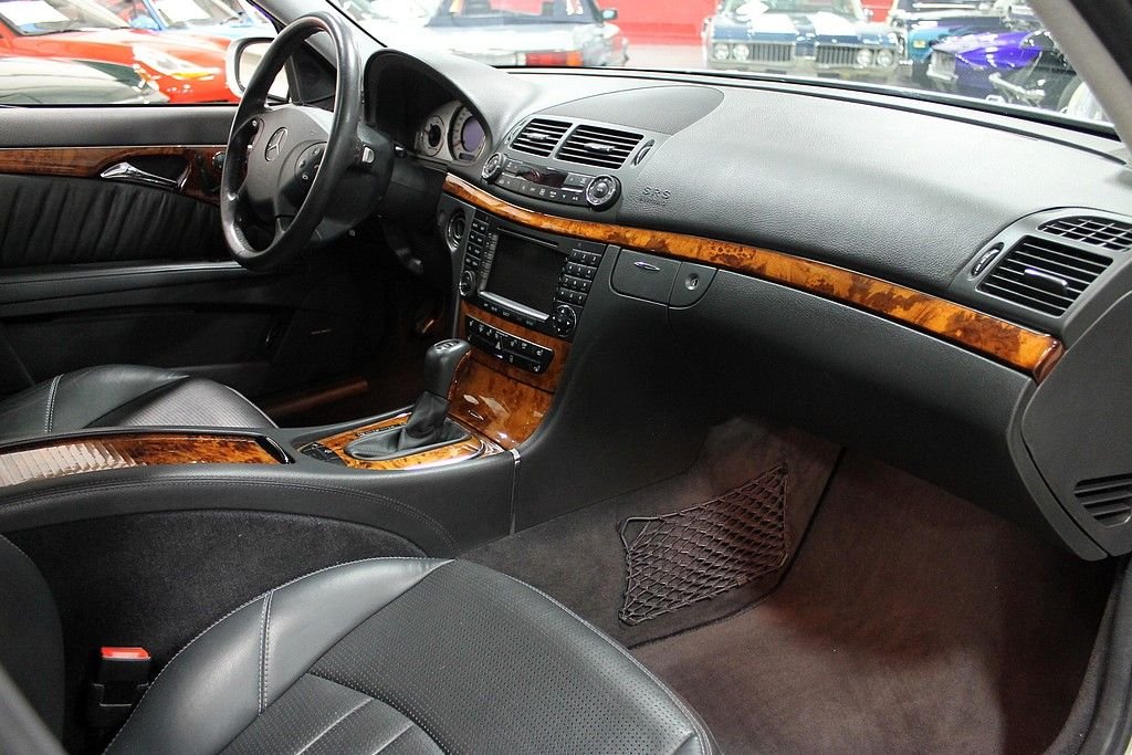 This 2006 Mercedes-Benz E55 AMG 5-passenger sedan may be the best sleeper you can buy on the market for the price. From first glance you see a modern Mercedes and you know there's the luxurious feel and amenities you axiomatically anticipate. However, this Mercedes marches with a hand built AMG 5,439cc (332ci for you English) 24 valve supercharged, intercooled V8 engine boasting 469 horsepower and 516 lb-ft torque. This isn't Great Grandpappy's cruiser to church. For perspective, the E55 just takes 0.3 seconds longer to get to 60mph than the V12 Ferrari Maranello F1. Perhaps more impressive, other than saving the $175,000 on the E55 instead of the Ferrari, is the smoothness of the ride. You don't feel out of control even at world class speed and acceleration. This is a high performance beast that will get you to your destination fast, in luxury, and in style. This E55 AMG is a top of the line car with plenty or really cool options. This is a 2-owner car with a clean car fax with zero accidents. The MSRP of this was originally $90,785. It features four-zone automatic climate control, AMG Nappa leather upholstery (in Charcoal), Burl Walnut trim, Keyless Go (smart key), Lighting package (bi-xenon, active curve illumination, headlamp washers), Premium Package (active ventilated front seats with heating, drive dynamic seats, CD changer, DVD navigation, and Power rear-window shade), Harmon Kardon sound system, 10-way power front seats, power sunroof, intermittent rain wipers with rain sensor, roll over sensor, side curtain airbags, Airmatic dual control air suspension, AMG 18” aluminum wheels, AMG high performance braking system, AMG sport exhaust system with four chrome AMG outlets, and Iridium Silver paint. This is a really great car built with Mercedes quality and their top of the line AMG options.