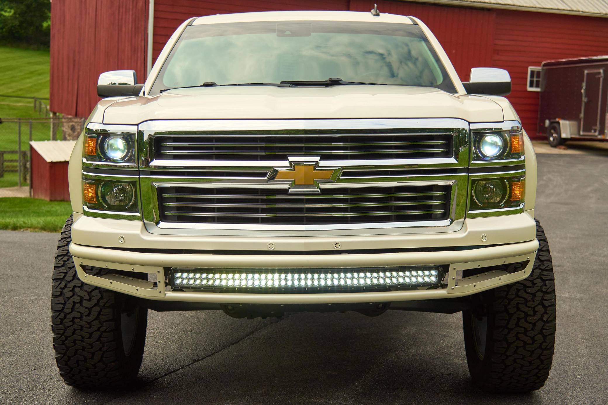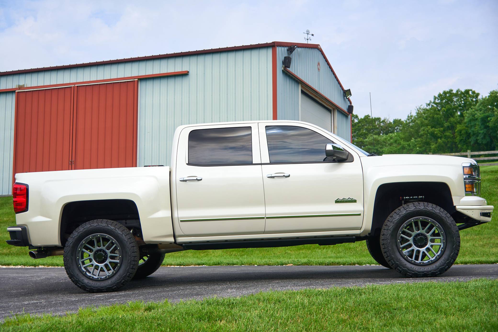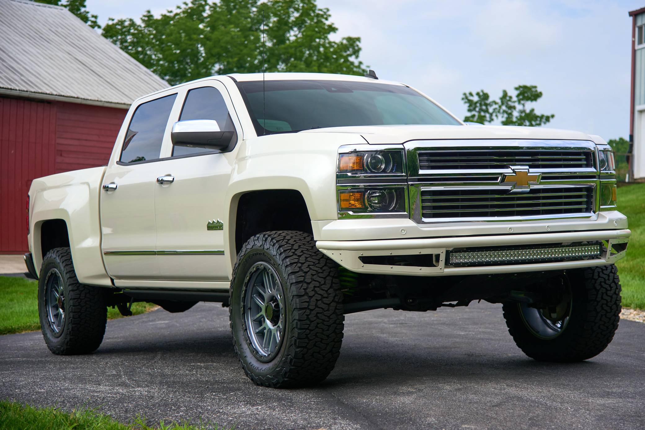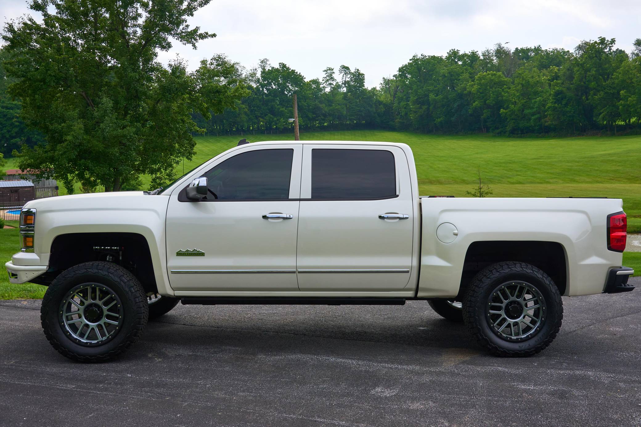 THIS… is a 2014 Chevrolet Silverado 1500 High Country, finished in White Diamond Tricoat with a Saddle Brown interior. Factory equipment includes the High Country Premium package, a sunroof, leather upholstery, power-adjustable heated and ventilated front seats, a MyLink infotainment system, and a Bose sound system. Modifications to this Silverado are extensive, and the full list is detailed below. include a Magnuson supercharger, a Mazzulla Offroad Mid Travel suspension kit with King Off-Road 2. 5 remote-reservoir shocks and Deaver springs, 20-inch Nemesis wheels, FiberwerX 3-inch fenders and bedsides, and more, as detailed below. Chevrolet launched the third-generation Silverado for 2014. Underpinned by the K2XX platform, the Silverado offered greater comfort thanks to its redesigned suspension and the more rigid cab. High Country models were positioned at the top of the lineup as the most luxurious trim level to cater to customers looking for a high-end truck. Power comes from a supercharged 6. 2-liter V8, rated at 420 horsepower and 460 lb-ft of torque, when left stock and naturally aspirated. The seller states that this Silverado made 480 horsepower at the wheels during a dyno run, but a dyno sheet was not provided to confirm. Output is sent to the rear wheels via a 6-speed automatic transmission.