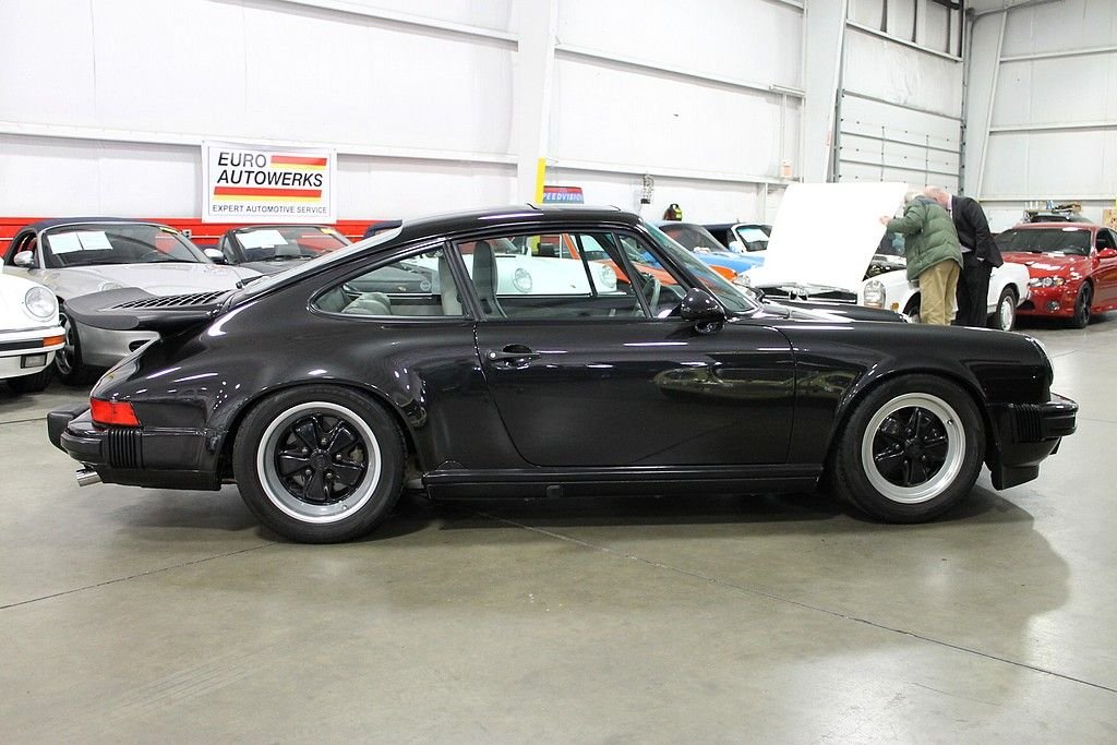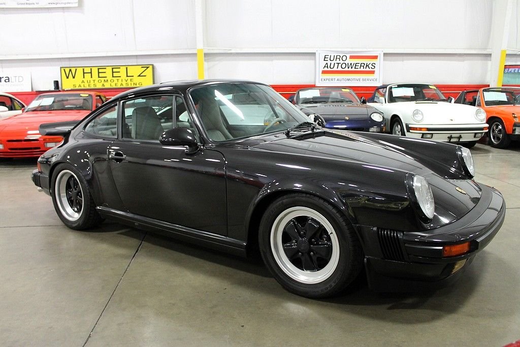 We are thrilled to present this 1989 Anniversary Porsche in the extremely rare Satin Black Metallic Paint with color matching Fuchs. Only 60 of the 300 Anniversary coupes produced were optioned with this exterior color. If you truly want a Porsche that very few people ever get the opportunity to own - this is the one! 1989 marked the last year of this iconic body style and many are in agreement that this is the car to have in your collection or as your third vehicle. With the famous G50 transmission and the extremely reliable 3.2-liter engine will provide nothing but appreciation as time goes on. With more and more of these vehicles heading back to Europe, we continue to see a shortage of these well documented lower mileage cars. This specific Anniversary Edition has service records dating back to the very first service done at Major Porsche out of Kansas City MO, where it was sold new and remained for many years. Vehicle changed hands a few more times until we received the car with all service records, owners manuals, original window sticker, compressor, tools, keys and much more. This car is truly a time capsule that has been meticulously serviced with the very important 30k, 45k, and 60k service. This Silver Anniversary Edition 911 has had some very tasteful upgrades including a performance chip from 911 Chips that boost horsepower another 20hp, sport suspension that has been lowered to a more aggressive stance, a brand new sport dual exhaust with new heat exchangers giving it a distinguished note on acceleration, upgraded Areo mirrors, and new coordinating Coco mats. The original mirrors come with the car. Once again this Porsche is one that demands serious consideration for anyone that is looking for a very well sorted, maintained and clean vehicle from top to bottom. This is the one that any Porsche aficionado desires to have in their possession. Do not delay as we sell these vehicles within days of them being advertised.