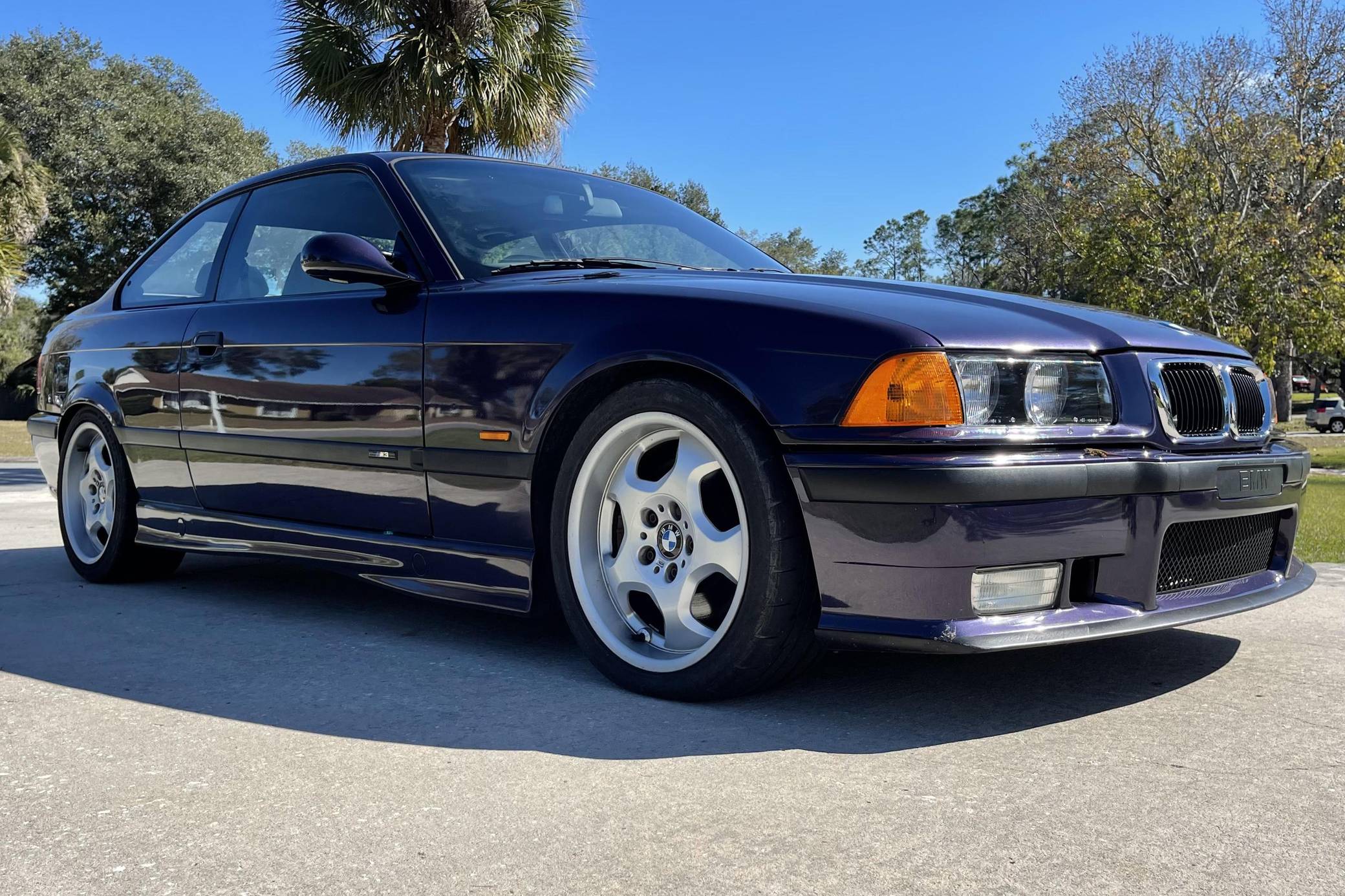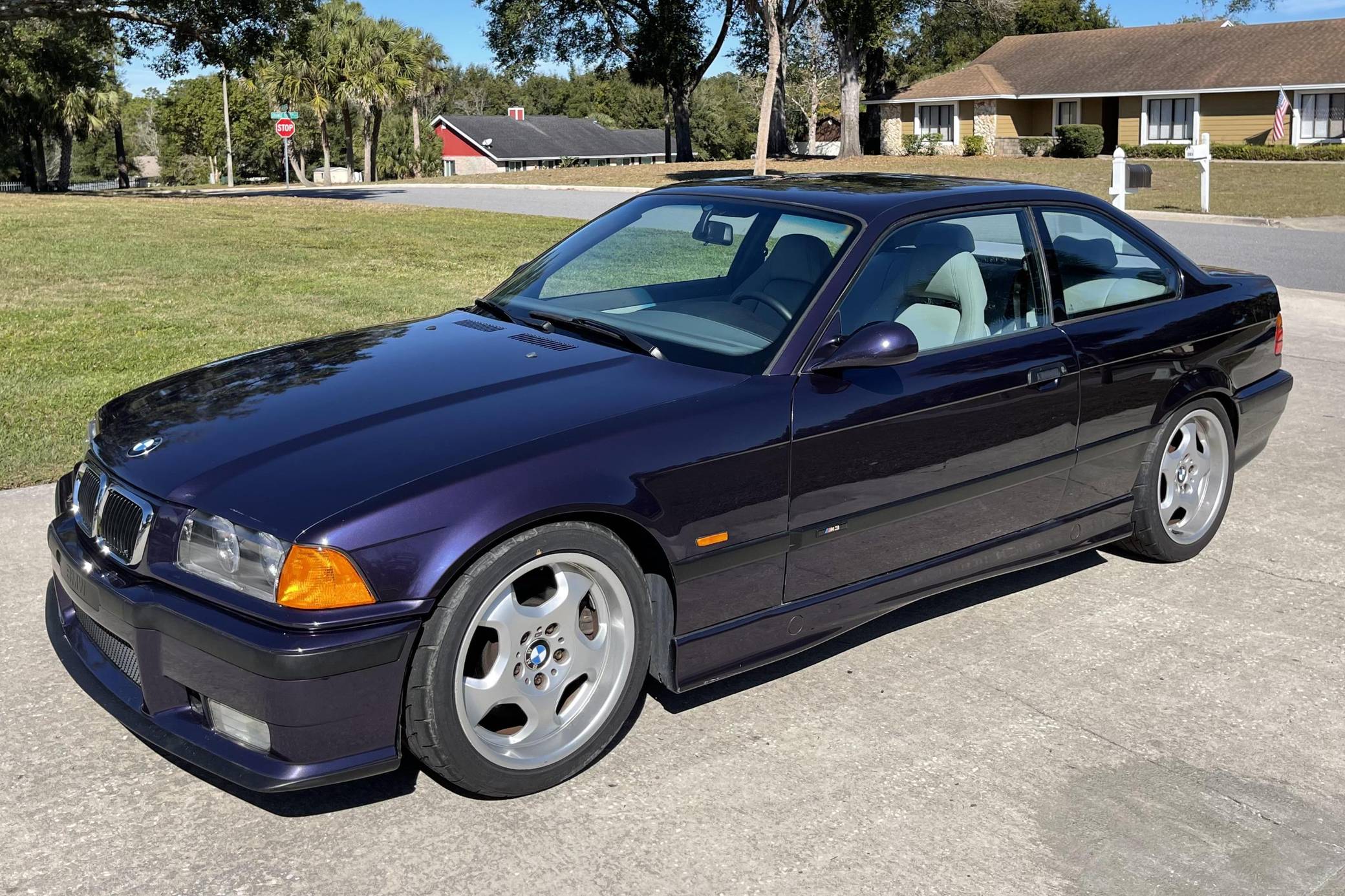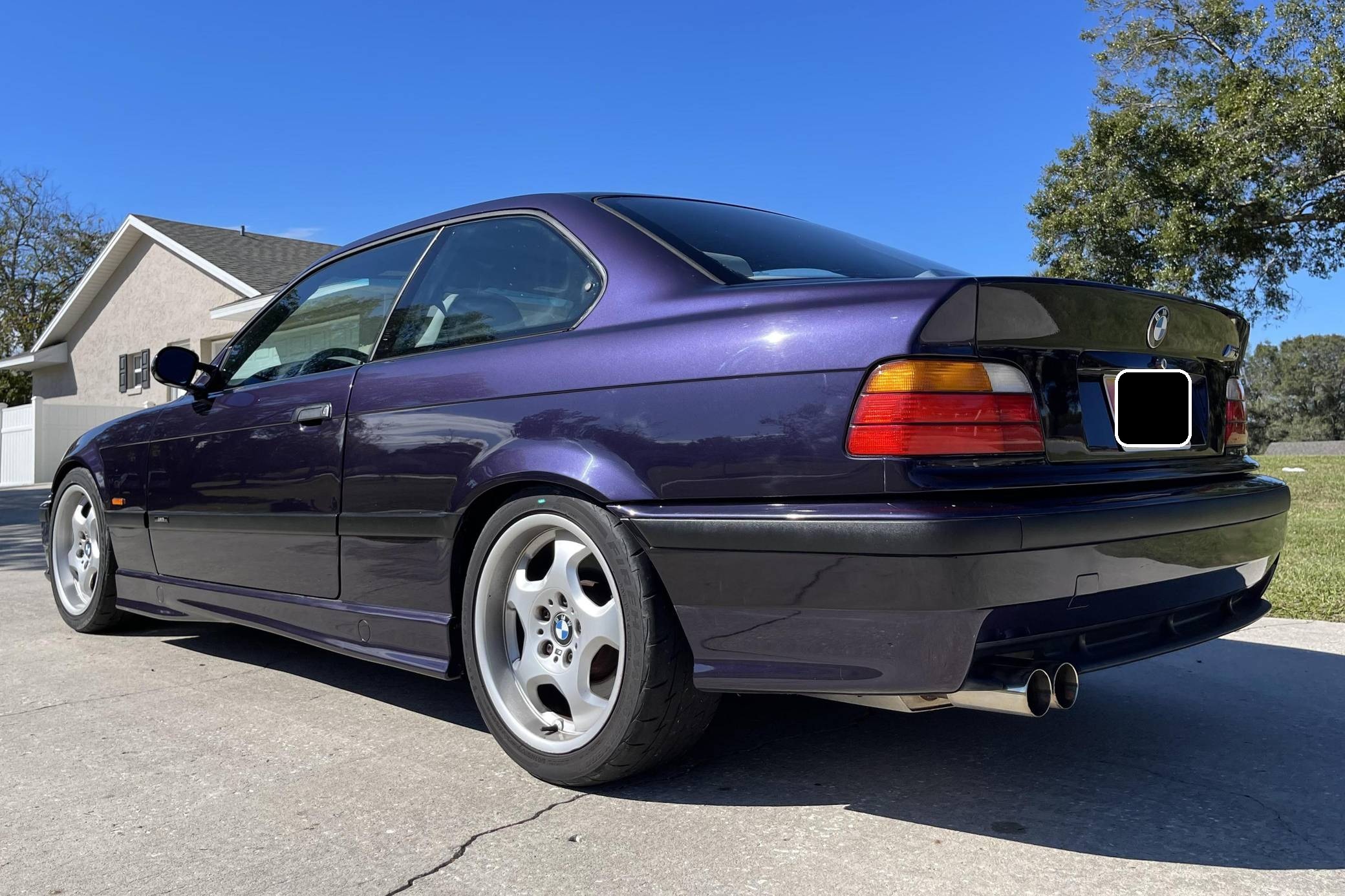1999 BMW M3 Coupe, finished in Techno Violet Metallic with a Dove Grey interior. This M3 features the desirable 5-speed manual transmission. According to the build sheet provided in the gallery, factory equipment includes a limited-slip differential, 17-inch "M Contour" wheels, an electrically operated sunroof, fog lights, and more listed below. Modifications to this M3 are extensive, and the full list is detailed below. include Active Autowerke catalytic converter-back exhaust, Bilstein shocks and H&R springs, an M50 intake with a Z3 intake elbow, reinforced camber arms in the rear, and more. The "E36" generation of the iconic BMW M3 was the first M3 powered by an inline-6 engine. Originally, the United States was not slated to get an M3. After owners famously banded together and demanded one be made, BMW brought the M3 to the U. S. It was a major commercial success for BMW, and it cemented the BMW M brand in the U. S. Power comes from an "S52" 3. 2-liter inline-6, rated at 240 horsepower and 236 lb-ft of torque in stock form. Due to the modifications performed to this M3, it may produce more power, but a dyno sheet was not provided to confirm. Output is sent to the rear wheels via a 5-speed manual transmission.