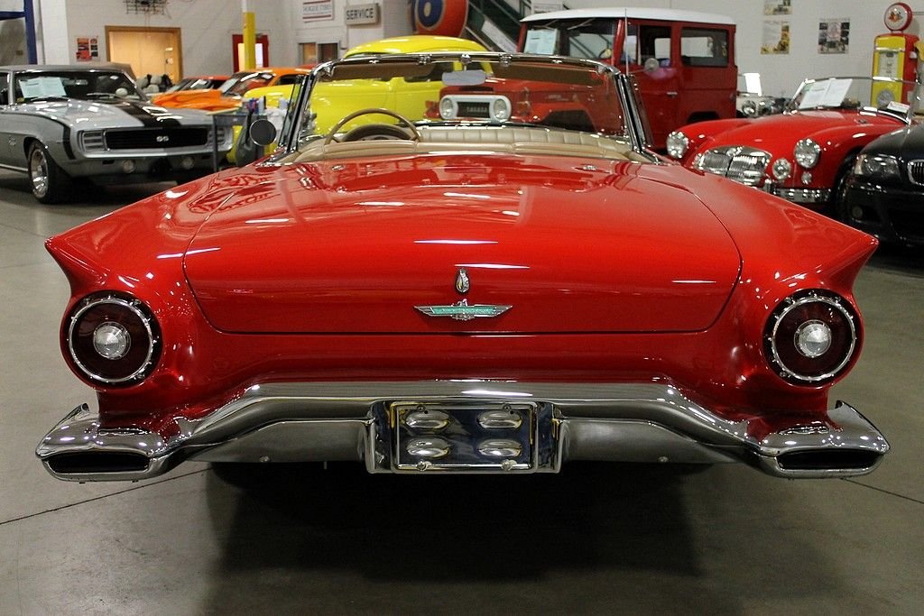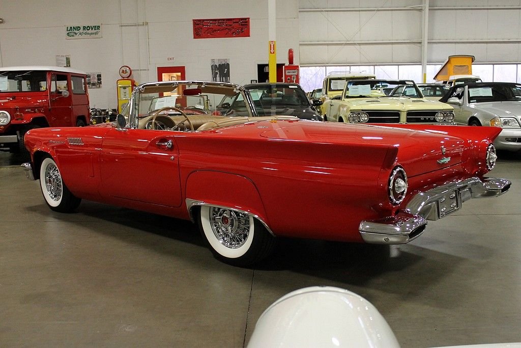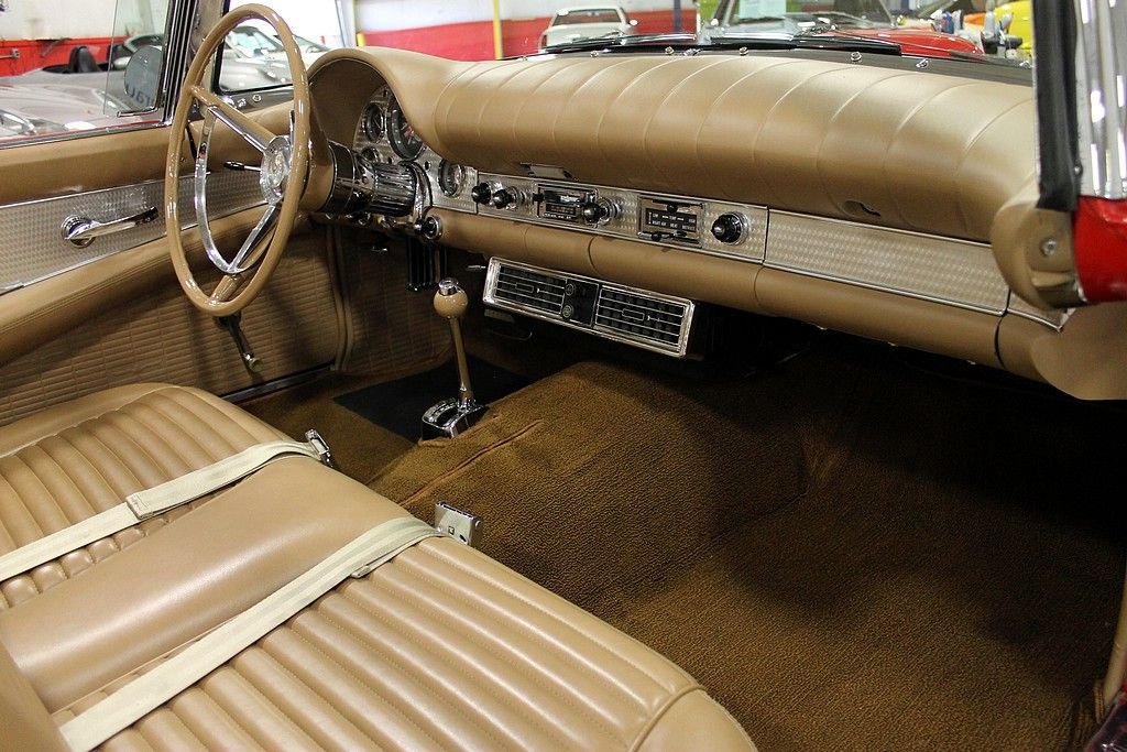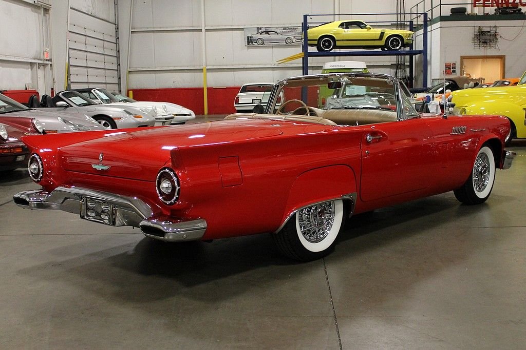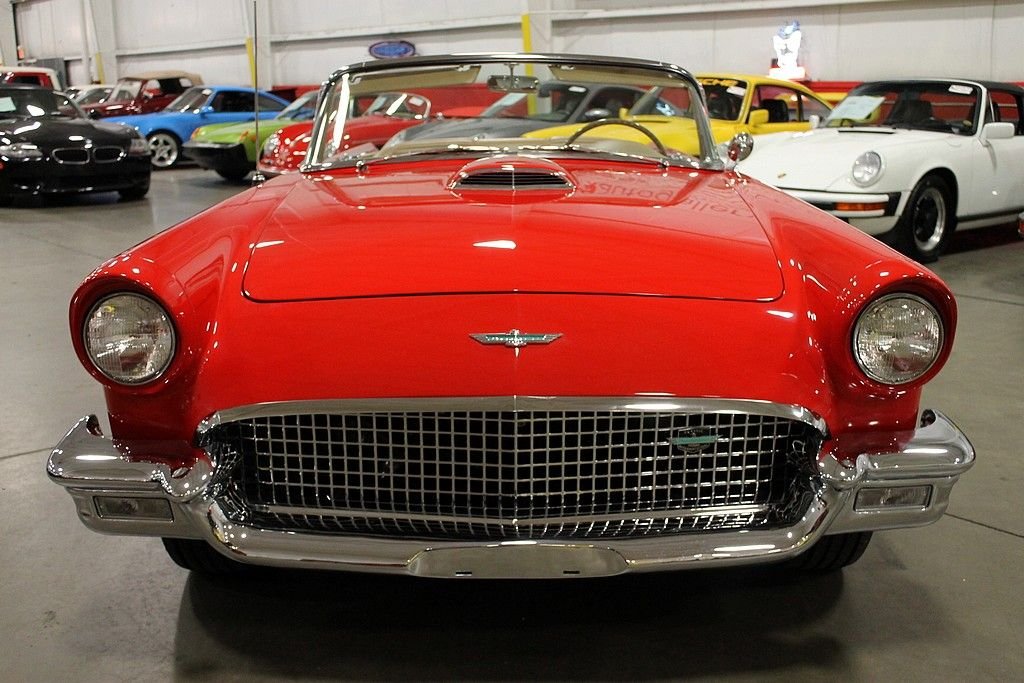 The Ford Thunderbird project was in direct response to that of the Chevrolet Corvette. In fact, the number of T-Birds sold the first 3 years of production was much greater than the Corvette. This might have been the result of a better marketing campaign by Ford. They were the first to market the term “personal luxury car” vs “sports car”. The original 2 seater personal luxury car reached its pinnacle in the final year of production, 1957. The car received some subtle styling changes up front along with pronounced tail fins on the rear of the car. Fords Thunderbird for 1957 still remains one of the most recognizable car on the planet. The example offered here is an outstanding example that was sold new at Ames Ford Sales, San Rafael, CA. This 1957 Thunderbird has been treated to a no expense spared, nut and bolt restoration finished in classis Flame Red over Tan interior, tan top. The 292 V8 has been completely rebuilt and fortified with hardened valve seats for today's gas, high output alternator, new radiator and heating core, and a 4 barrel carburetor with automatic choke. Other features include vintage air conditioning, added electric cooling fans that come on when the air conditioning engages, power steering, power brakes, Kelsey Hayes wire wheels with wide whites, new glass, and AM / FM radio. Mechanically, all aspects of this American icon have been refurbished and rebuilt and or replaced with much attention to detail and drivability. Our test drive revealed the best driving early T-bird that we have seen. Cosmetically, the paint, chrome, interior, engine compartment and underside are breathtaking. Documentation includes progress photos of the restoration, original dealer invoice, and owners manual. We all know that the T-bird has been an iconic part of collector car world from movies to being a staple among many personal and museum collections. The car offered here features a top shelf restoration and is fully sorted as it has been driven 1883 miles since completion. It does not get better than this. A must consider for any collection