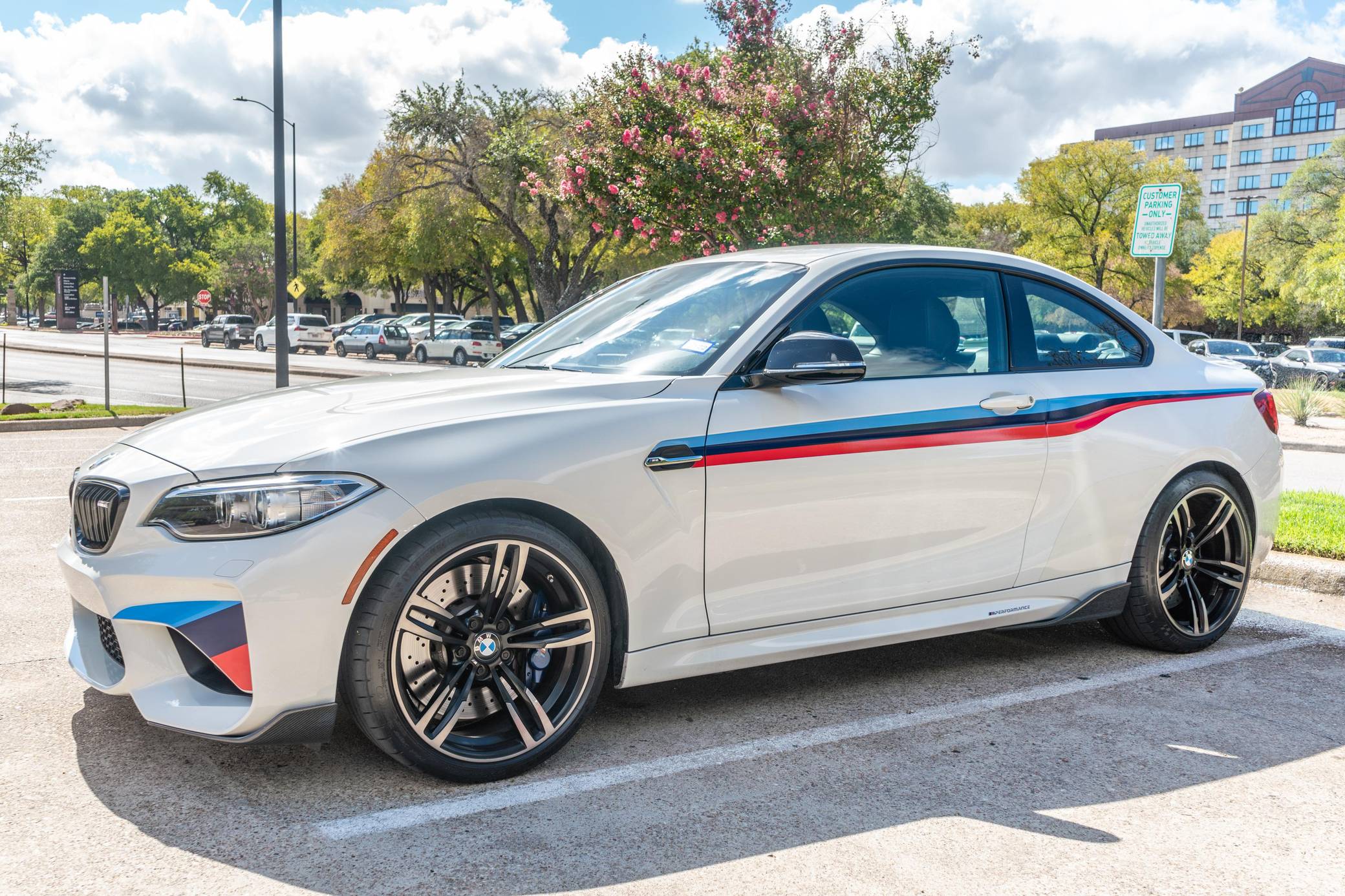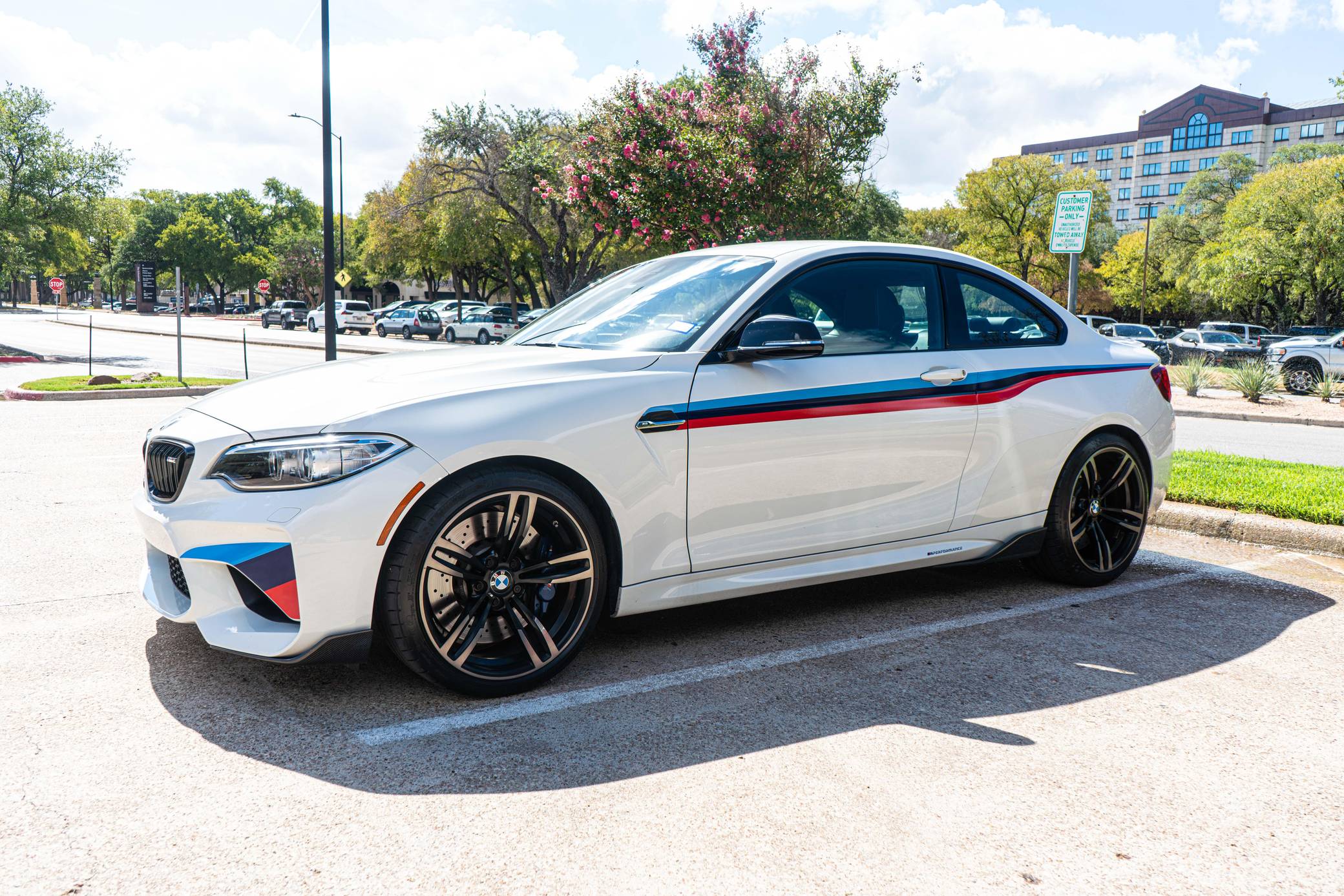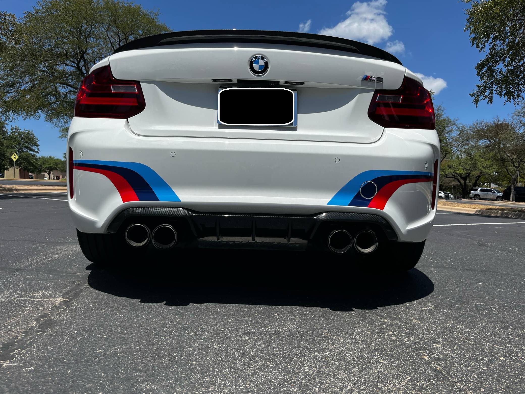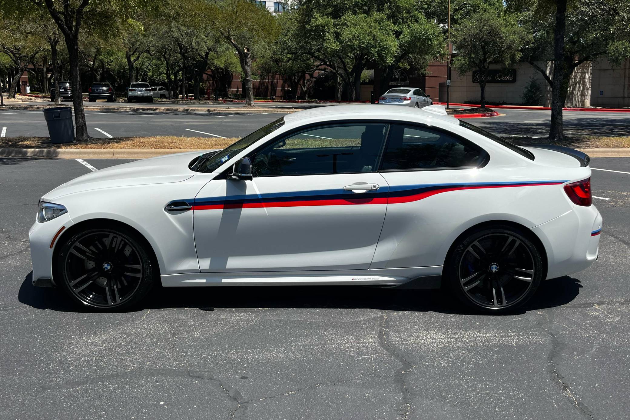2017 BMW M2, finished in Alpine White with a black interior. Factory equipment includes the M Performance, Executive, and M Driver's packages, a carbon fiber aero kit, BMW Motorsport stripes, Dakota leather upholstery with blue stitching, carbon fiber and Alcantara trim, stainless steel pedals, Apple CarPlay compatibility, and a Harman/Kardon sound system. The seller reports no modifications. BMW introduced the F87 M2 for the 2016 model year as a high-performance evolution of the "F22"-generation 2 Series. Developed to replace the vaunted 1 Series M Coupe, it was celebrated as one of BMW M's greatest modern hits. It stood out from the 2 Series thanks to a more powerful engine, a revised chassis, M-specific suspension with aluminum components, and a more muscular-looking exterior design. Power comes from a turbocharged "N55" 3. 0-liter straight-6 engine, rated at 365 horsepower and 343 lb-ft of torque. Output is sent to the rear wheels via a 7-speed double-clutch automatic transmission.