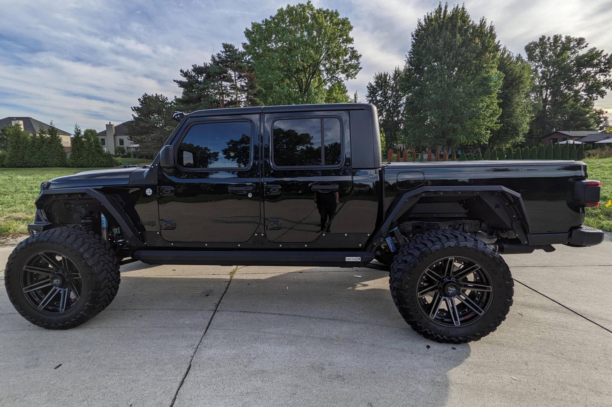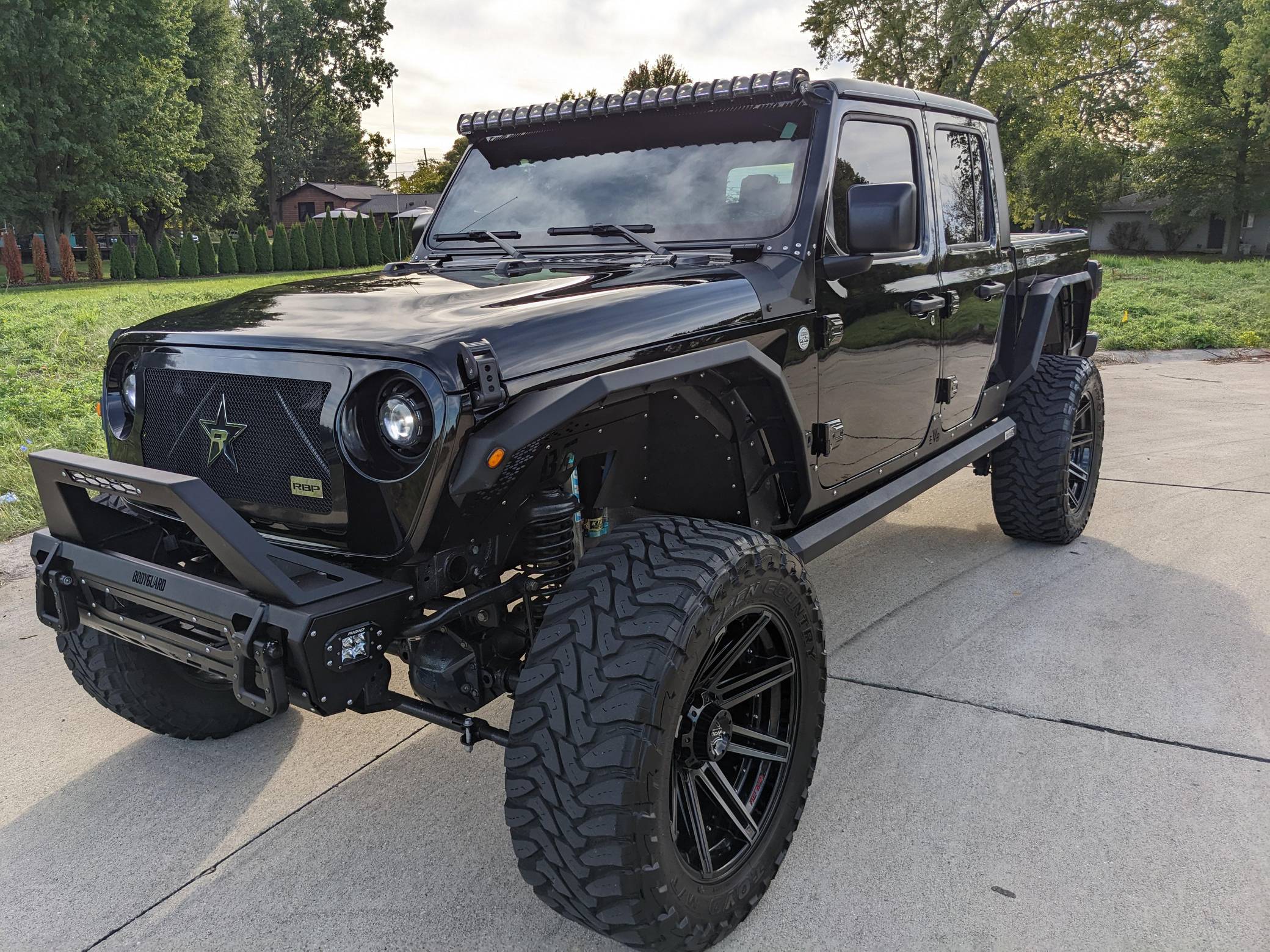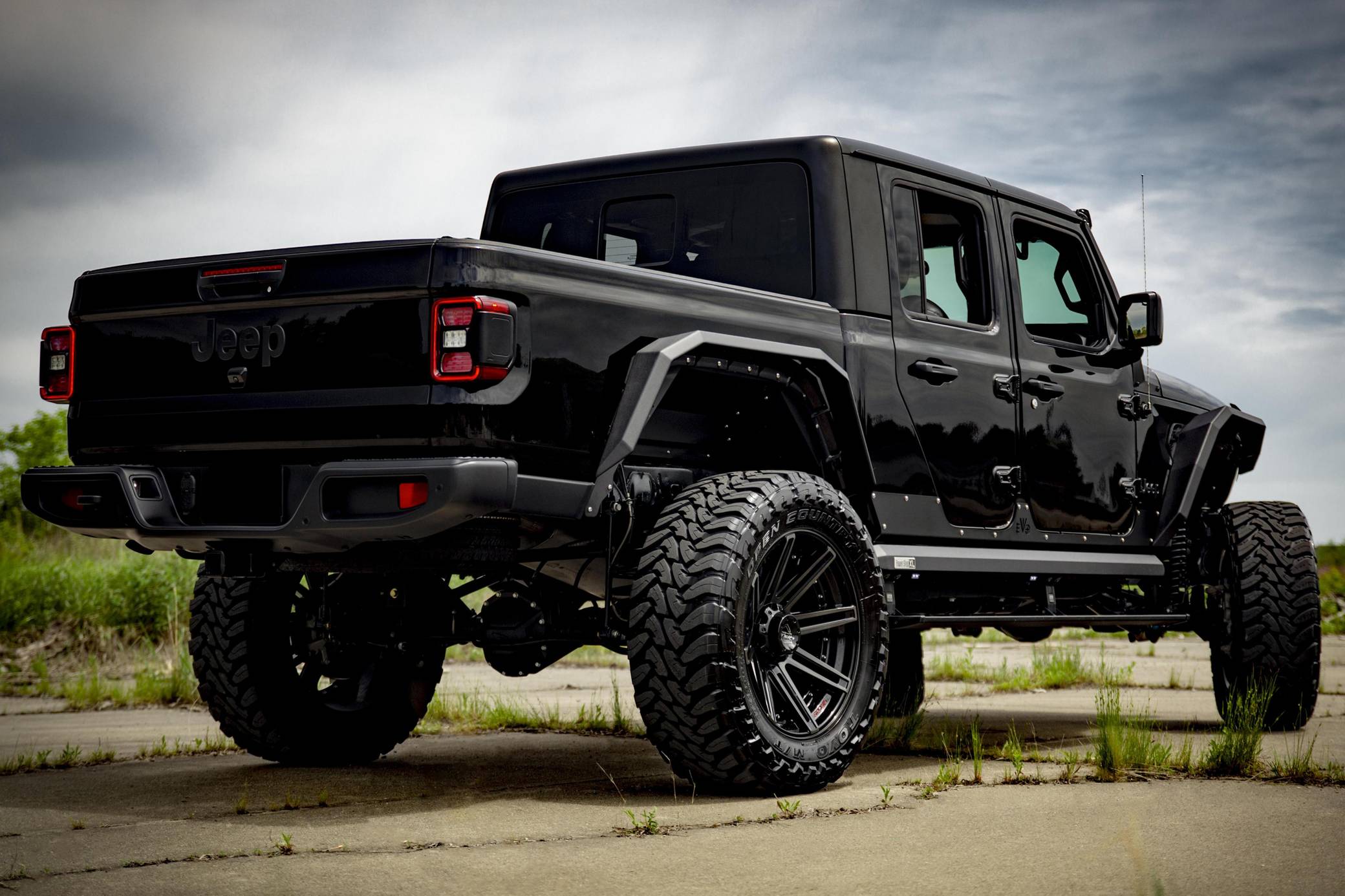 THIS. . . is a 2020 Jeep Gladiator Sport 4x4, finished in black with a black interior. It also confirms that it's a one-owner truck. A partial list of notable equipment includes a Command-Trac 4WD system, a 3-piece hard top, LED taillights, heated front seats, a heated steering wheel, an Alpine audio system, remote start, blind-spot monitoring, and a Uconnect 4 infotainment system with Android Auto and Apple CarPlay. Modifications to this Gladiator are extensive, and the full list is detailed below. include 22-inch 4Play wheels with Toyo M/T Open Country 37-inch tires, an EVO Manufacturing 4. 5-inch lift kit with King shocks, a Rigid Industries light bar, AMP Research power running boards, a Bodyguard RX front bumper, Bodyguard RX fenders, and Katzkin TekStitch Tuscany leather interior. The Gladiator -- Jeep's first pickup in nearly three decades -- arrived for the 2020 model year. Closely related to the Wrangler JL, the Gladiator rides on a 137. 3-inch wheelbase and boasts a 60. 3-inch bed. With the Max Tow package and the 8-speed automatic transmission, a stock Gladiator Sport is rated to lug up to 7,650 pounds. Power comes from a 3. 6-liter V6 engine, rated at 285 horsepower and 260 lb-ft of torque. Output is sent to the four wheels via an 8-speed automatic transmission and a Command-Trac part-time 2-speed transfer case.