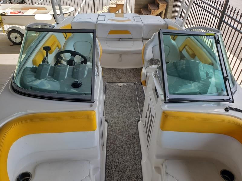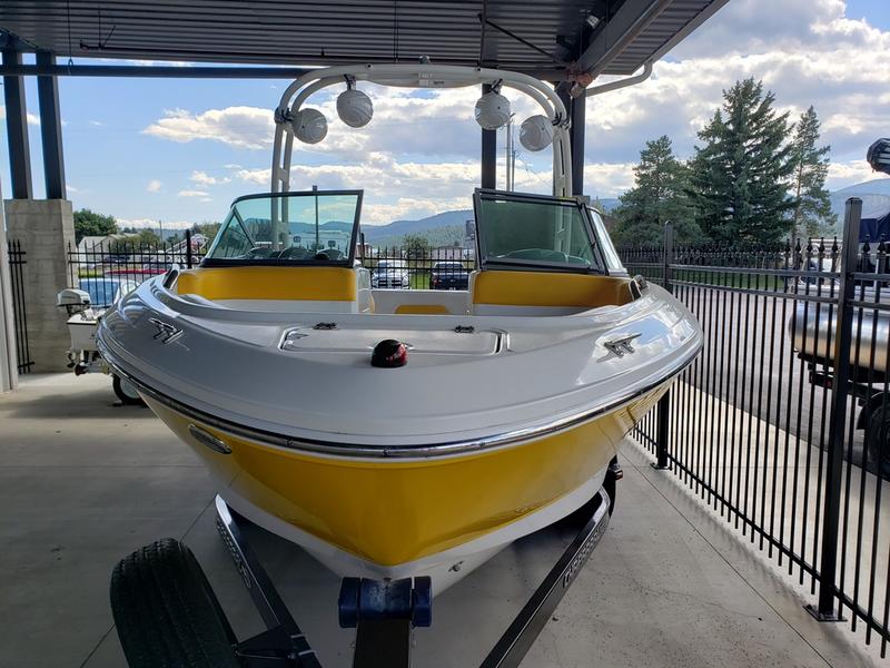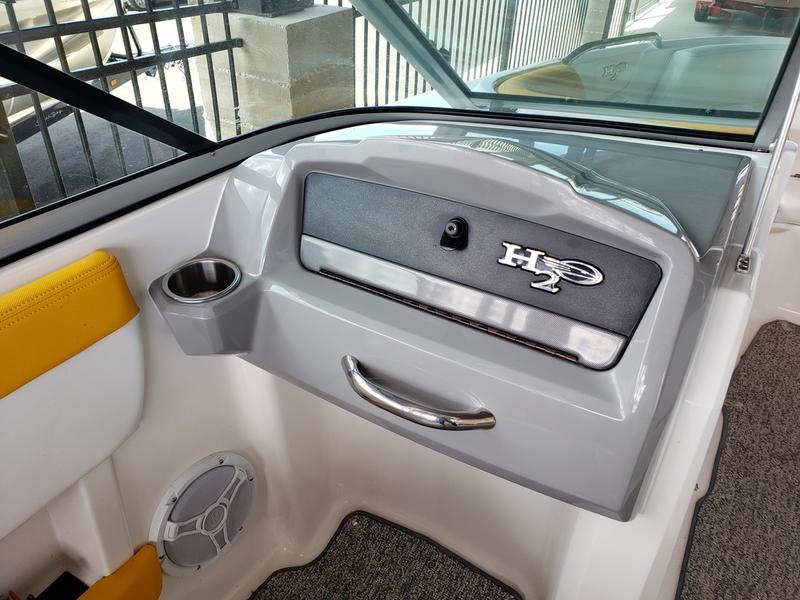 Beautiful 2014 Chaparral H20 21 Sport has a white and yellow exterior, a white and yellow interior, and mixed grey snap-in carpet. It comes equipped with a Jenson stereo system with massive Memphis Audio speakers and a Bbox subwoofer, white tower with towing capabilities, and 4 tower speakers, massive sun pad, swim platform with swim ladder, bow anchor storage, a tandem axle Chaparral trailer with a spare tire, and much, much more!