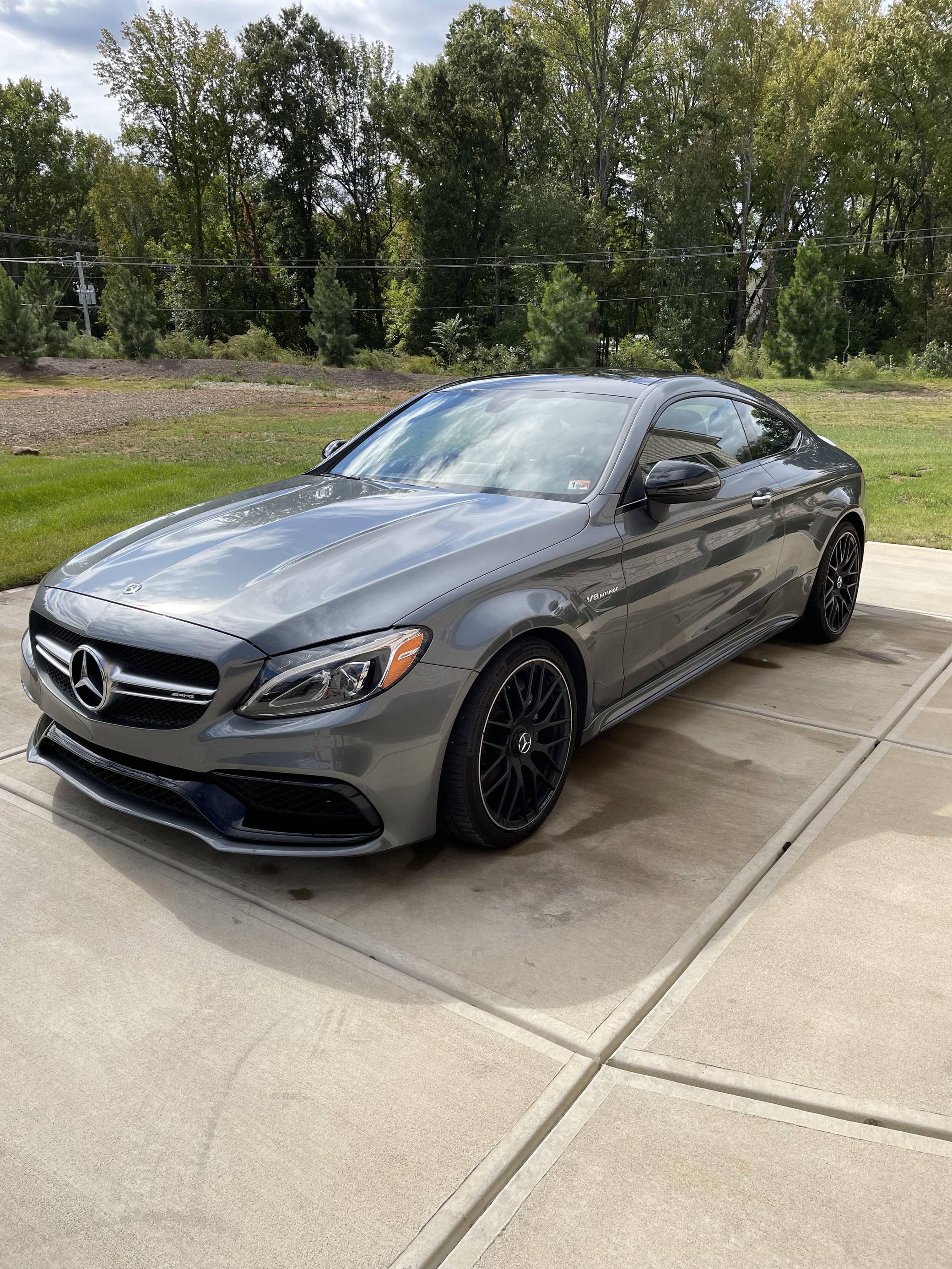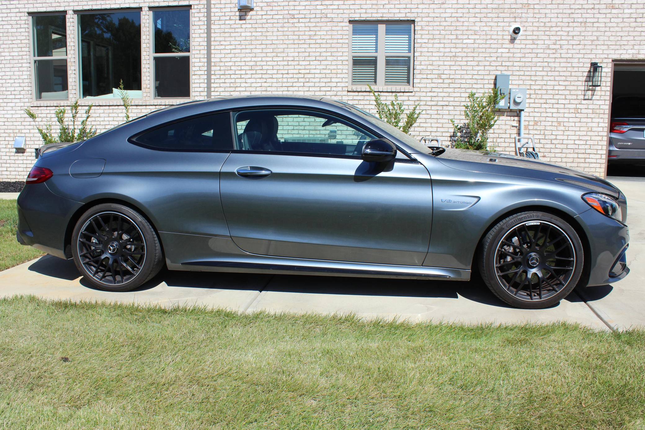 THIS. . . is a 2018 Mercedes-AMG C63 Coupe, finished in Selenite Gray Metallic with a black interior. This coupe's odometer displays about 21,500 miles. Factory equipment includes the Premium and Night packages, 19-inch wheels, the AMG Ride Control suspension system, a limited-slip differential, a glass sunroof, wood interior trim, MB-Tex and Dinamica upholstery, heated and power-adjustable front seats, and the COMAND infotainment system. This C63's build sheet is pictured in the gallery, and the seller reports no modifications. Mercedes-AMG introduced the W205-based C63 for the 2015 model year, shortly after it morphed into a sub-brand within Mercedes-Benz. Offered as a sedan, a coupe, and a convertible, the C63 surfed the downsizing wave sweeping across the industry by trading displacement for forced induction, yet it was quicker and sharper to drive than its predecessor. Production ended in 2021, and Mercedes-AMG has confirmed that it won't build another V8-powered C63. Power comes from a 4. 0-liter twin-turbocharged V8, rated at 469 horsepower and 479 lb-ft of torque. Called "M177" internally, it spins the rear wheels via a 7-speed automatic transmission.