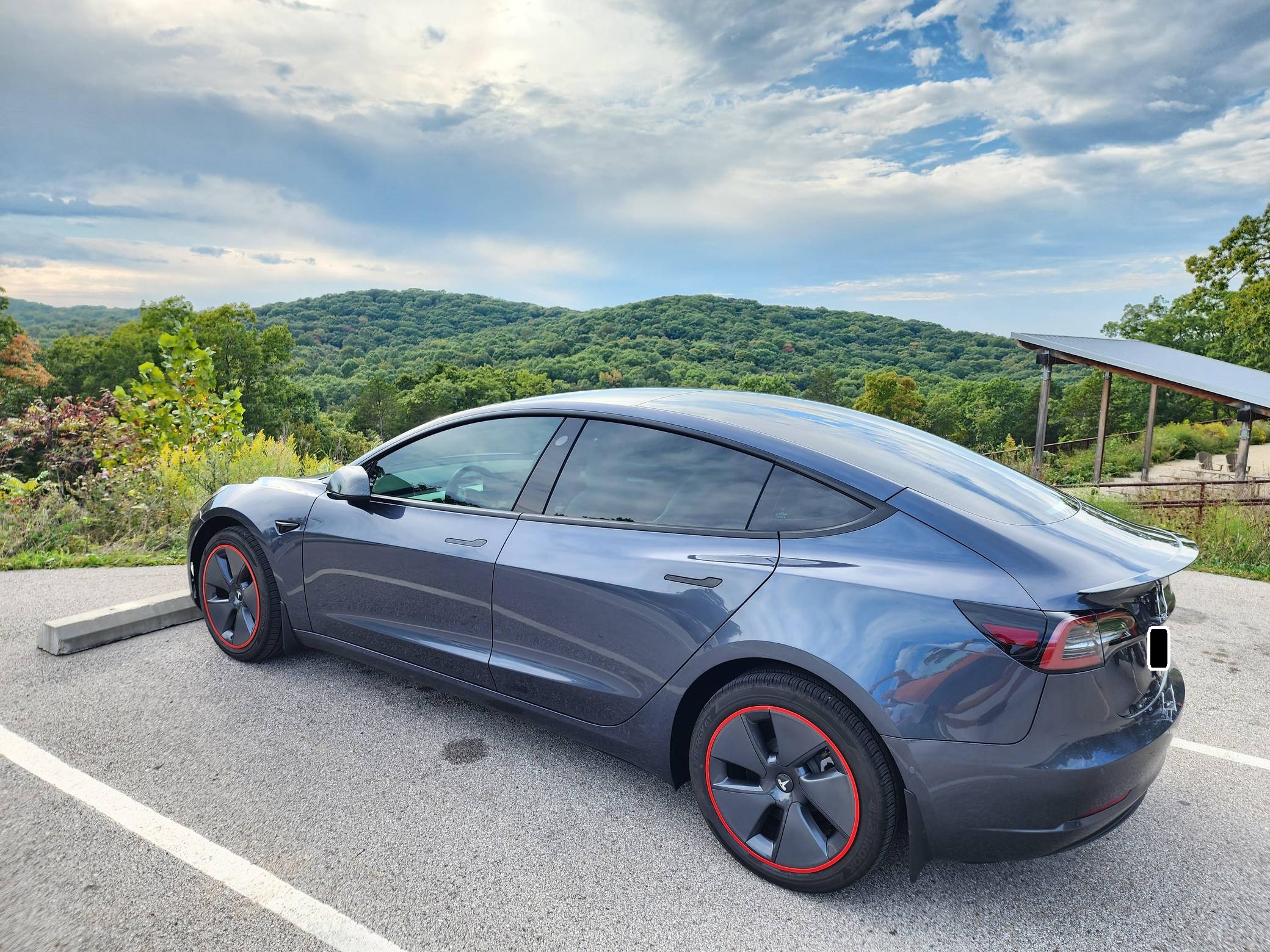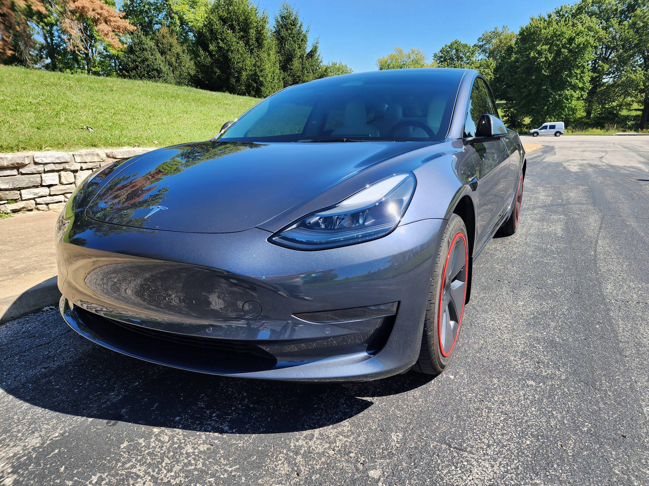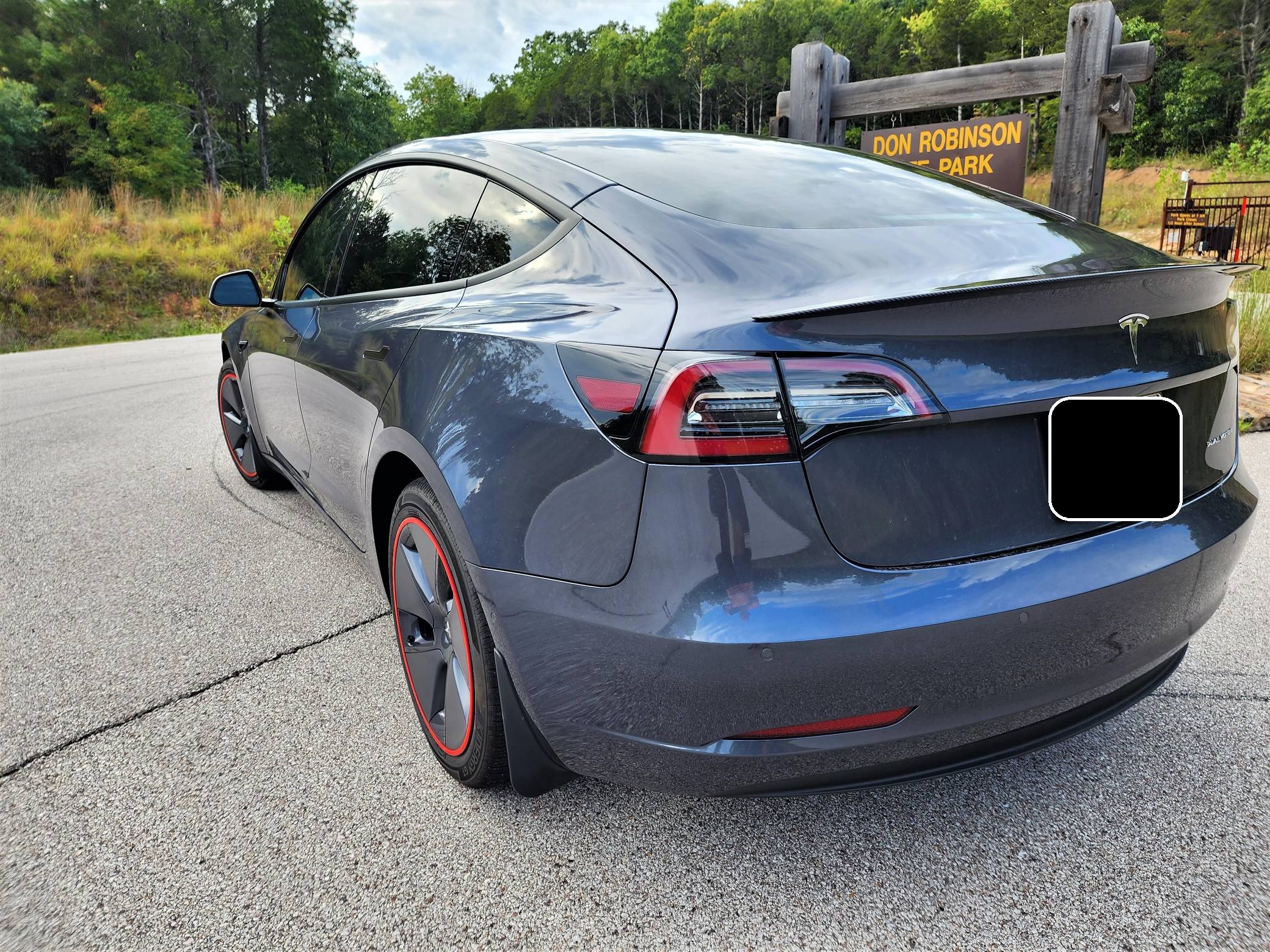 THIS. . . is a 2022 Tesla Model 3 Long Range AWD, finished in Midnight Silver Metallic with a white and black interior. Modifications reported by the seller include red wheel trim rings, carbon fiber mirror caps, a swiveling and tilting central touchscreen, an aftermarket rear lip spoiler, and a custom center arm rest. Positioned as Tesla's entry-level car, the Model 3 was celebrated as a premium EV with a usable range and respectable performance, all at a reasonably attainable price. It's still available today, and it has gone through several evolutions (including many software updates) since its introduction. Power comes from a pair of electric motors that draw electricity from an 82-kilowatt-hour lithium-ion battery pack to zap the four wheels with 346 horsepower and 389 lb-ft of torque, according to third-party estimates. In 2022, the Long Range received a maximum driving range rating of 358 miles from the EPA.