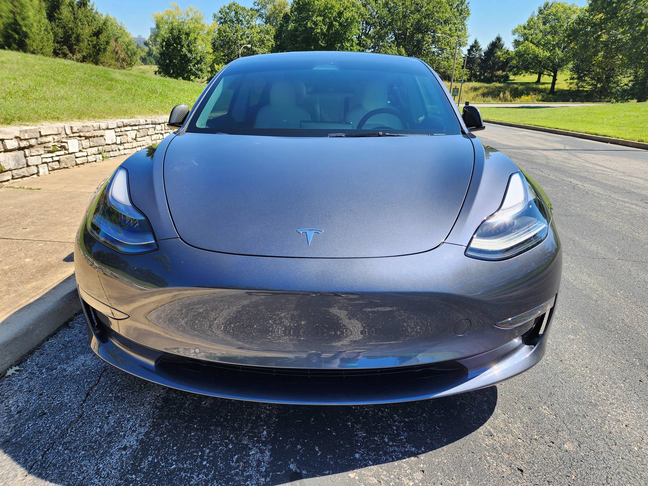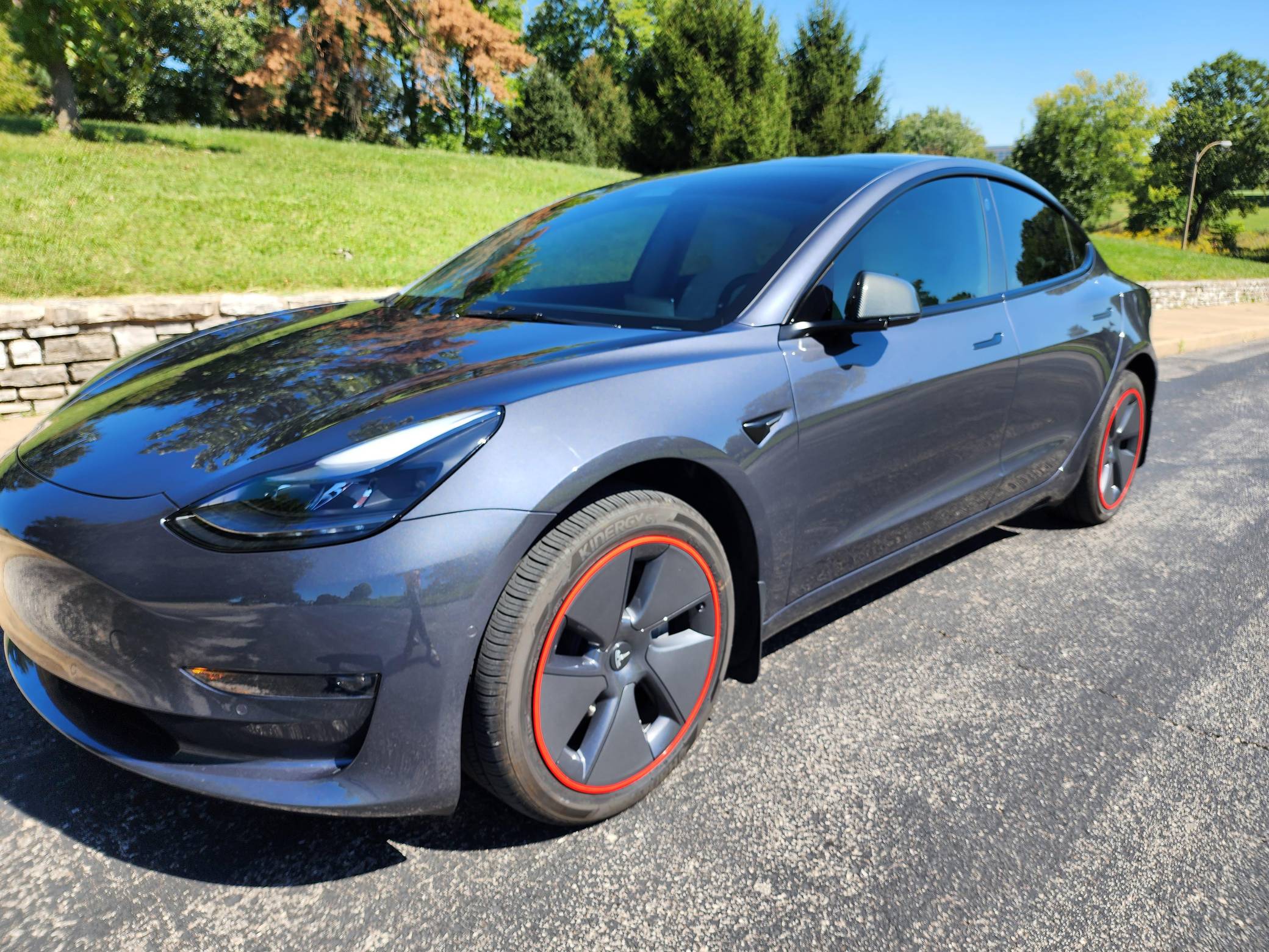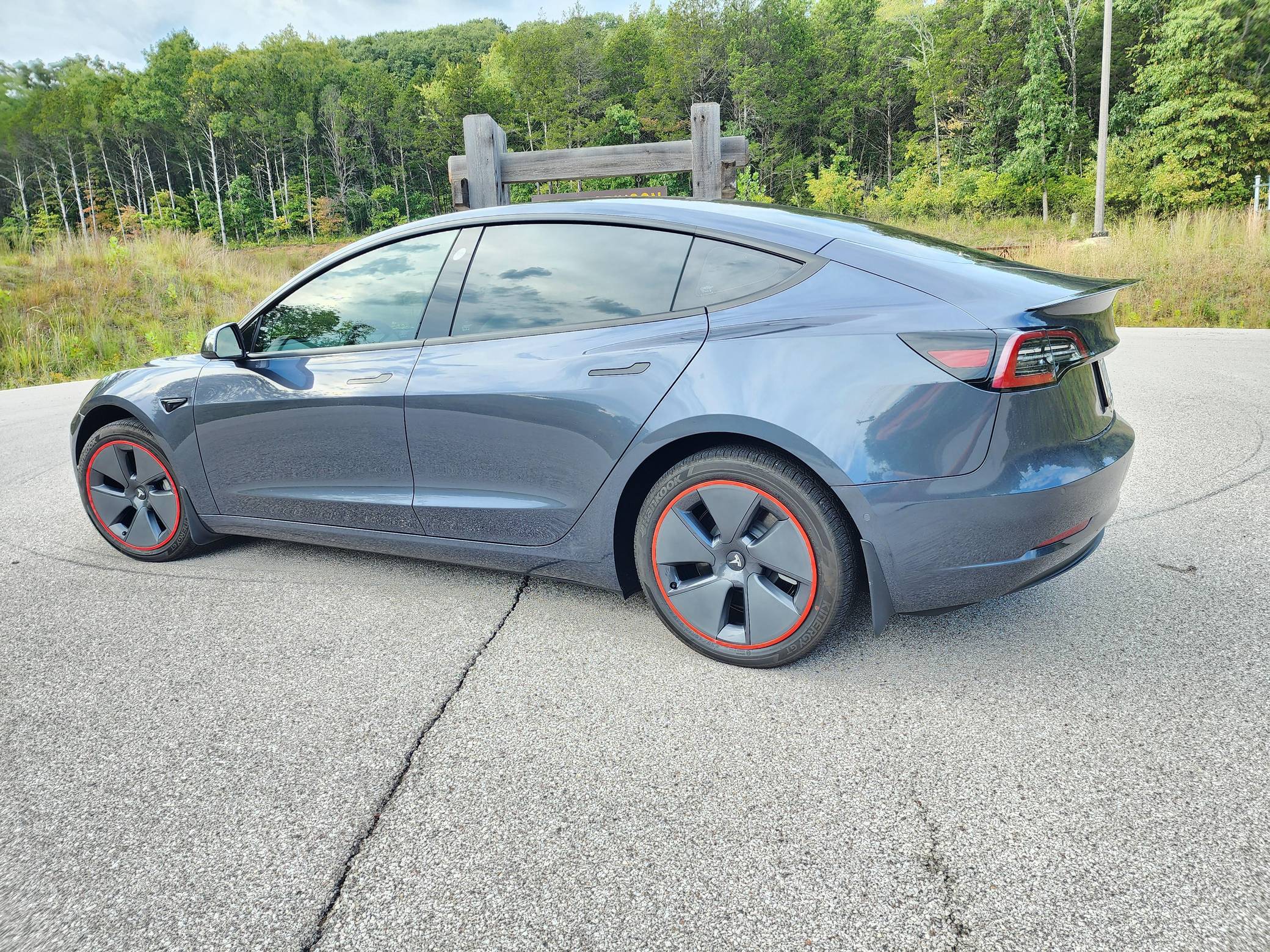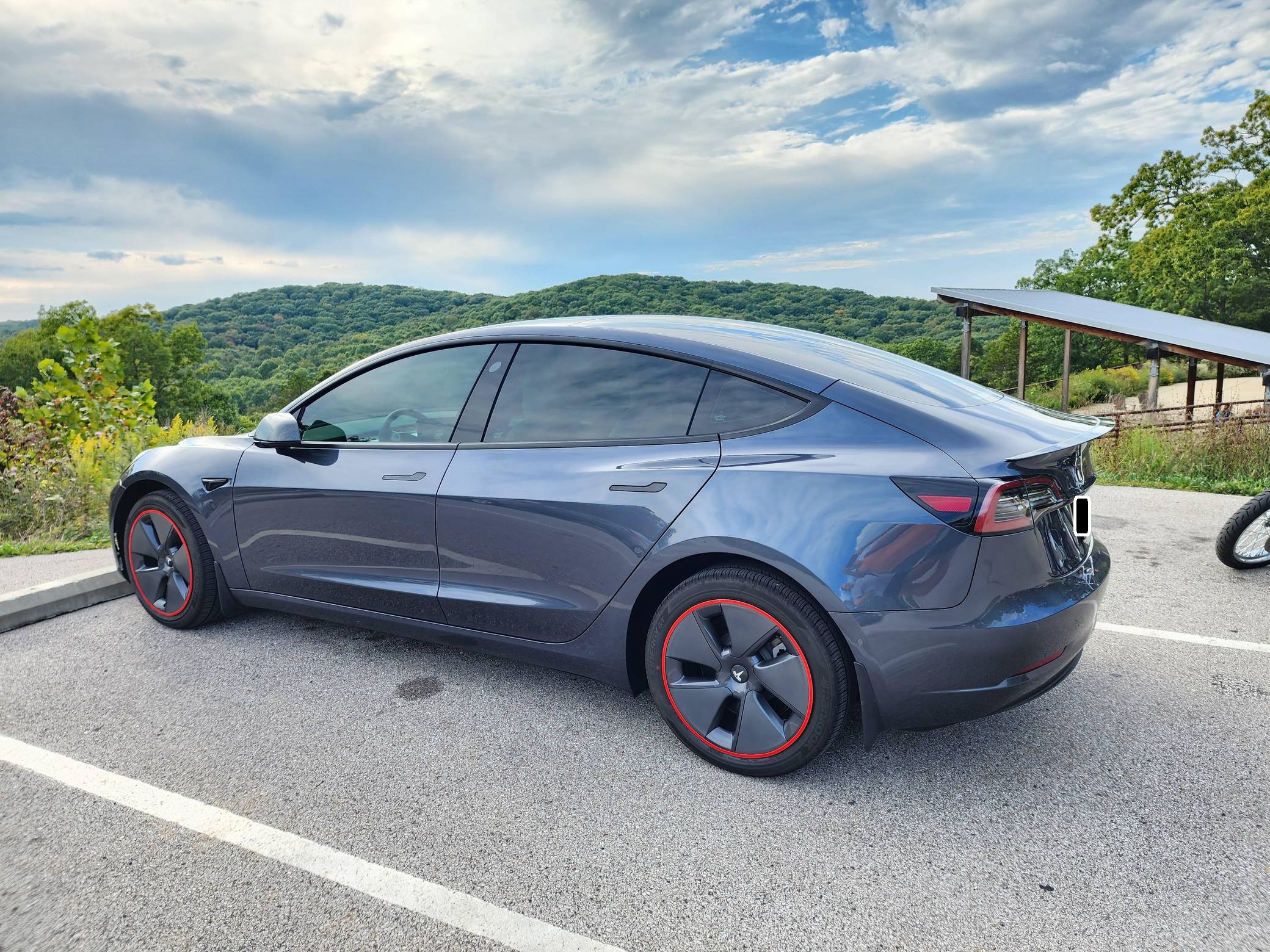 THIS. . . is a 2022 Tesla Model 3 Long Range AWD, finished in Midnight Silver Metallic with a white and black interior. Modifications reported by the seller include red wheel trim rings, carbon fiber mirror caps, a swiveling and tilting central touchscreen, an aftermarket rear lip spoiler, and a custom center arm rest. Positioned as Tesla's entry-level car, the Model 3 was celebrated as a premium EV with a usable range and respectable performance, all at a reasonably attainable price. It's still available today, and it has gone through several evolutions (including many software updates) since its introduction. Power comes from a pair of electric motors that draw electricity from an 82-kilowatt-hour lithium-ion battery pack to zap the four wheels with 346 horsepower and 389 lb-ft of torque, according to third-party estimates. In 2022, the Long Range received a maximum driving range rating of 358 miles from the EPA.