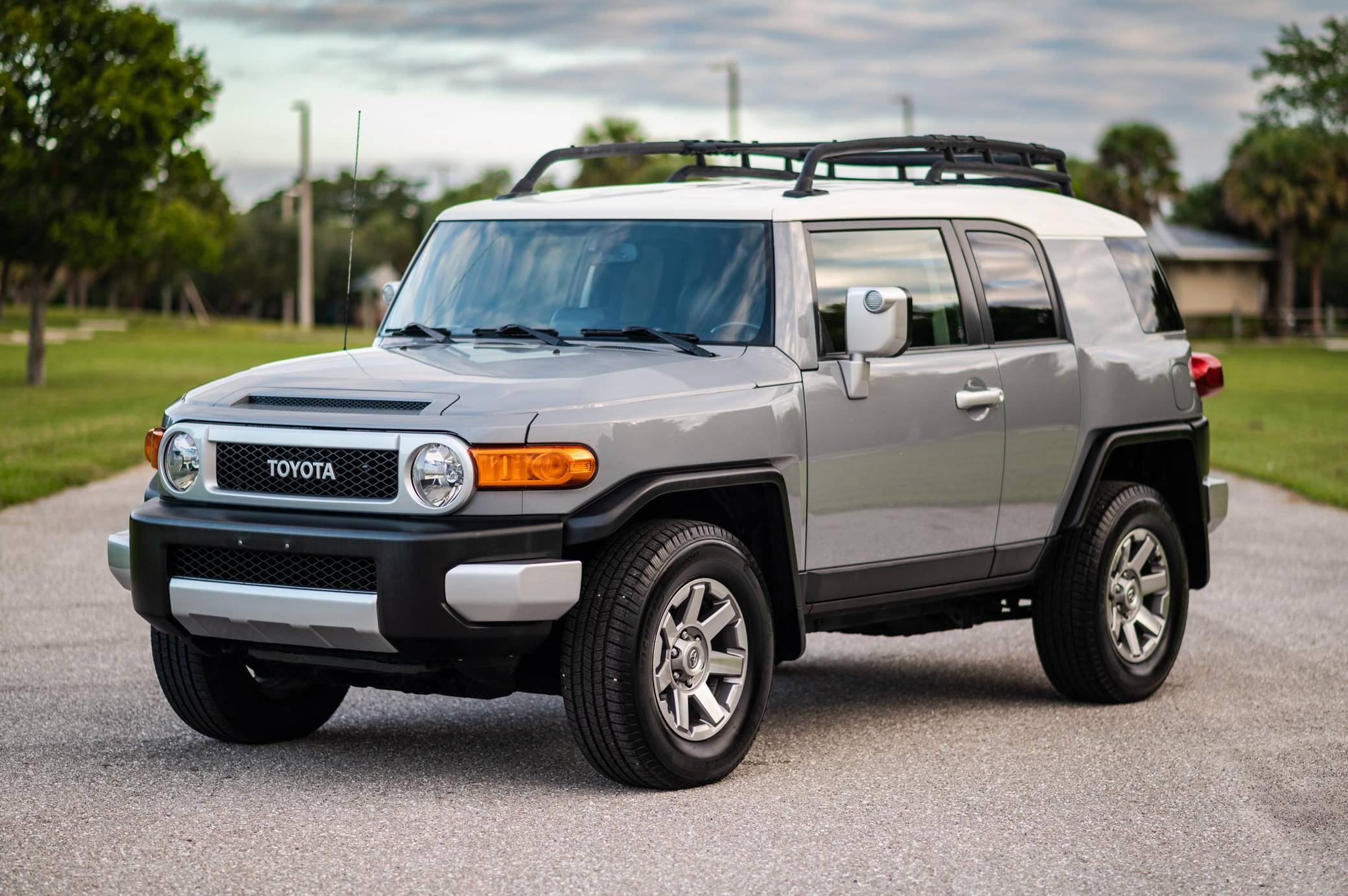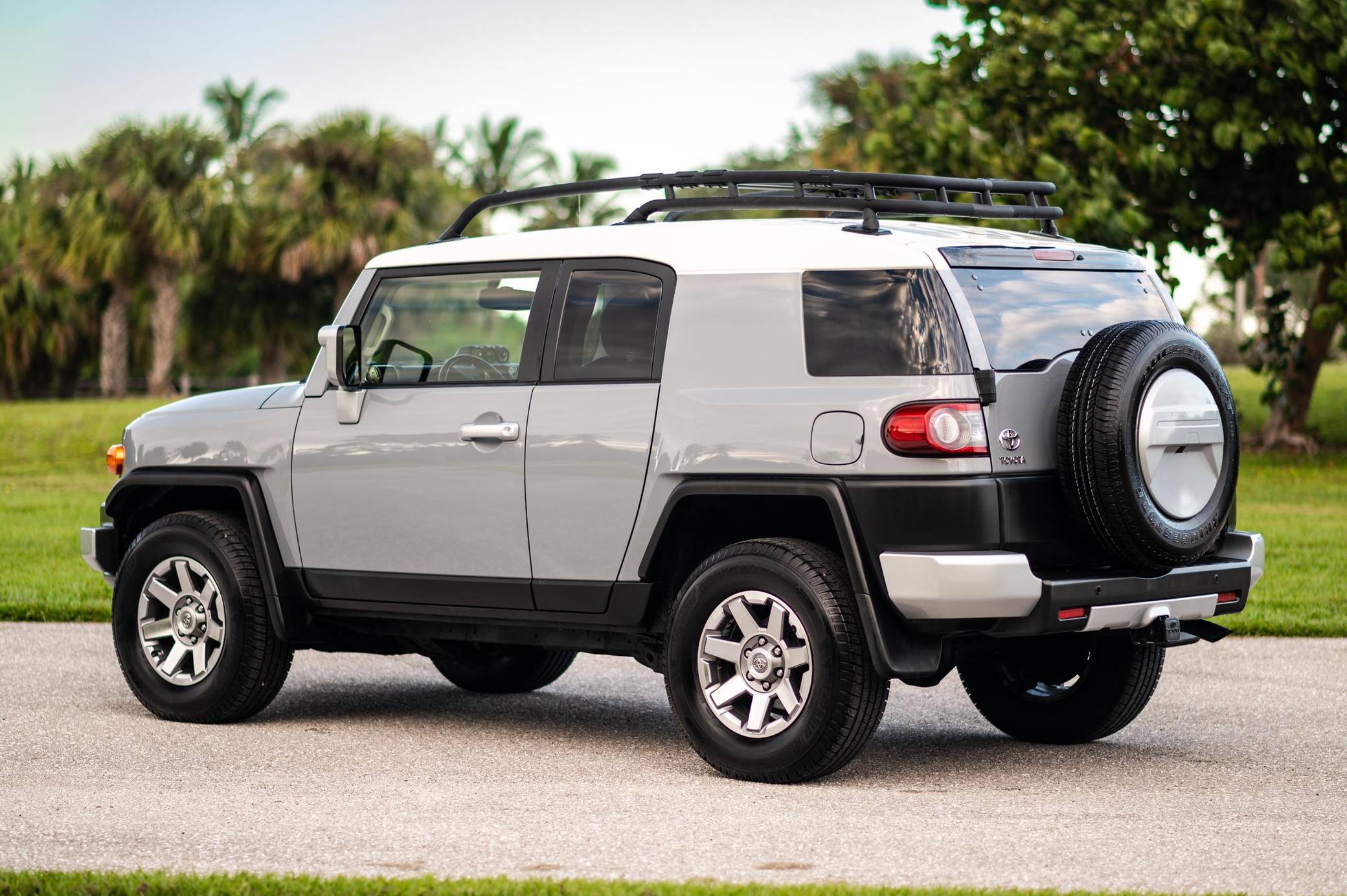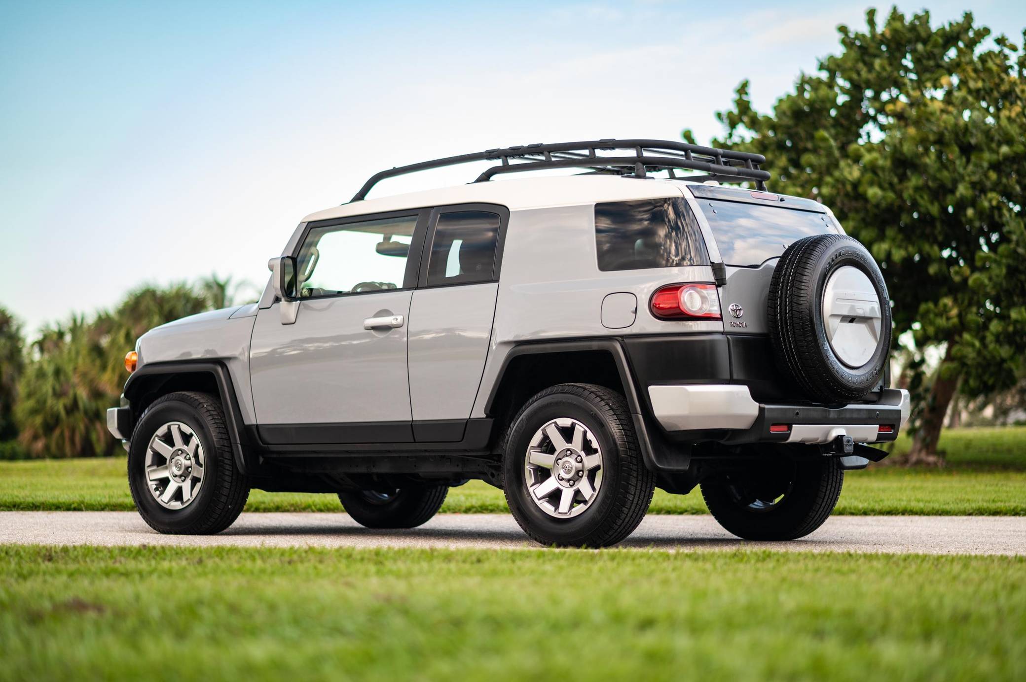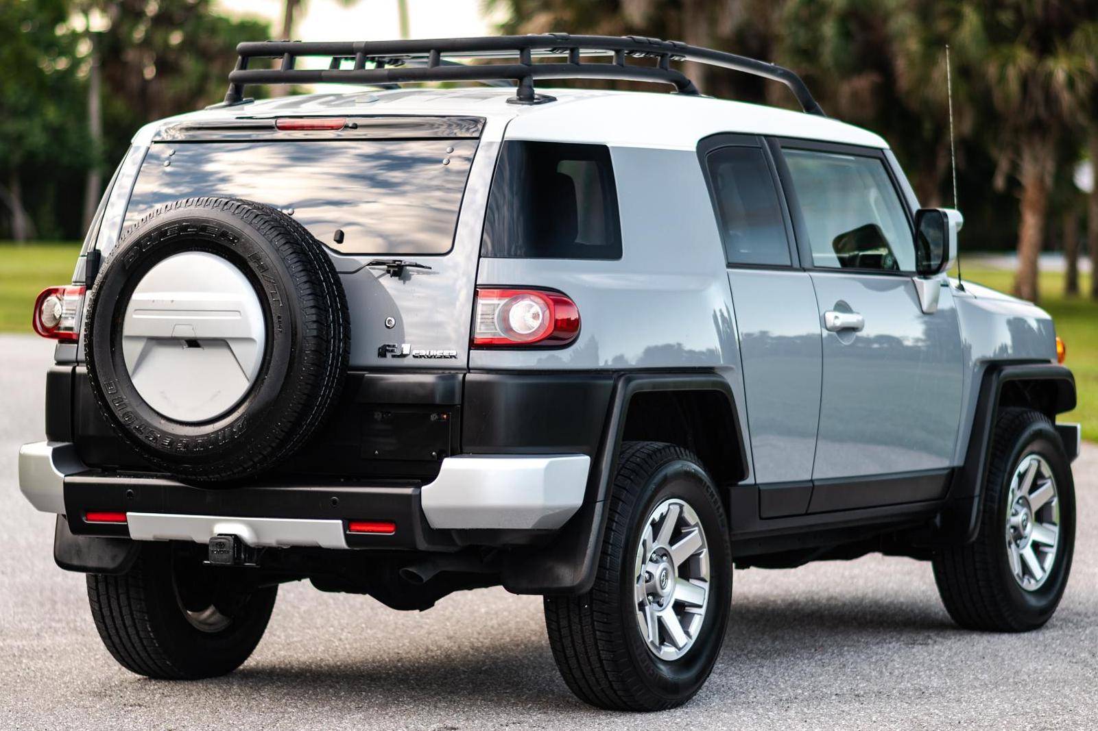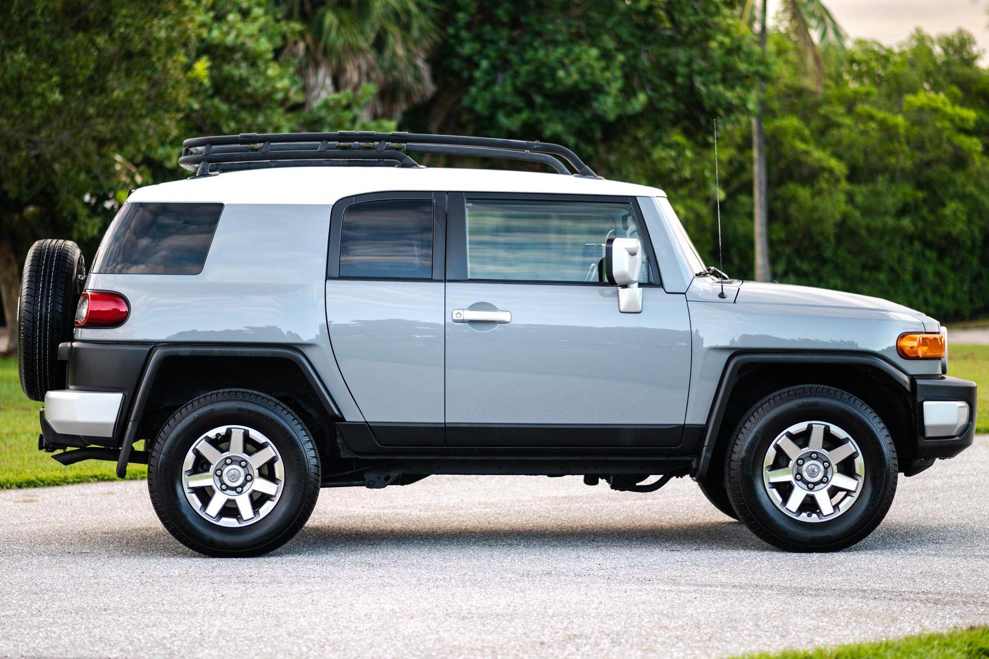 THIS. . . is a 2014 Toyota FJ Cruiser, finished in Cement with a Dark Charcoal interior. The seller reports no modifications. Toyota gave the Jeep Wrangler its first direct rival in many years when it launched the FJ Cruiser for the 2007 model year. The heritage-laced exterior design hid proven suspension and mechanical components shared with the 4Runner, among other Toyota off-roaders, and the FJ stood out with quirks like rear half doors and three windshield wipers. It left the American market after the 2014 model year, though production carried on overseas, and it wasn't directly replaced. Power comes from a "1GR-FE" 4. 0-liter V6, rated at 260 horsepower and 271 lb-ft of torque. Output is sent to the rear or all four wheels via a 5-speed automatic transmission and a 2-speed transfer case.