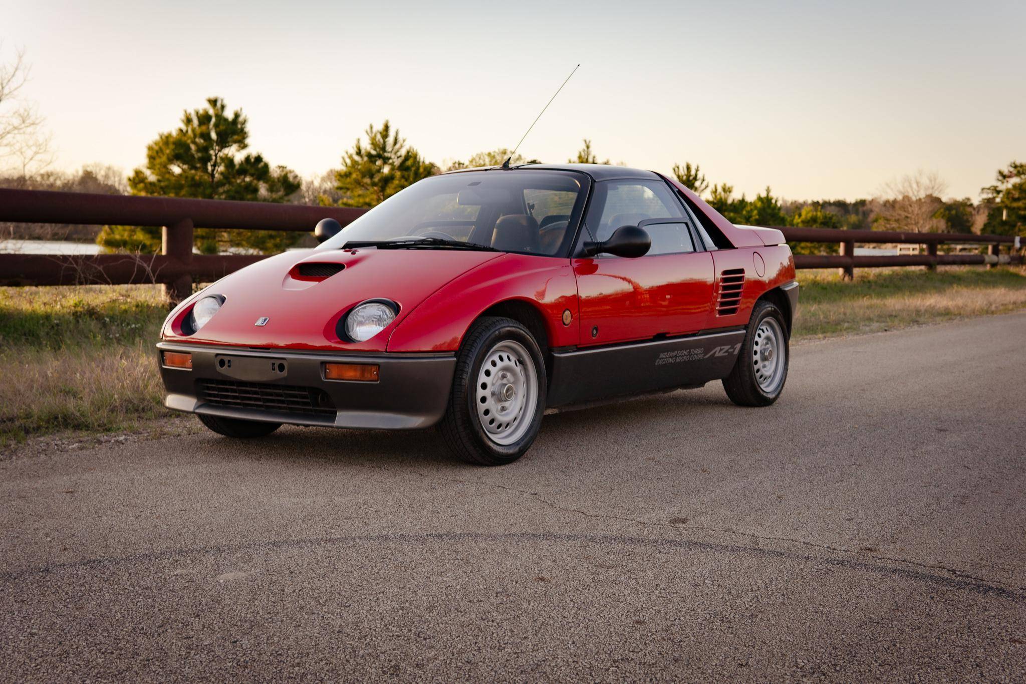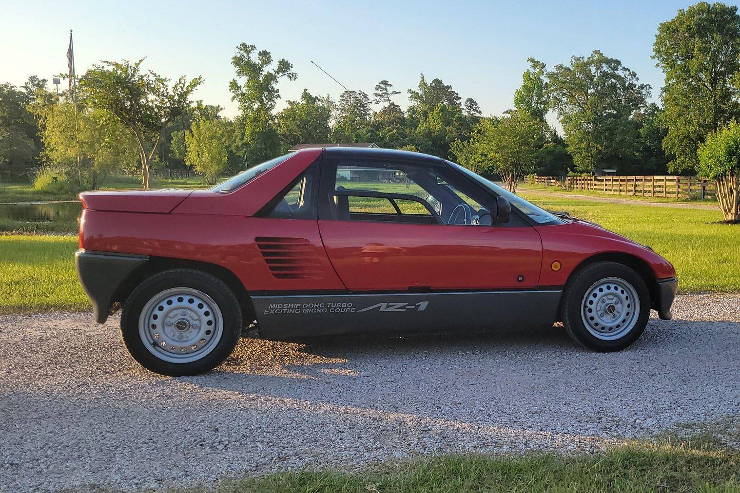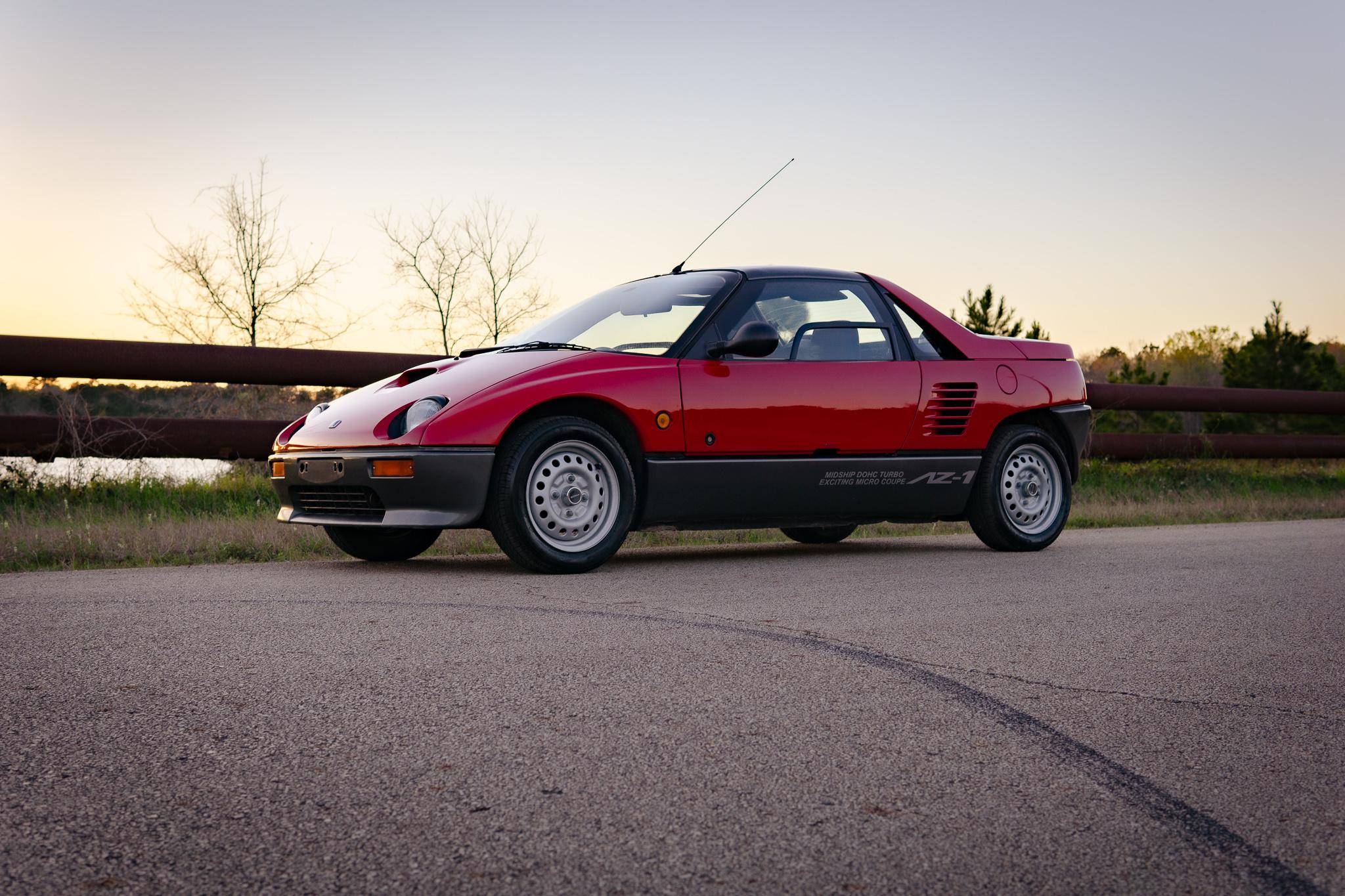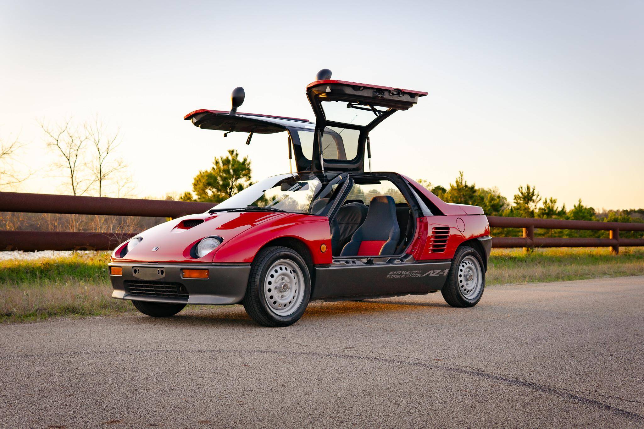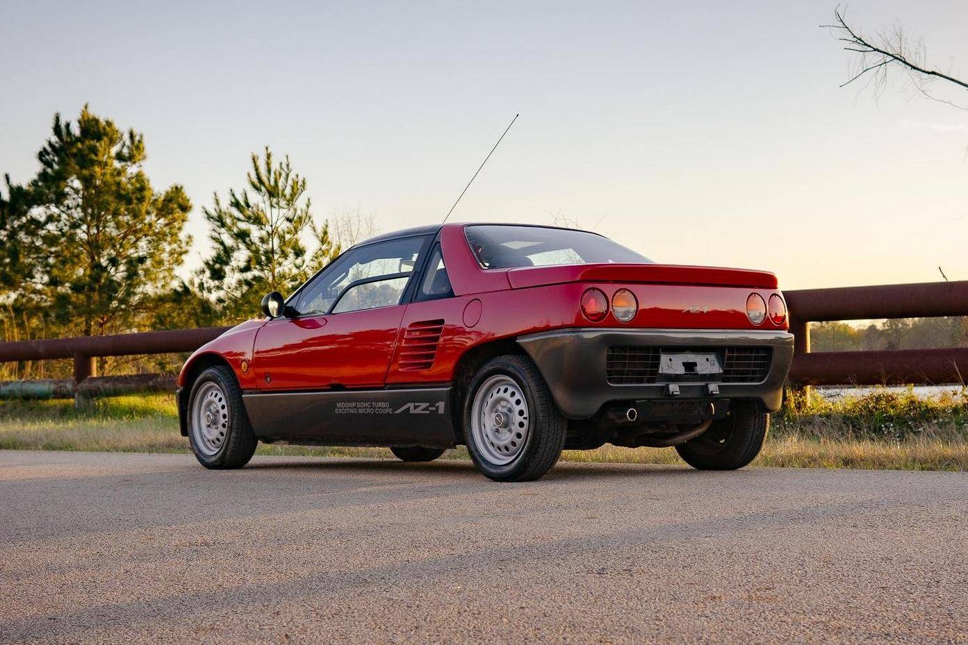 THIS. . . is a 1992 Autozam AZ-1, finished in red with a black interior. Said to be imported from Japan in 2019, it's equipped with a metric instrument cluster, and the odometer shows about 72,500 kilometers, which represents approximately 45,000 miles. Equipment includes 13-inch steel wheels, gullwing doors, cloth upholstery, a MOMO steering wheel, air conditioning, and a rear window defroster. The only modification reported by the seller is a Kenwood head unit. Sized to comply with Japan's strict kei car regulations, the tiny Autozam AZ-1 was developed by some of the same engineers who created the original Mazda MX-5 Miata, and it was manufactured by Suzuki. It made its debut in 1992 as a 1,587-pound coupe with gullwing doors and a mid-mounted engine that gave it excellent handling. About 4,392 units were sold in Japan by Autozam — a Mazda-owned sub-brand — until 1995. Power comes from a mid-mounted, 657cc turbocharged 3-cylinder engine, which produces 63 horsepower and 63 lb-ft of torque. Output is directed to the rear wheels through a 5-speed manual transmission.