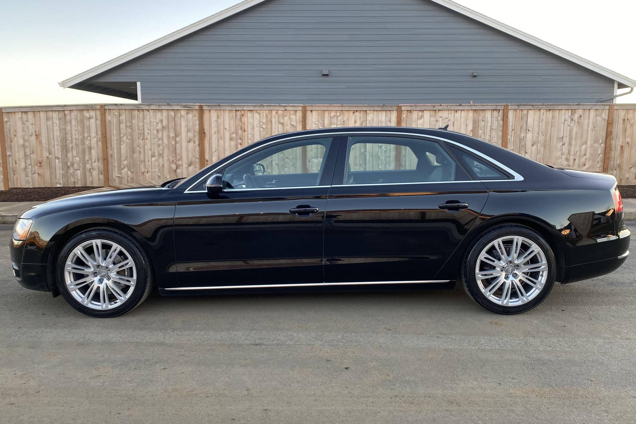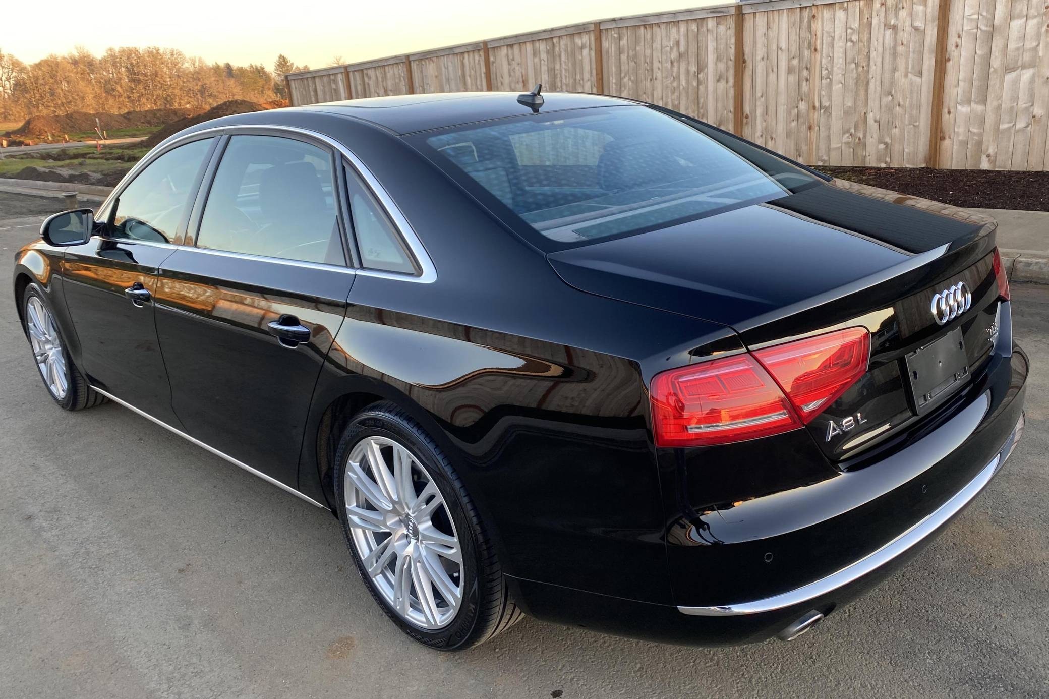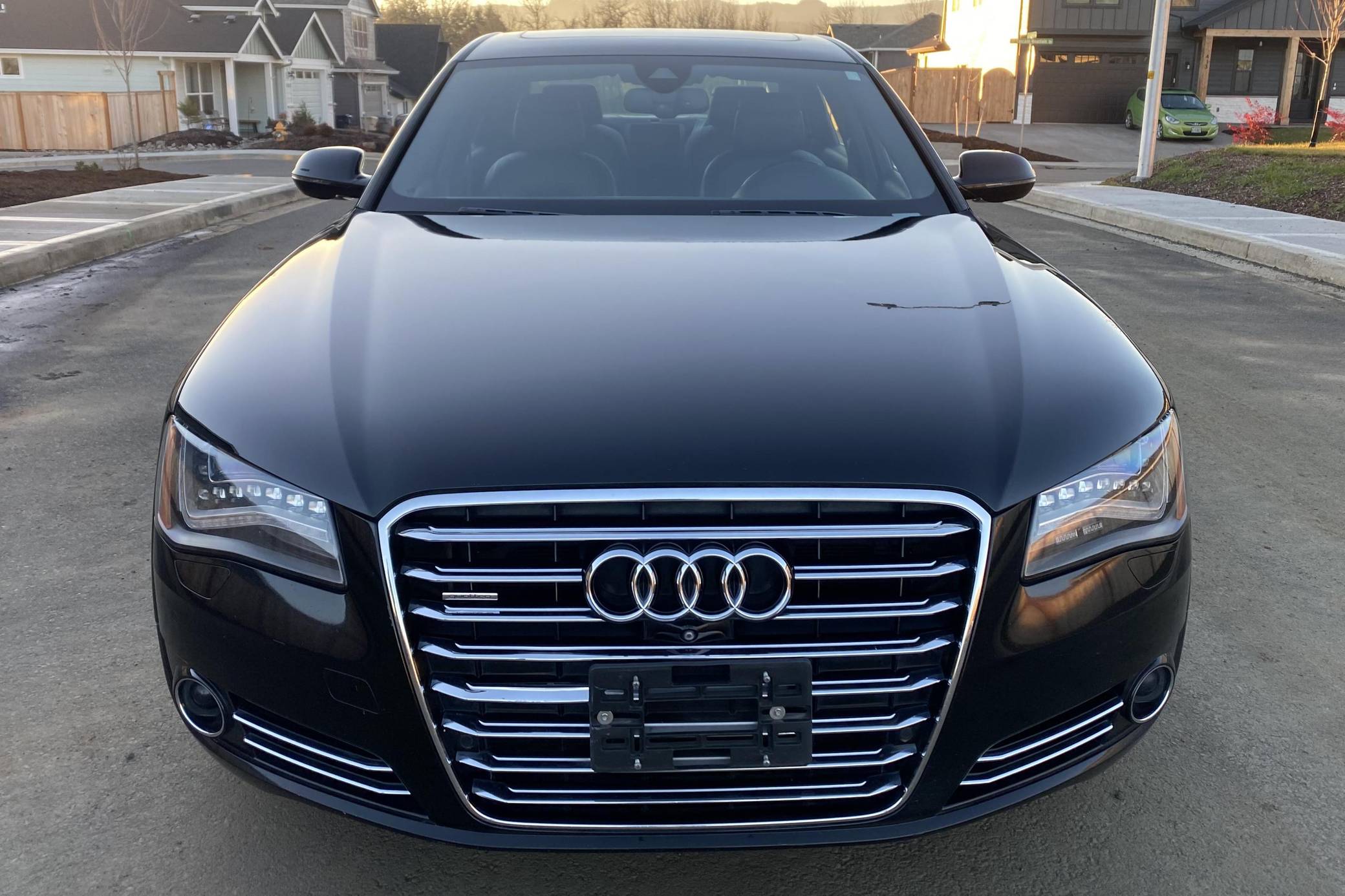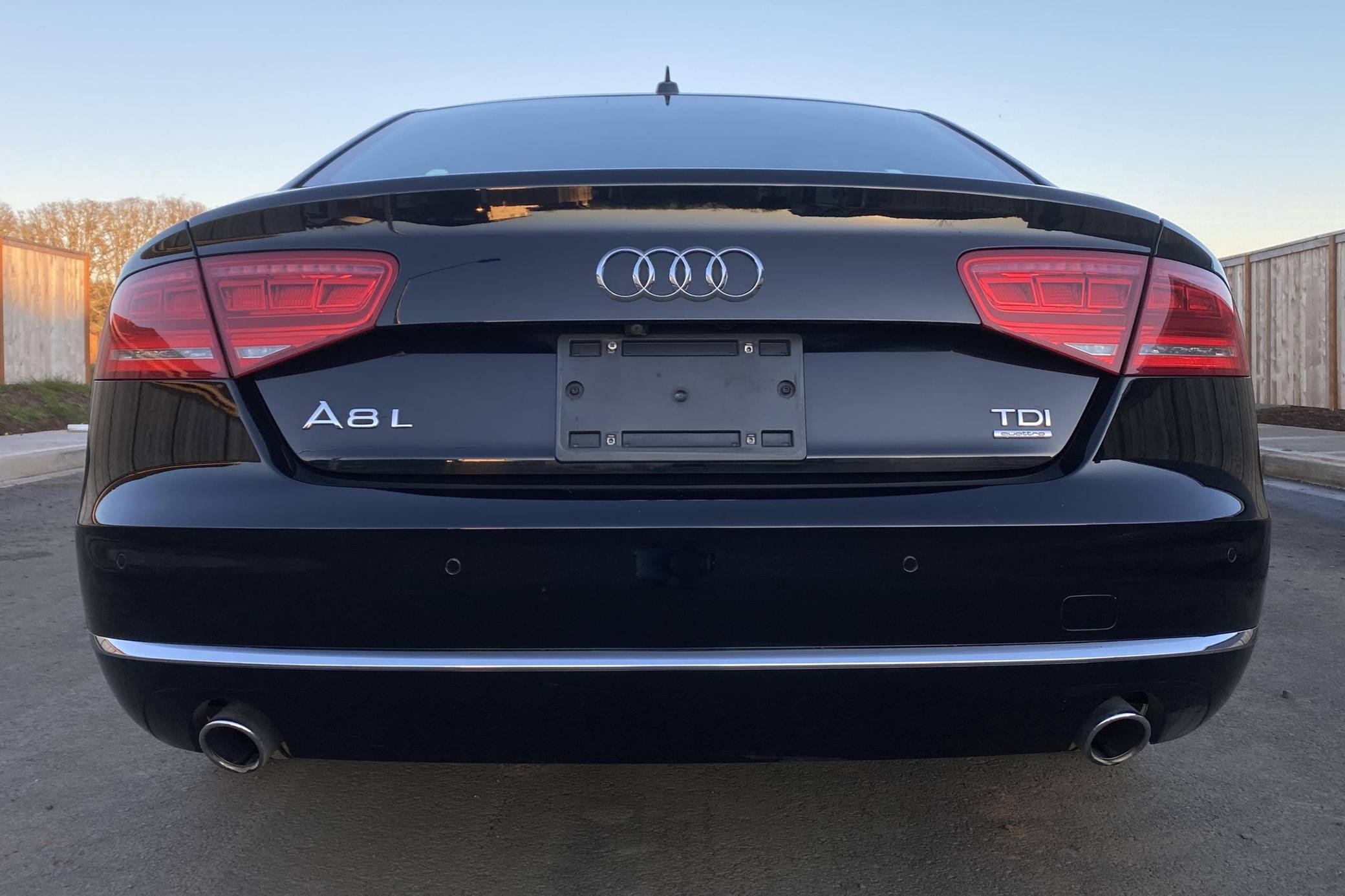 2014 Audi A8 L TDI, finished in Brilliant Black with a black interior. Factory equipment includes the Premium and Driver Assistance packages as well as 20-inch wheels, dual power-operated sunroofs, leather upholstery, heated rear seats, four-zone automatic climate control, and more as listed below. No modifications have been reported by the seller. The “D4” Audi A8 was produced from 2009 to 2017 as the German carmaker’s flagship sedan. It was offered with V6, V8, and W12 engines in North America, while the L model featured a 5. 1-inch longer wheelbase than the standard A8. Fitted with the 3. 0-liter TDI V6, the A8 L TDI is capable of 0-60 mph in 6. 4 seconds while returning a combined 28 mpg. In addition, the A8 L TDI can offer more than 800 miles of range on a full tank. Power comes from a 3. 0-liter turbodiesel “TDI” V6, rated at 240 horsepower and 406 lb-ft of torque. Output is sent to all four wheels via an 8-speed automatic transmission and Audi’s permanent “Quattro” all-wheel drive.