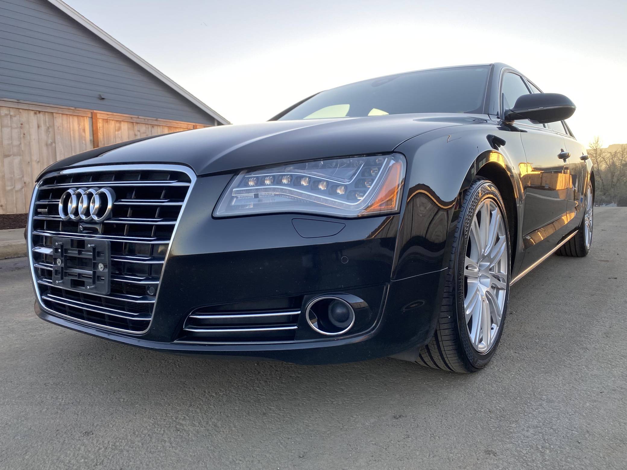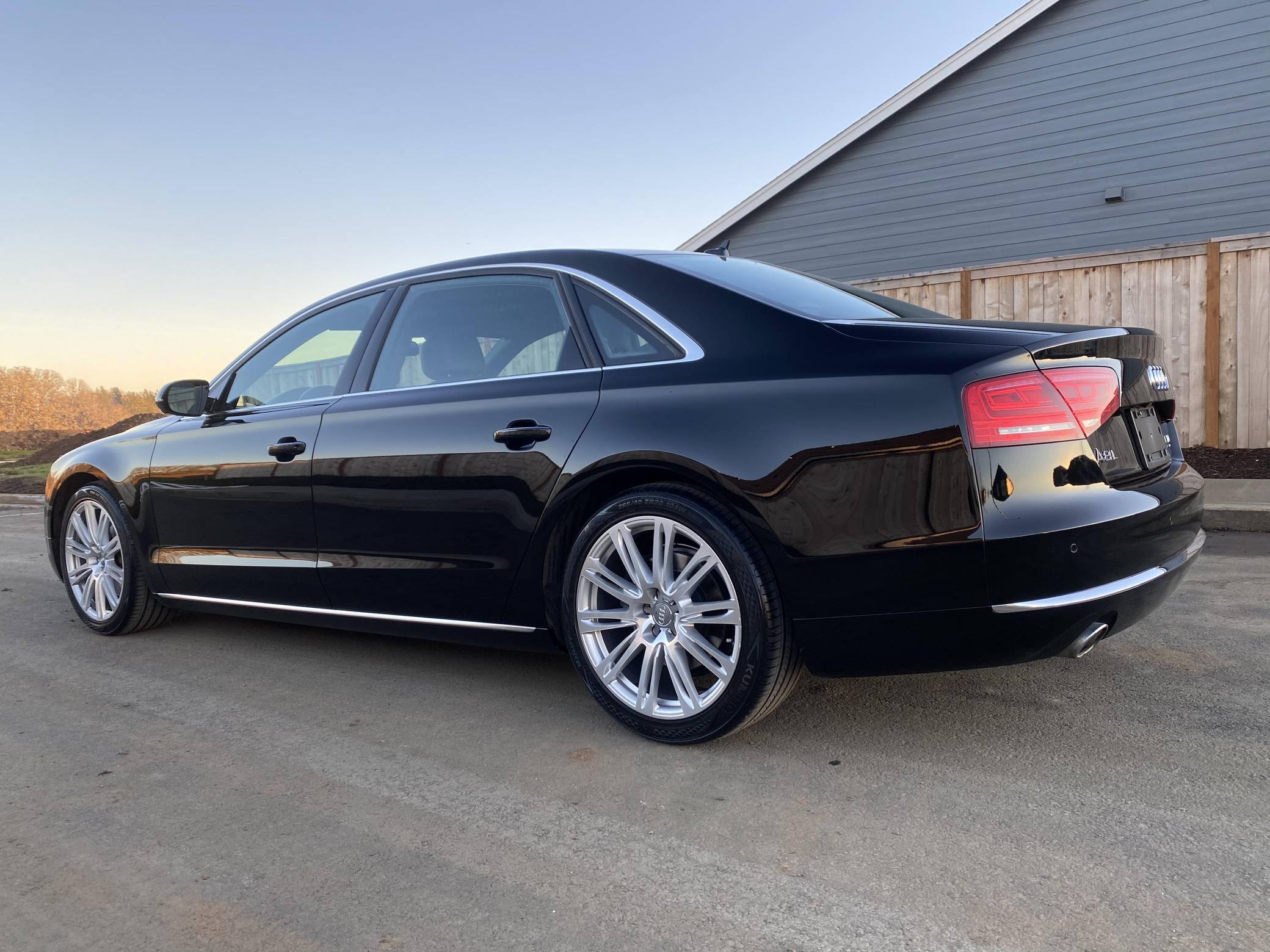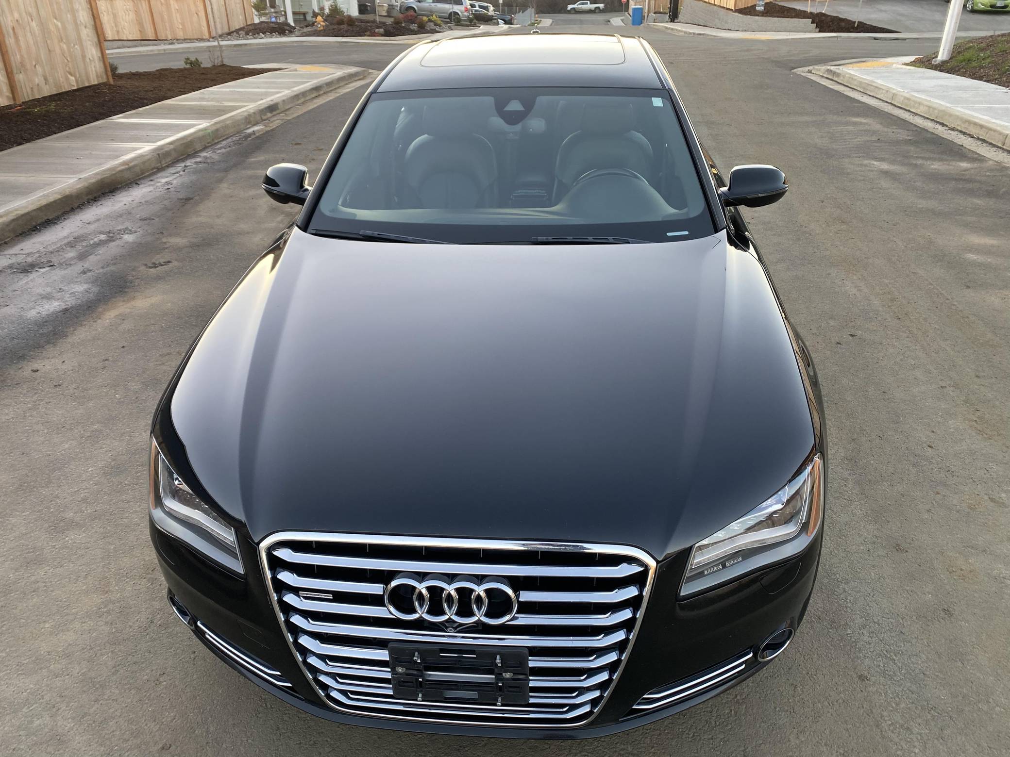 2014 Audi A8 L TDI, finished in Brilliant Black with a black interior. Factory equipment includes the Premium and Driver Assistance packages as well as 20-inch wheels, dual power-operated sunroofs, leather upholstery, heated rear seats, four-zone automatic climate control, and more as listed below. No modifications have been reported by the seller. The “D4” Audi A8 was produced from 2009 to 2017 as the German carmaker’s flagship sedan. It was offered with V6, V8, and W12 engines in North America, while the L model featured a 5. 1-inch longer wheelbase than the standard A8. Fitted with the 3. 0-liter TDI V6, the A8 L TDI is capable of 0-60 mph in 6. 4 seconds while returning a combined 28 mpg. In addition, the A8 L TDI can offer more than 800 miles of range on a full tank. Power comes from a 3. 0-liter turbodiesel “TDI” V6, rated at 240 horsepower and 406 lb-ft of torque. Output is sent to all four wheels via an 8-speed automatic transmission and Audi’s permanent “Quattro” all-wheel drive.