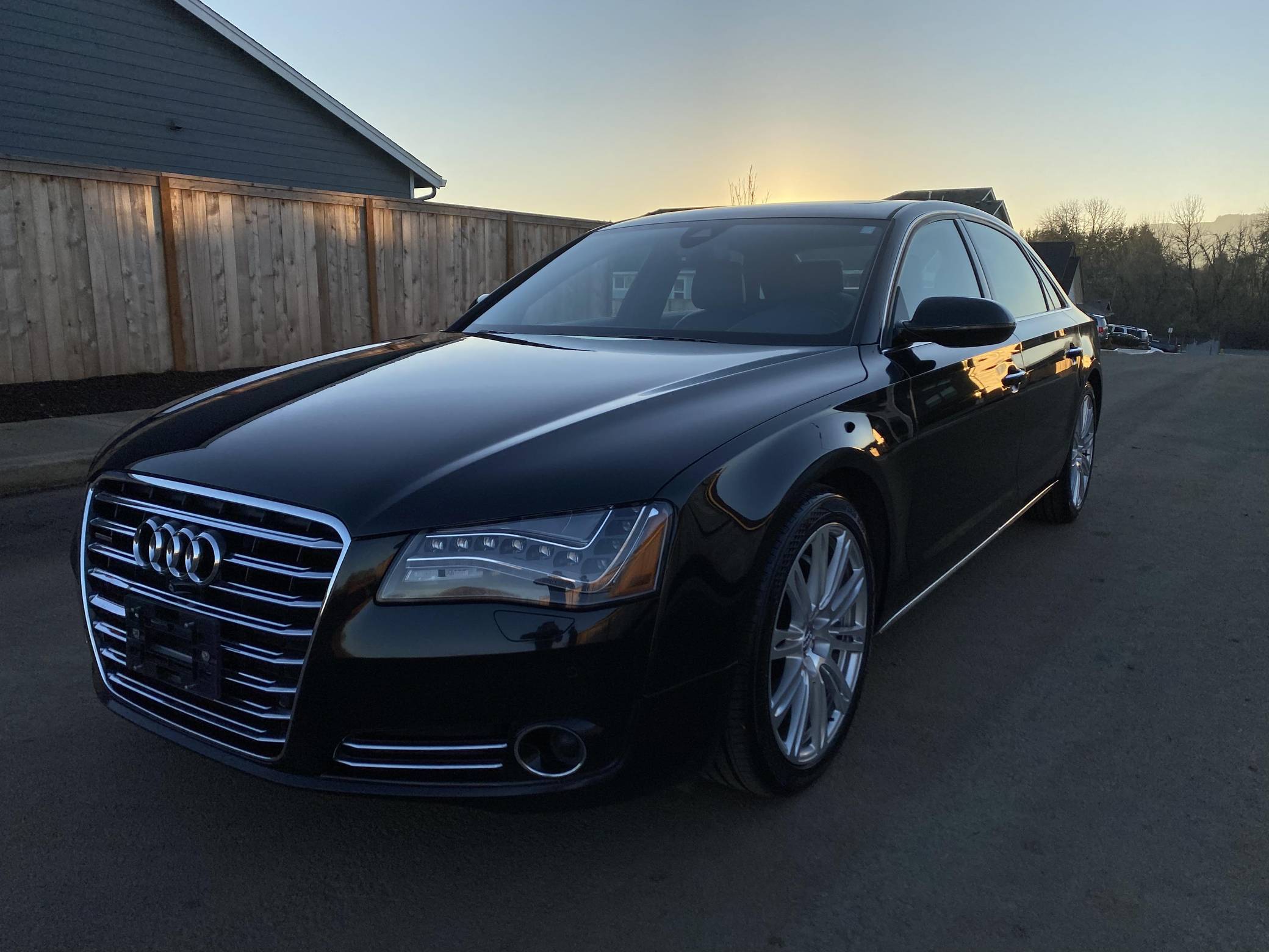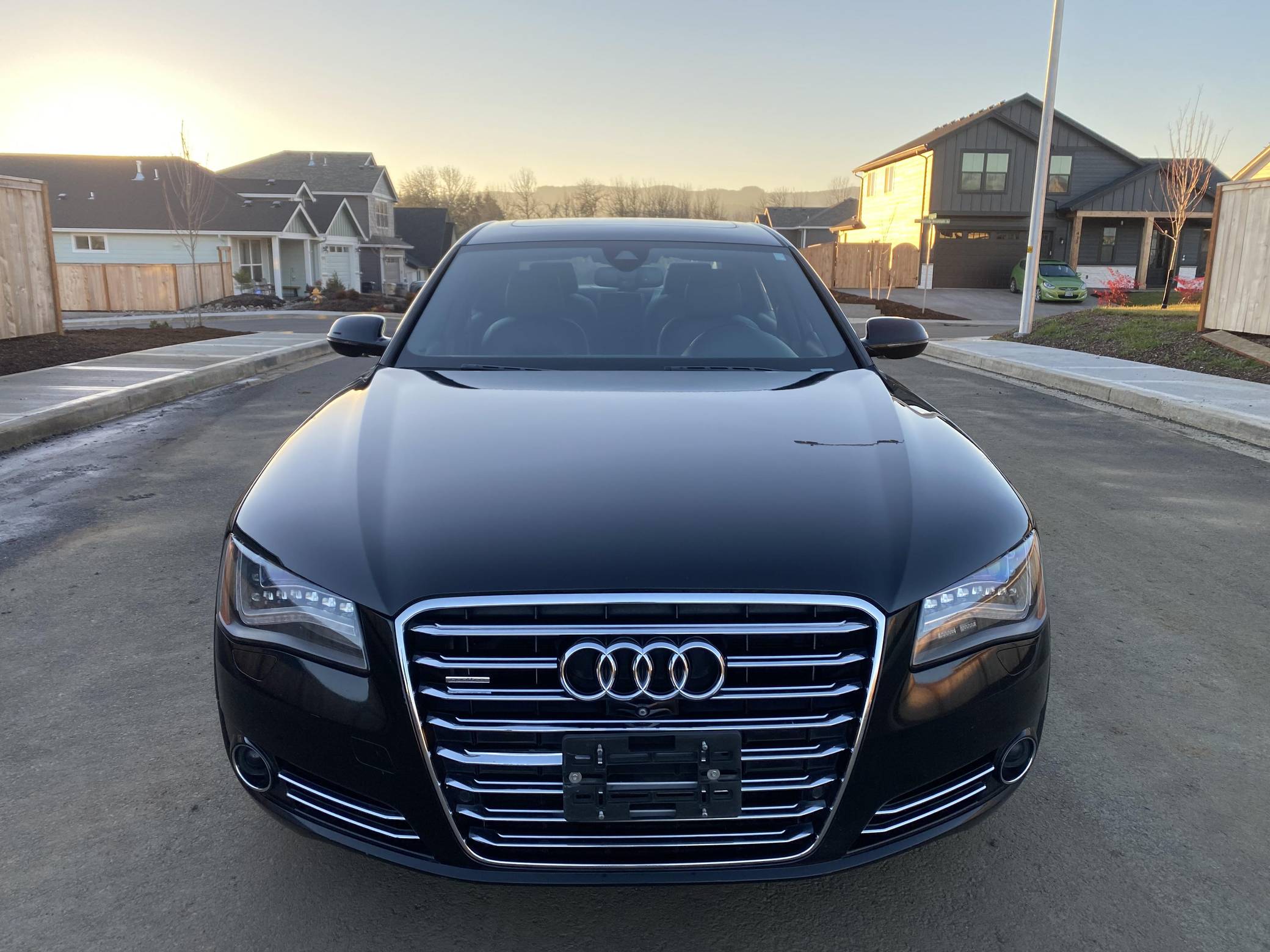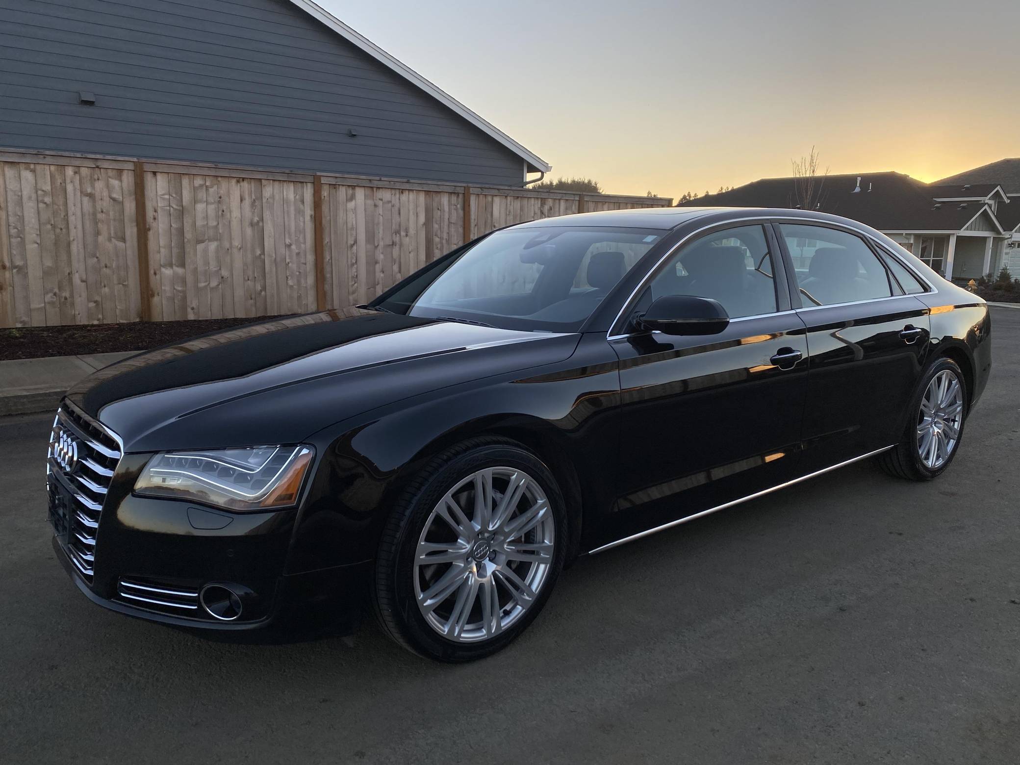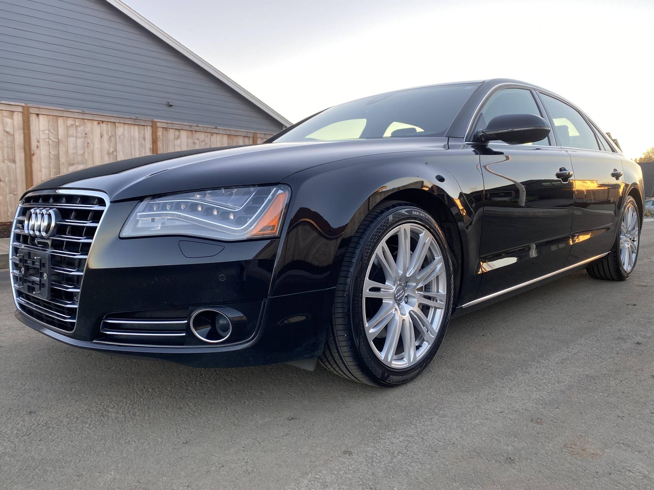 2014 Audi A8 L TDI, finished in Brilliant Black with a black interior. Factory equipment includes the Premium and Driver Assistance packages as well as 20-inch wheels, dual power-operated sunroofs, leather upholstery, heated rear seats, four-zone automatic climate control, and more as listed below. No modifications have been reported by the seller. The “D4” Audi A8 was produced from 2009 to 2017 as the German carmaker’s flagship sedan. It was offered with V6, V8, and W12 engines in North America, while the L model featured a 5. 1-inch longer wheelbase than the standard A8. Fitted with the 3. 0-liter TDI V6, the A8 L TDI is capable of 0-60 mph in 6. 4 seconds while returning a combined 28 mpg. In addition, the A8 L TDI can offer more than 800 miles of range on a full tank. Power comes from a 3. 0-liter turbodiesel “TDI” V6, rated at 240 horsepower and 406 lb-ft of torque. Output is sent to all four wheels via an 8-speed automatic transmission and Audi’s permanent “Quattro” all-wheel drive.