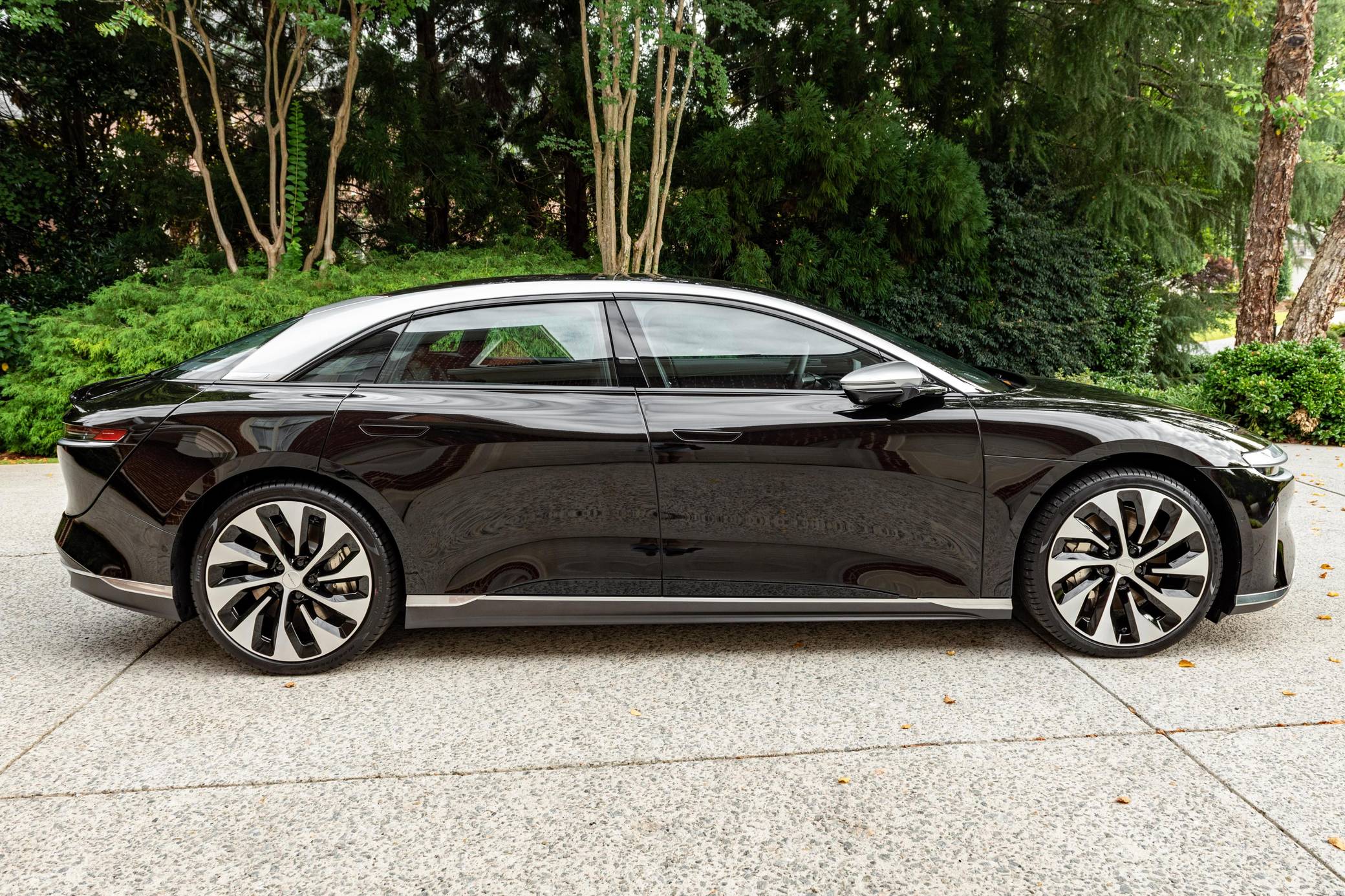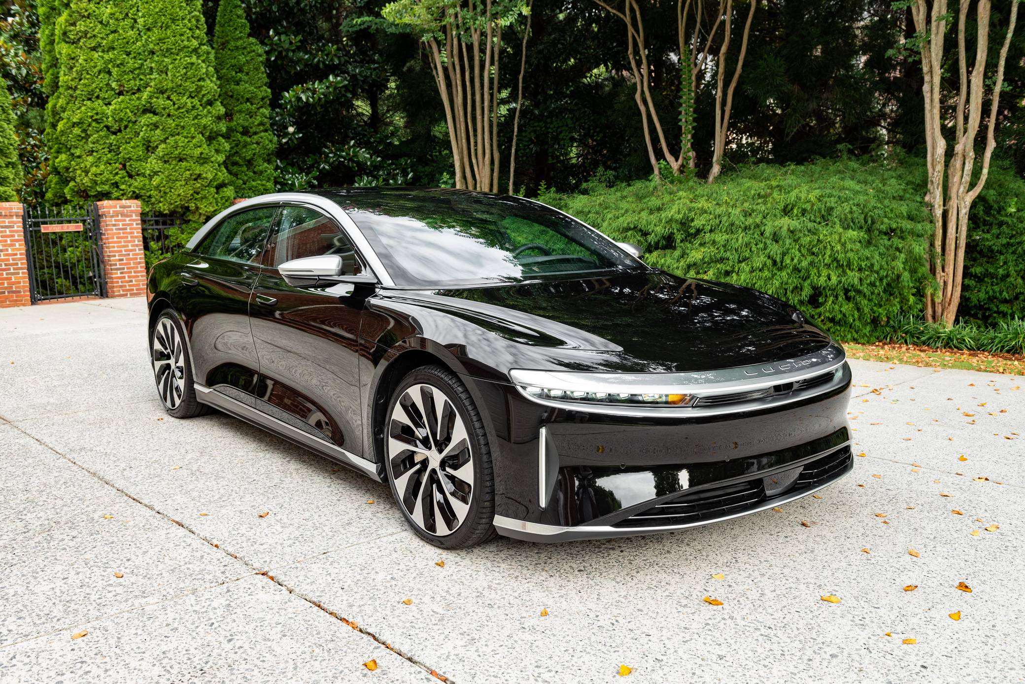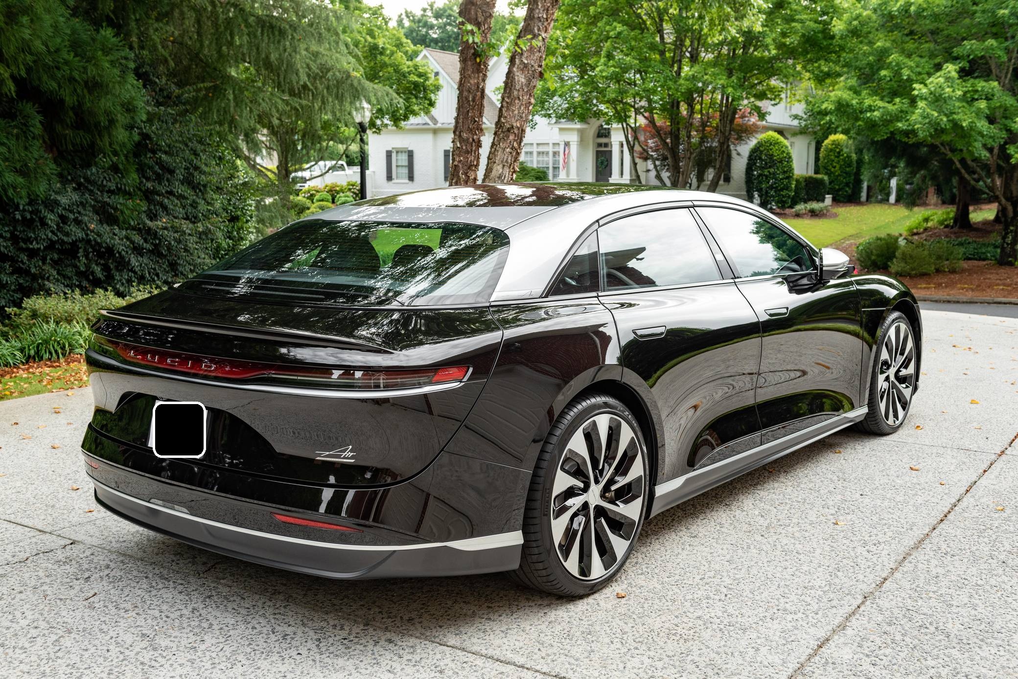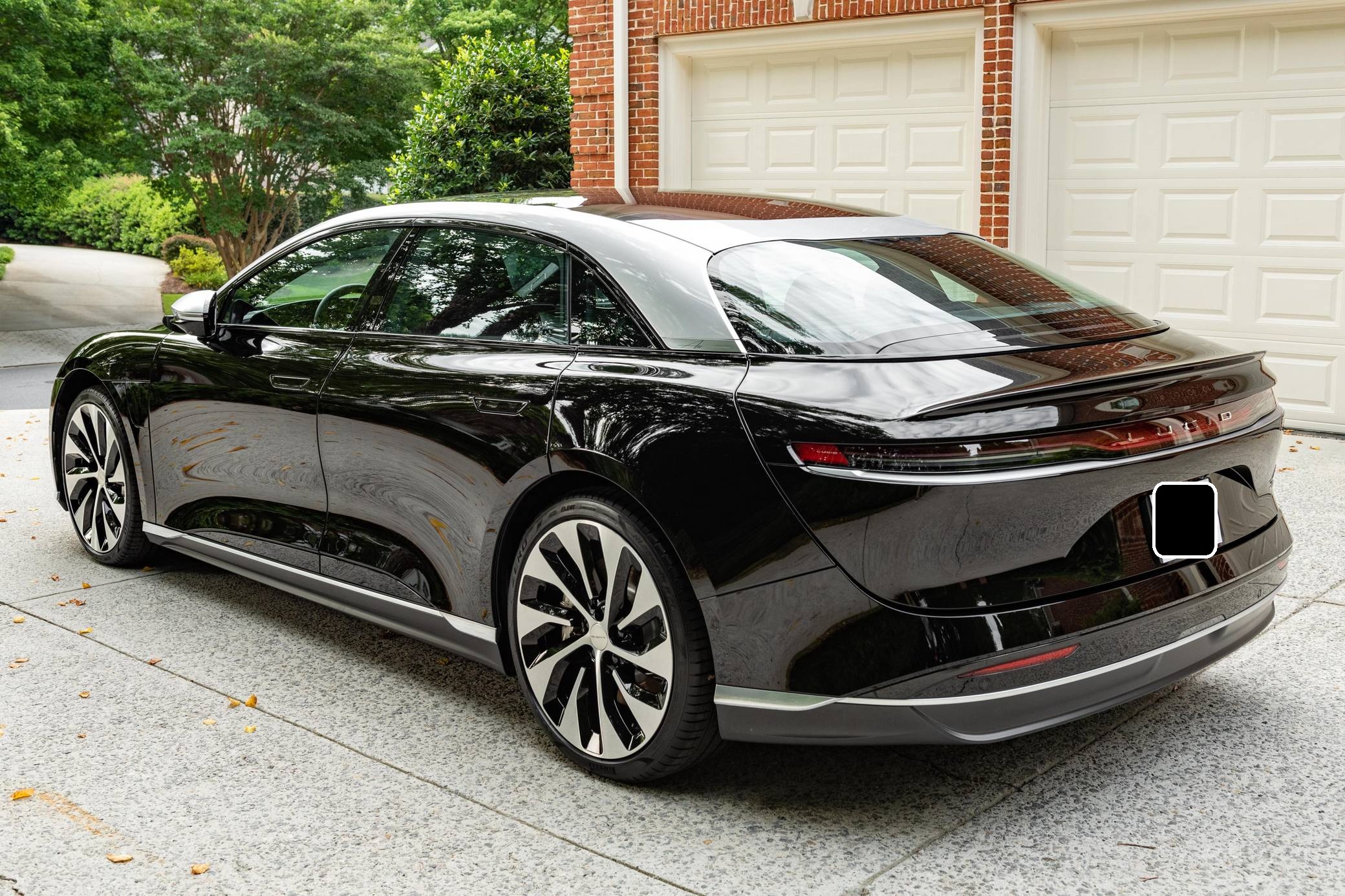 2022 Lucid Air Grand Touring, finished in Infinite Black with a Mojave interior. Factory equipment includes 21-inch "Aero Blade" wheels, LED exterior lighting, soft-close doors, wood interior trim, leather upholstery, heated, ventilated, and power-adjustable front seats with a massage function, a 34-inch "Glass Cockpit" system, and a 21-speaker Surreal sound system. The seller reports no modifications. Built in Arizona, the Air is the first car released by California-based company Lucid Motors. It's a big, electric sedan that was developed with a focus on performance and luxury in a bid to take on the Porsche Taycan and the Tesla Model S, among others. It stands out with a futuristic-looking exterior design, a highly-equipped interior, and a powerful drivetrain. Production started in 2021 and continues in 2022. Power comes from a pair of electric motors, which draw electricity from a lithium-ion battery pack to zap the four wheels with 819 horsepower. The Grand Touring model earned a 469-mile maximum driving range rating when equipped with 21-inch wheels.