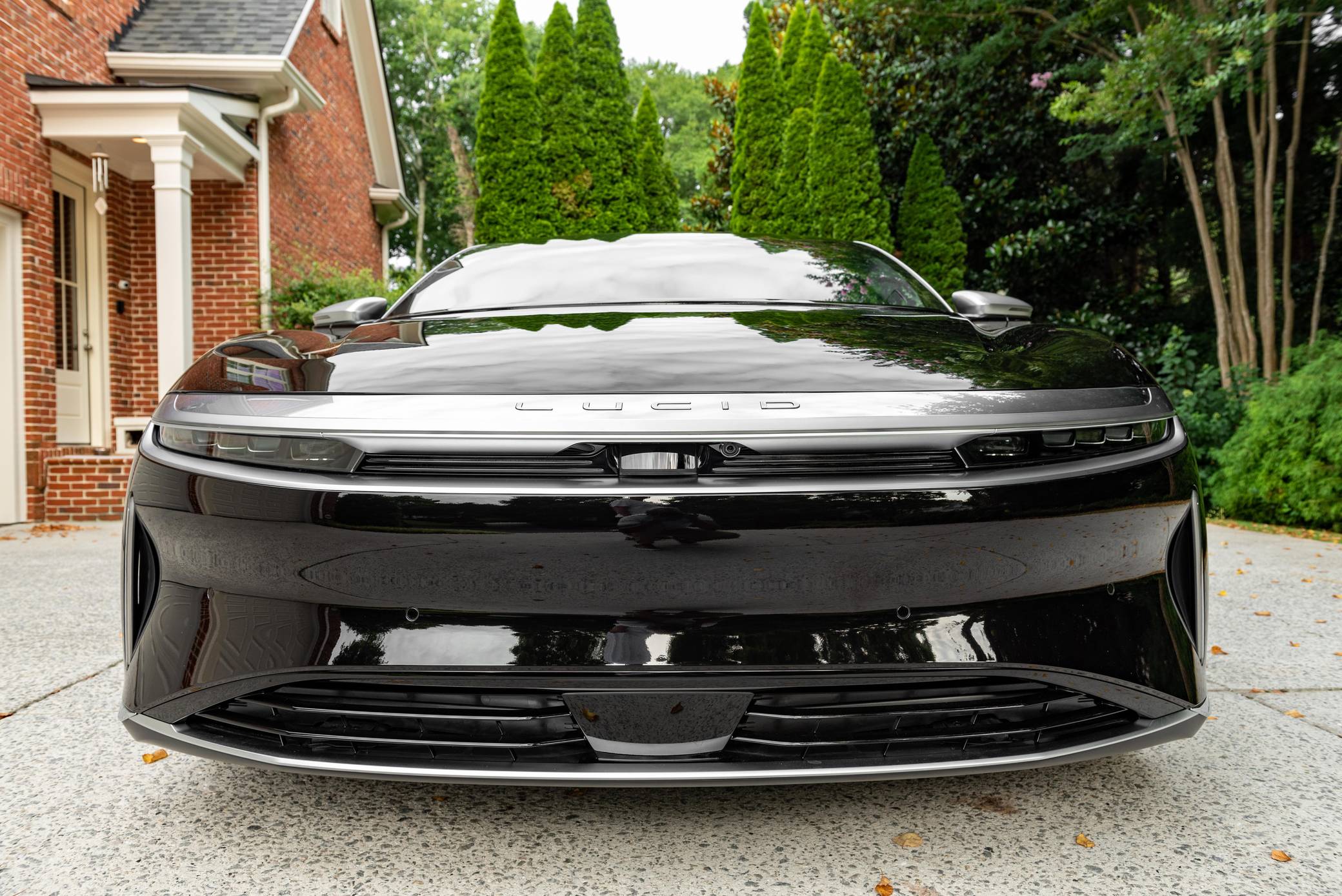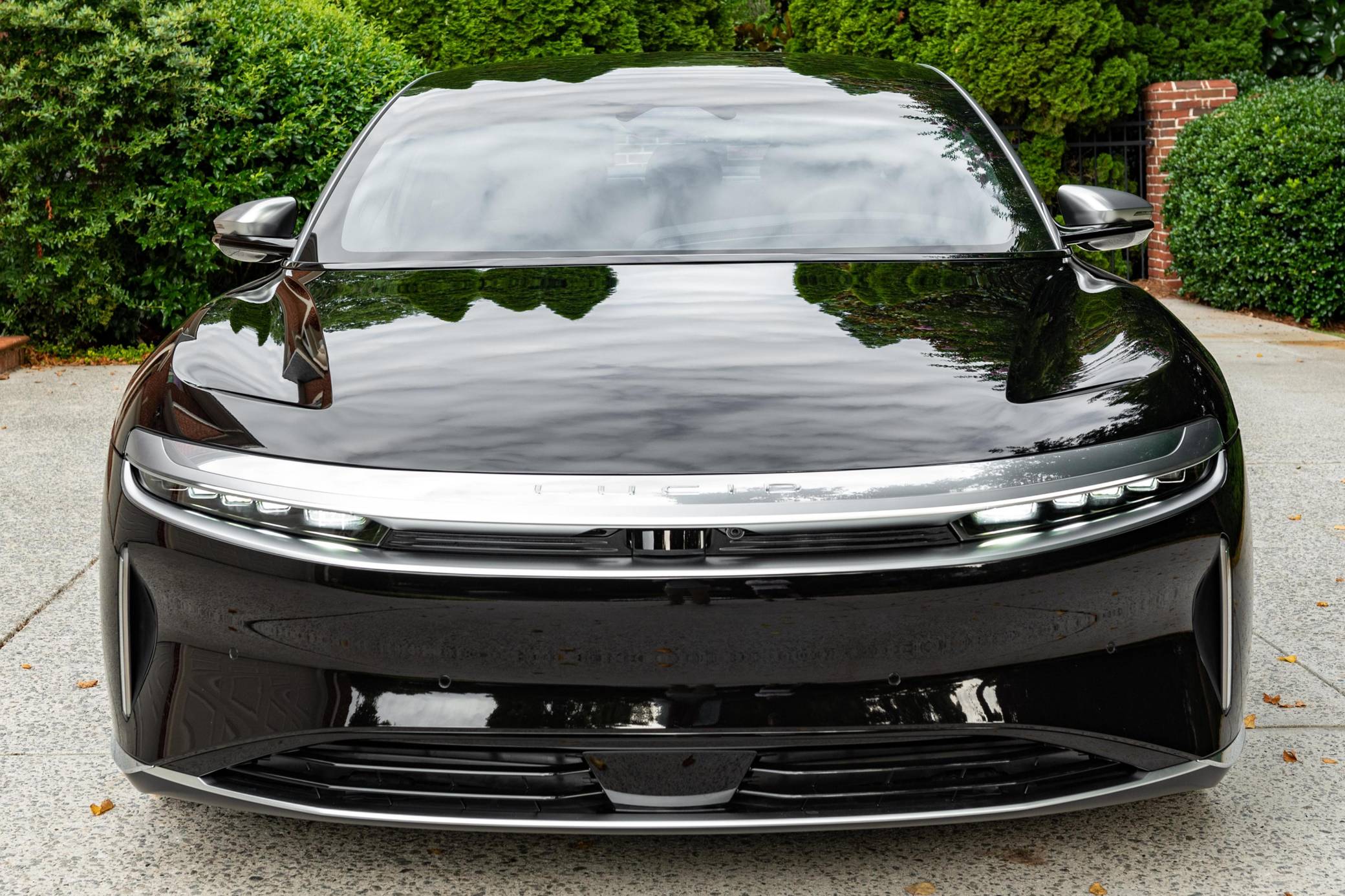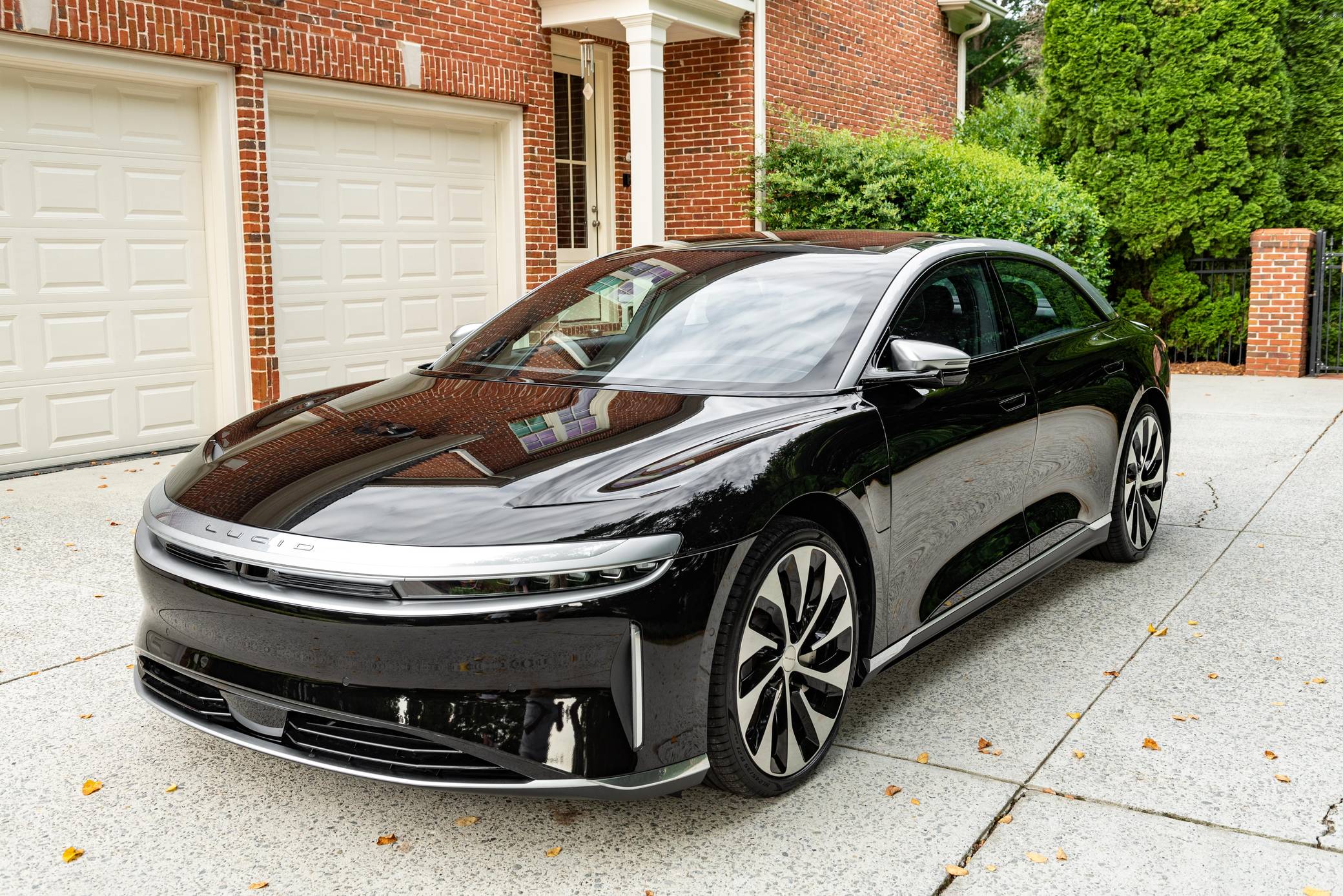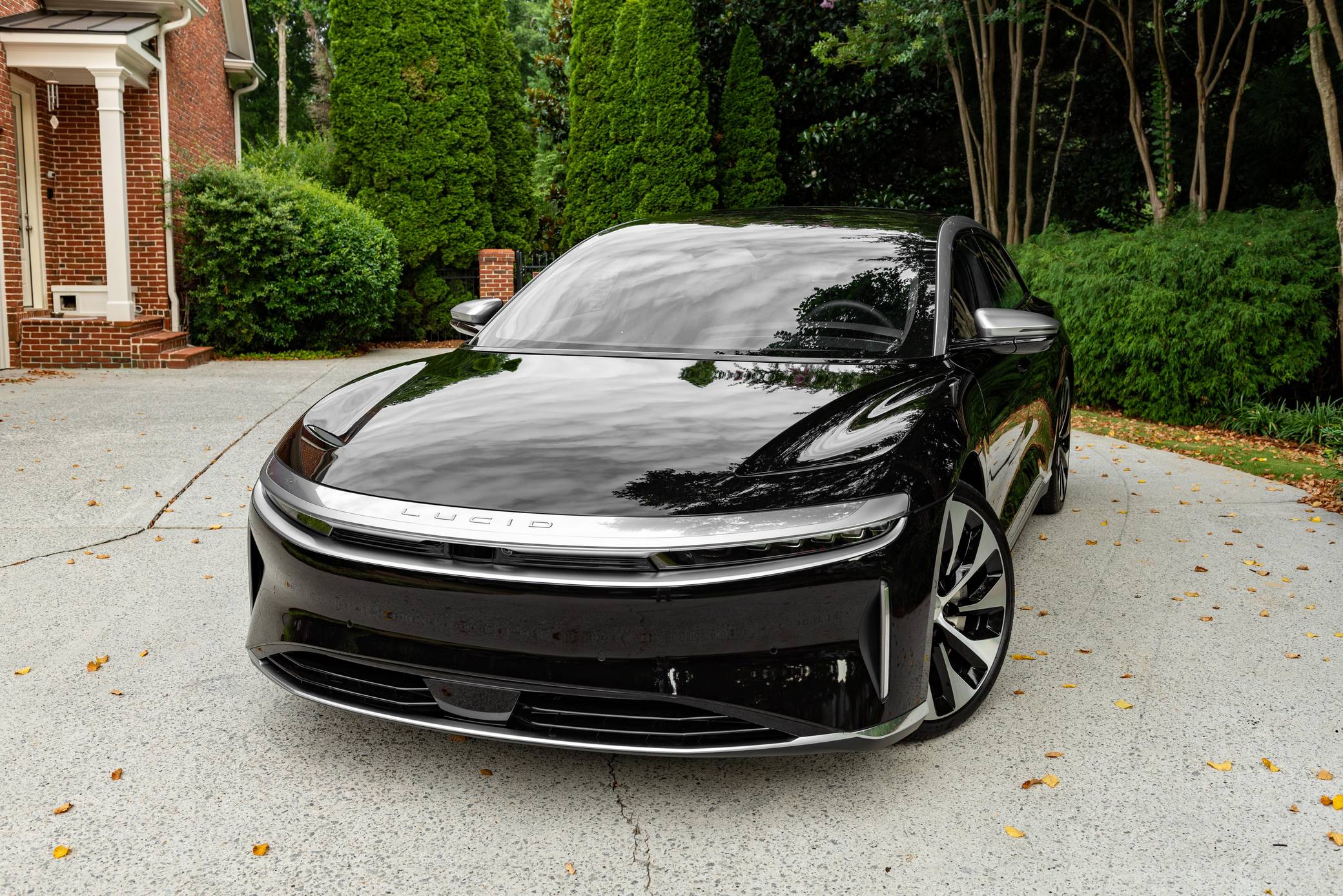 2022 Lucid Air Grand Touring, finished in Infinite Black with a Mojave interior. Factory equipment includes 21-inch "Aero Blade" wheels, LED exterior lighting, soft-close doors, wood interior trim, leather upholstery, heated, ventilated, and power-adjustable front seats with a massage function, a 34-inch "Glass Cockpit" system, and a 21-speaker Surreal sound system. The seller reports no modifications. Built in Arizona, the Air is the first car released by California-based company Lucid Motors. It's a big, electric sedan that was developed with a focus on performance and luxury in a bid to take on the Porsche Taycan and the Tesla Model S, among others. It stands out with a futuristic-looking exterior design, a highly-equipped interior, and a powerful drivetrain. Production started in 2021 and continues in 2022. Power comes from a pair of electric motors, which draw electricity from a lithium-ion battery pack to zap the four wheels with 819 horsepower. The Grand Touring model earned a 469-mile maximum driving range rating when equipped with 21-inch wheels.