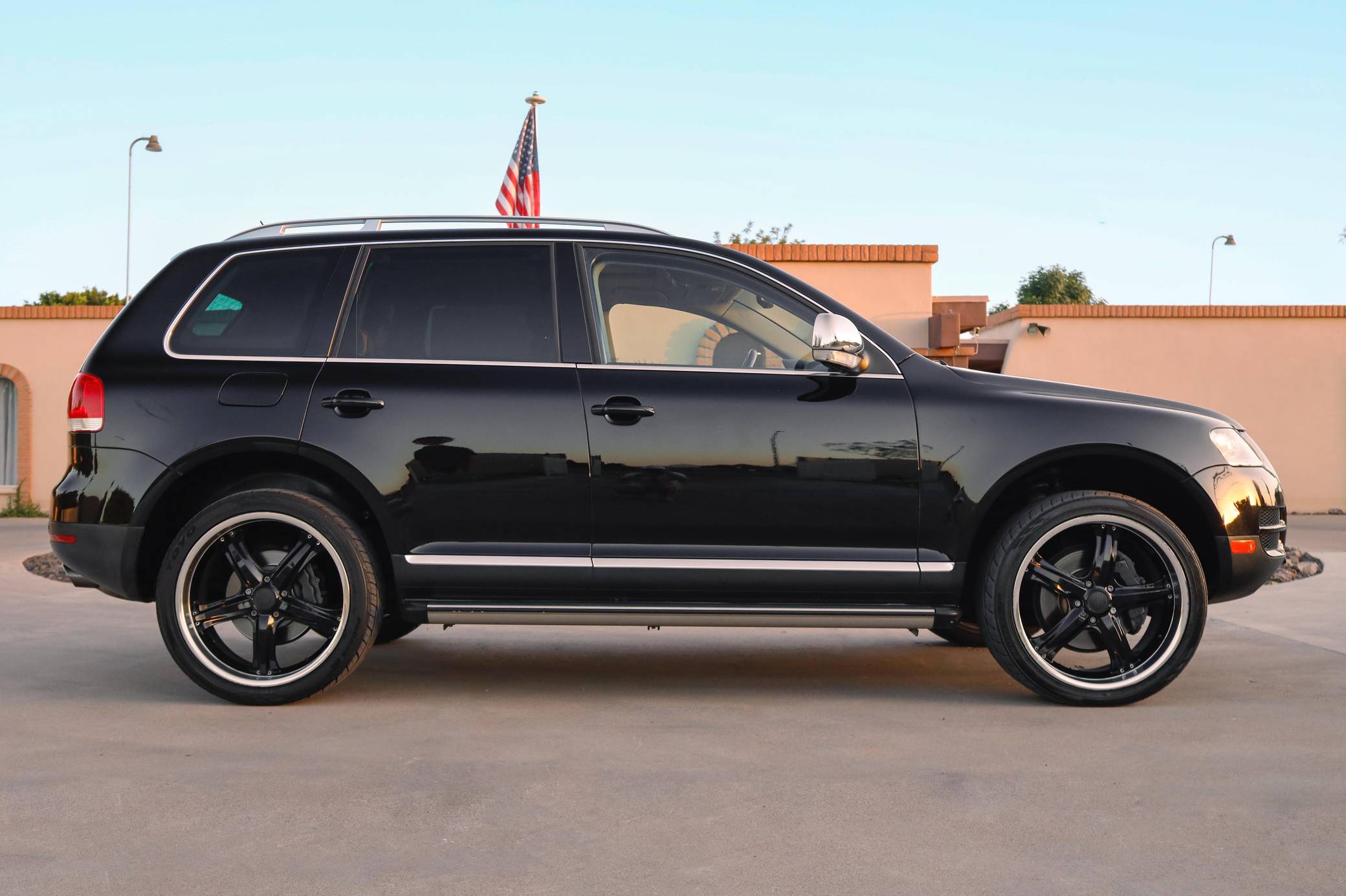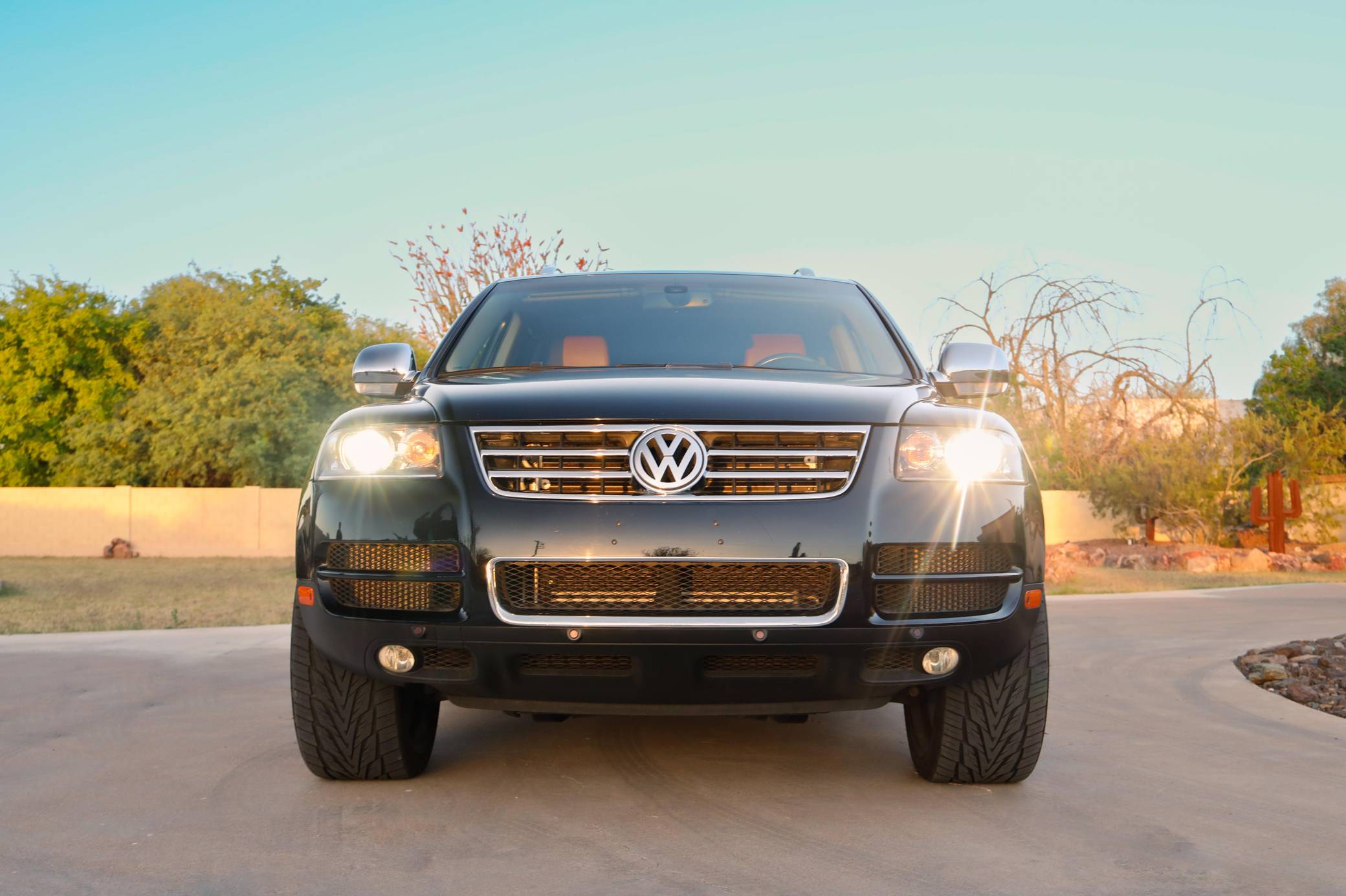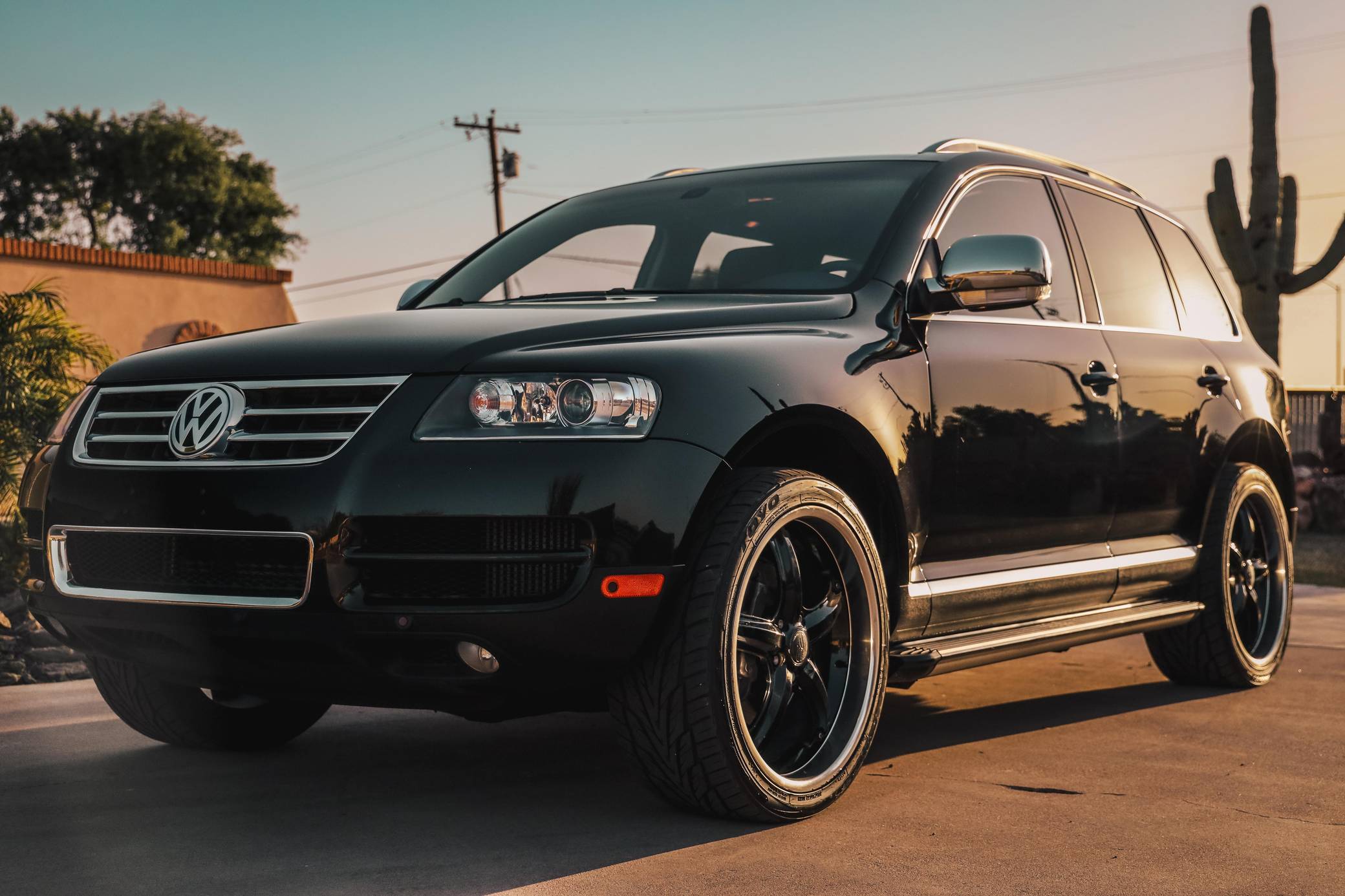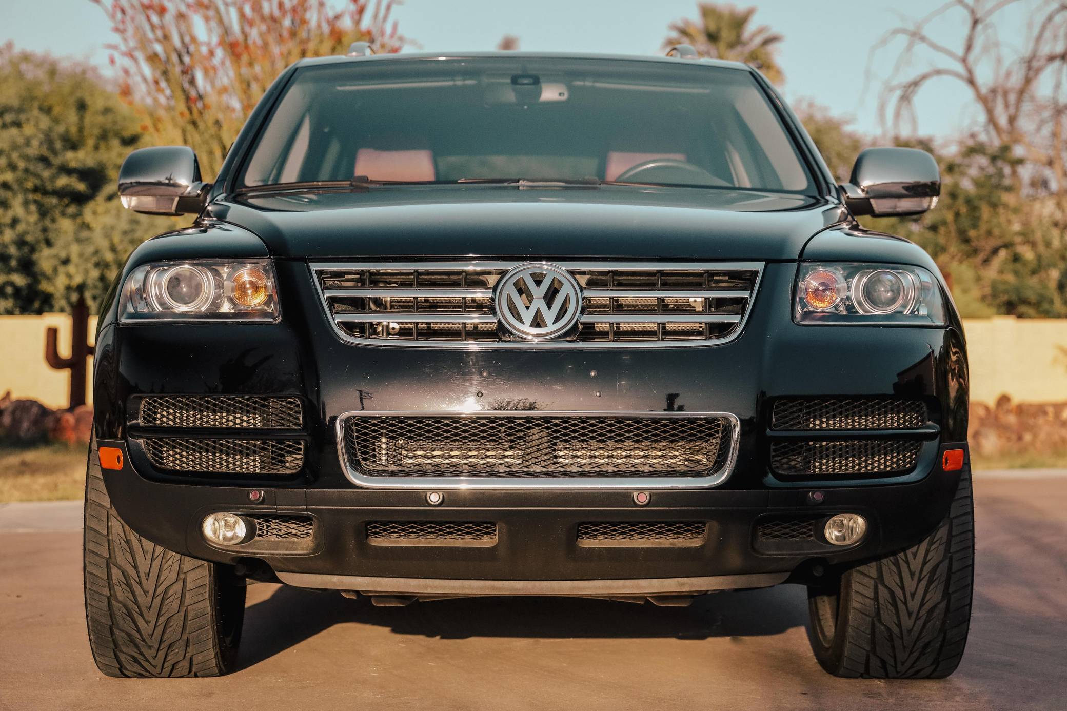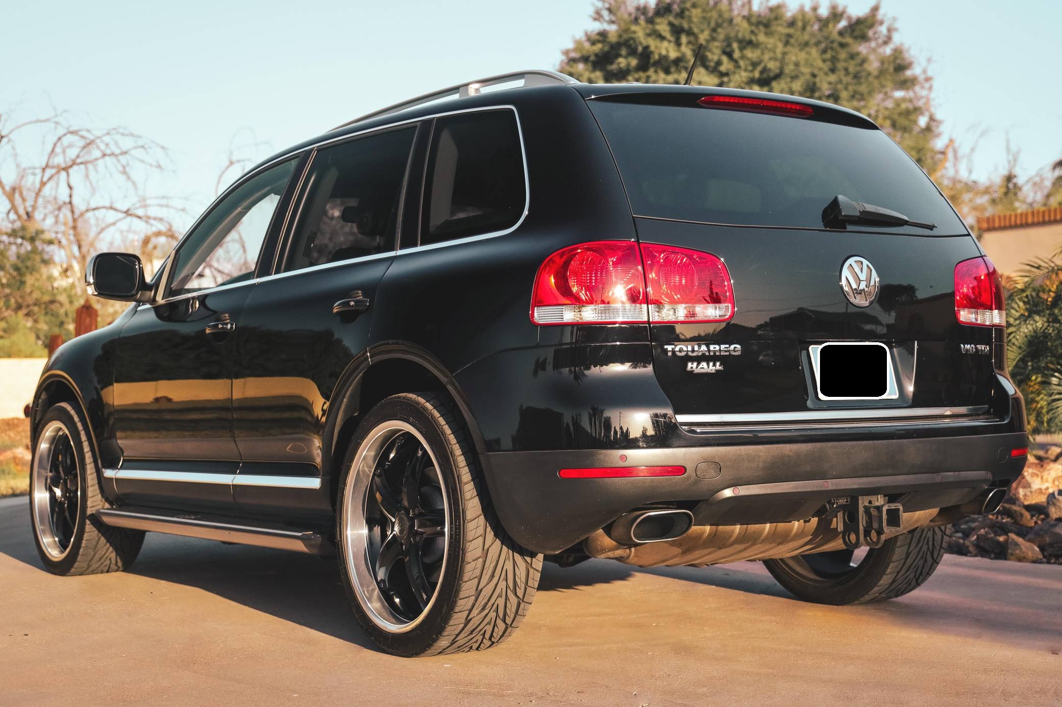 THIS… is a 2007 Volkswagen Touareg V10 TDI, finished in black with a Sioux interior. A build sheet is provided in the photo gallery, and a partial list of notable equipment includes Volkswagen's 4XMotion permanent all-wheel-drive system with low range gear, locking center and rear differentials, 4-corner air suspension with electronic shock absorption control, a power-operated sunroof, walnut wood interior trim, leather upholstery, heated front and rear seats, 4-zone automatic climate control, and a navigation system. Modifications reported by the seller are limited to 22-inch CEC wheels and aftermarket side steps. Volkswagen introduced the Touareg, its first modern SUV, for the 2004 model year. Part of the brand's upmarket push, it was related to the original Porsche Cayenne, and it was marketed as a true off-roader packed with luxury features. Many compared it to the Range Rover, as it could cross rivers, tow a boat, or cruise on the highway for hours on end. The V10 TDI-powered model was positioned at the top of the Touareg range in the United States, where the mighty W12 engine was never available on the Touareg. Power comes from a 5. 0-liter turbodiesel V10, rated at 310 horsepower and 553 lb-ft of torque. Output is sent to all four wheels via a 6-speed automatic transmission, Volkswagen's 4XMotion permanent four-wheel drive system, and locking center and rear differentials.