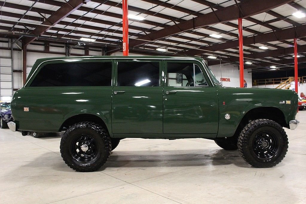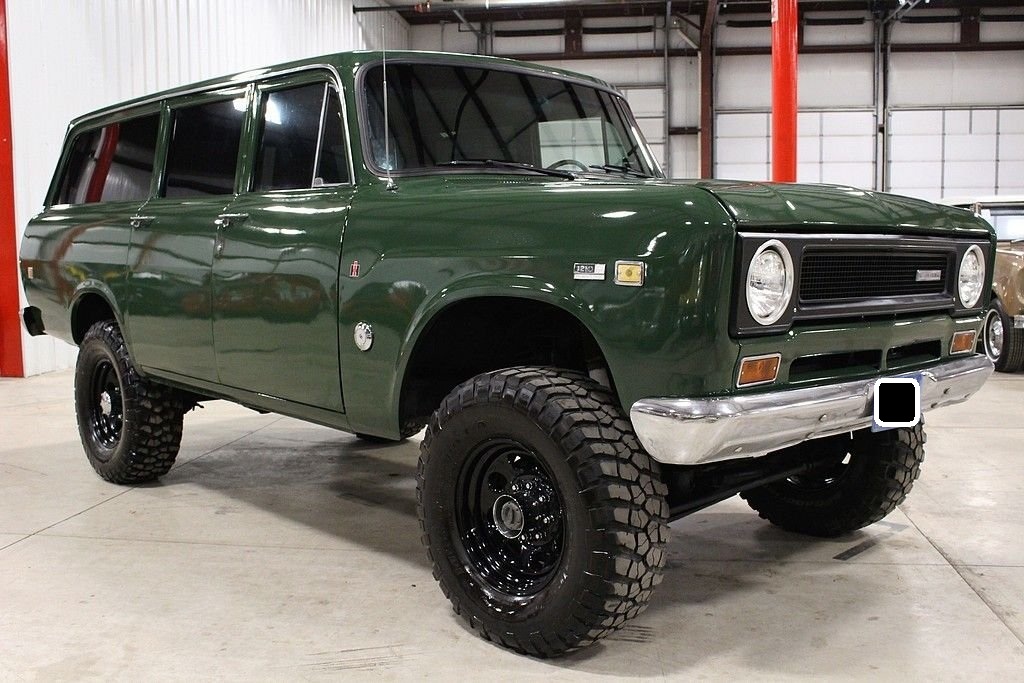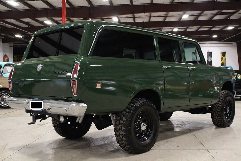 International Harvester introduced a new line of trucks, the R Series in 1953, included in this series was the Travelall. The Travelall was a long wheelbase panel truck equipped with side windows and either two or three rows of passenger seats. Harverster's sport utility vehicle series ran from 1953 to 1975 spanning 4 design generations. The Travelall clearly set the stage for modern full sized SUV's as we know them today. The truck features its original California blue plates, and has been treated to a ground up style restoration on an extremely original vehicle. It is finished in Avocado Green over black / gray interior. The Interior remains in stock configuration and features new custom carpet, new seat upholstery as well as refinished painted surfaces. It is powered by its optional 345 cubic inch V8 engine. It is optioned with 4 speed, 4X4, Power Steering, Power Brakes, Tow Package, original fold down and tumble rear seat, and features upgraded DUI distributor, full length headers, dual flowmaster exhaust, lift kit with dual shock set up, Dana front and rear, Rockcrawler Rims with meaty BF Goodrich 35x12.50x17 KM2 mud terrains, upgraded JVC CD player, mini tach and privacy tint all around. This is a rare truck that turns heads all day. Cruise the beach, crawl the mountains or go for ice cream. This truck is mechanically sorted and will do it all.