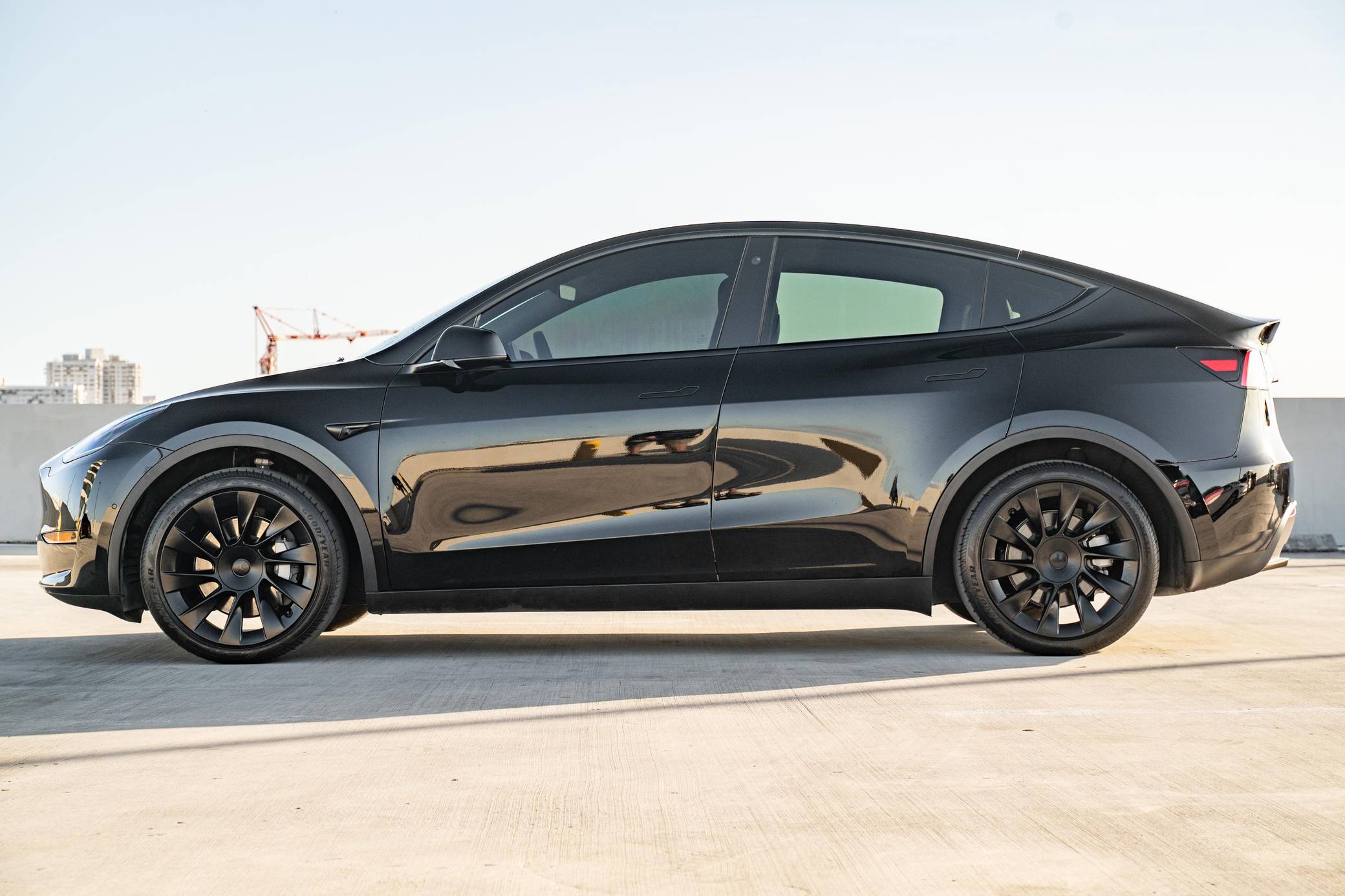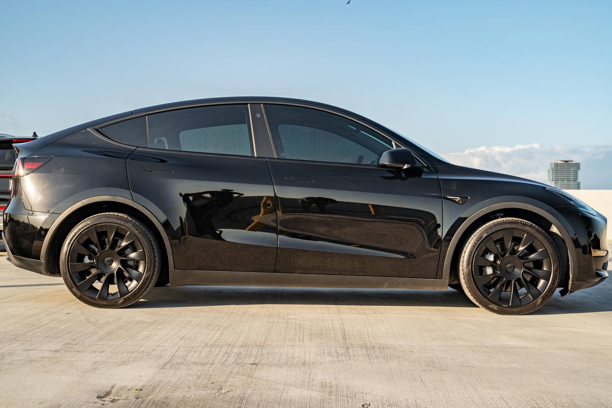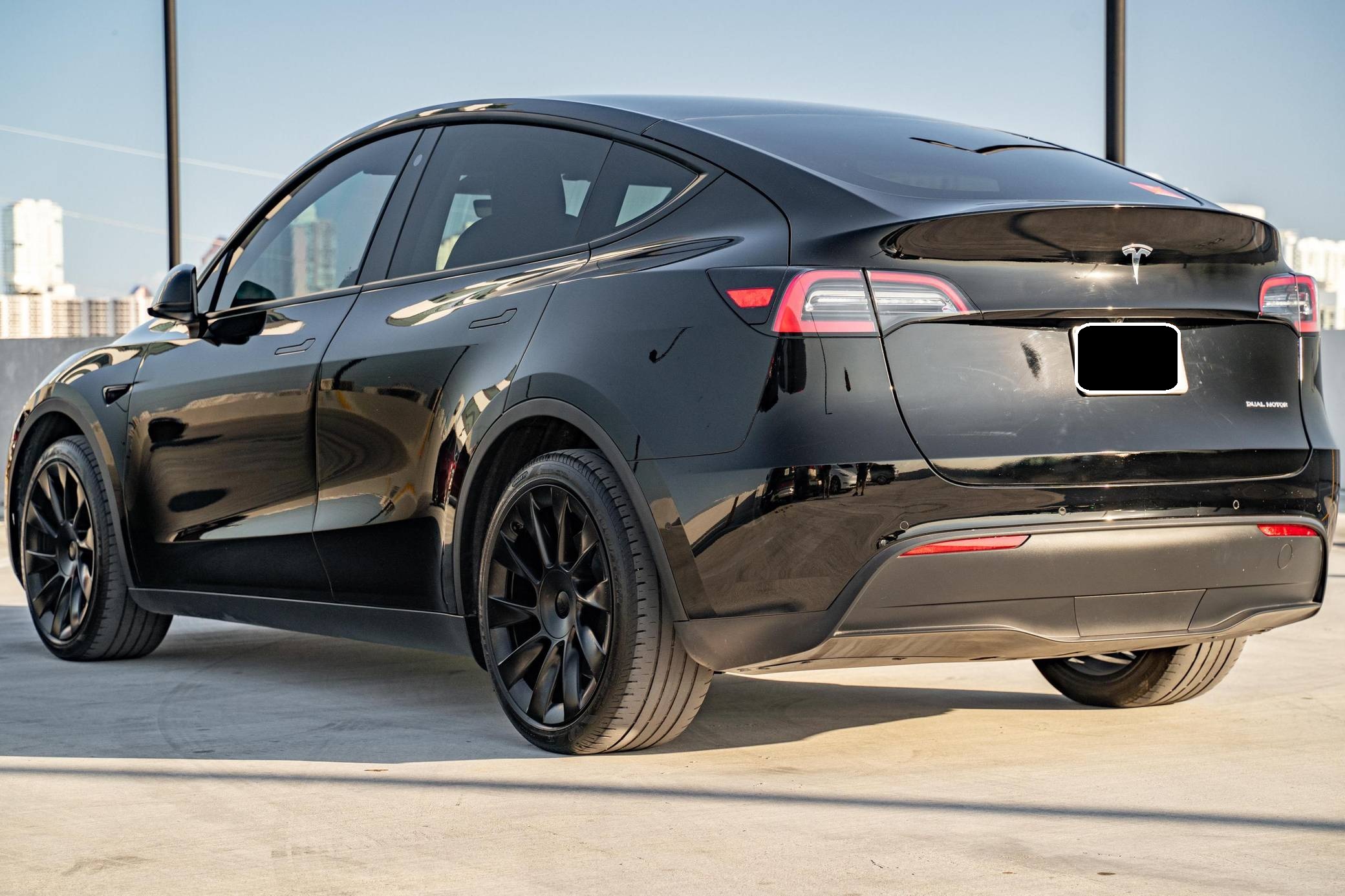 THIS. . . is a 2021 Tesla Model Y Long Range AWD, finished in Solid Black with a black interior. Factory equipment includes 20-inch "Induction" wheels, the tow package, a panoramic glass roof, a black premium interior, 5-seat configuration, LED lights, power-adjustable front seats, a 15-inch touchscreen infotainment system, Full Self-Driving Capability (subscription required), Autopilot technology, and an onboard navigation system. The seller reports no modifications. Introduced in 2020, the Model Y was Tesla's second SUV offering. Although it's the smaller sibling of the Model X SUV, it's actually based on the Model 3 sedan platform and features a similar drivetrain and equipment. At launch, the Model Y was celebrated as a premium EV with a usable range and respectable performance, all at a reasonably attainable price. Power for this Model Y comes from dual electric motors, which produce 384 horsepower and 375 lb-ft of torque. Connected to a 75-kWh lithium-ion battery pack, power is sent to all four wheels.