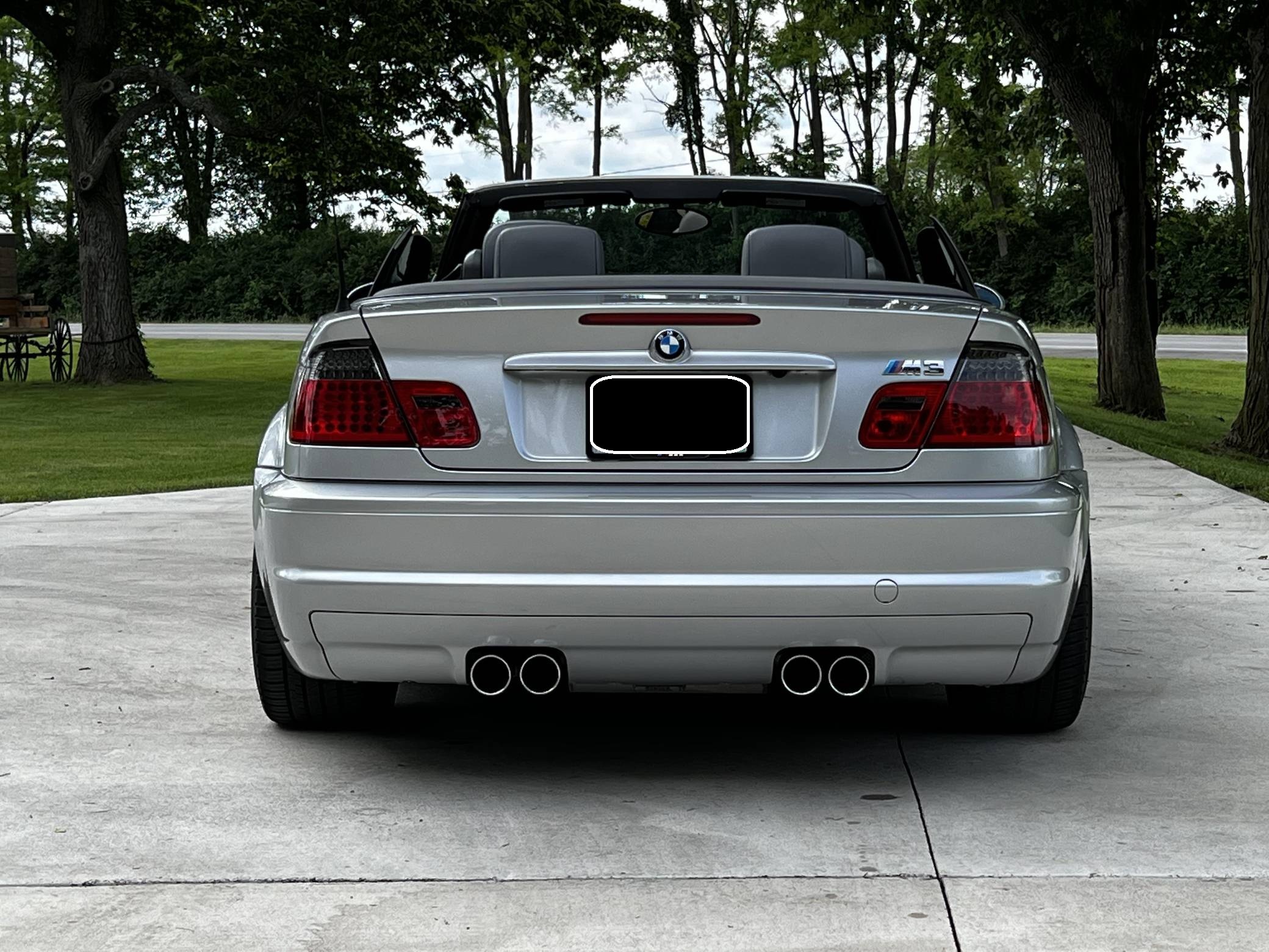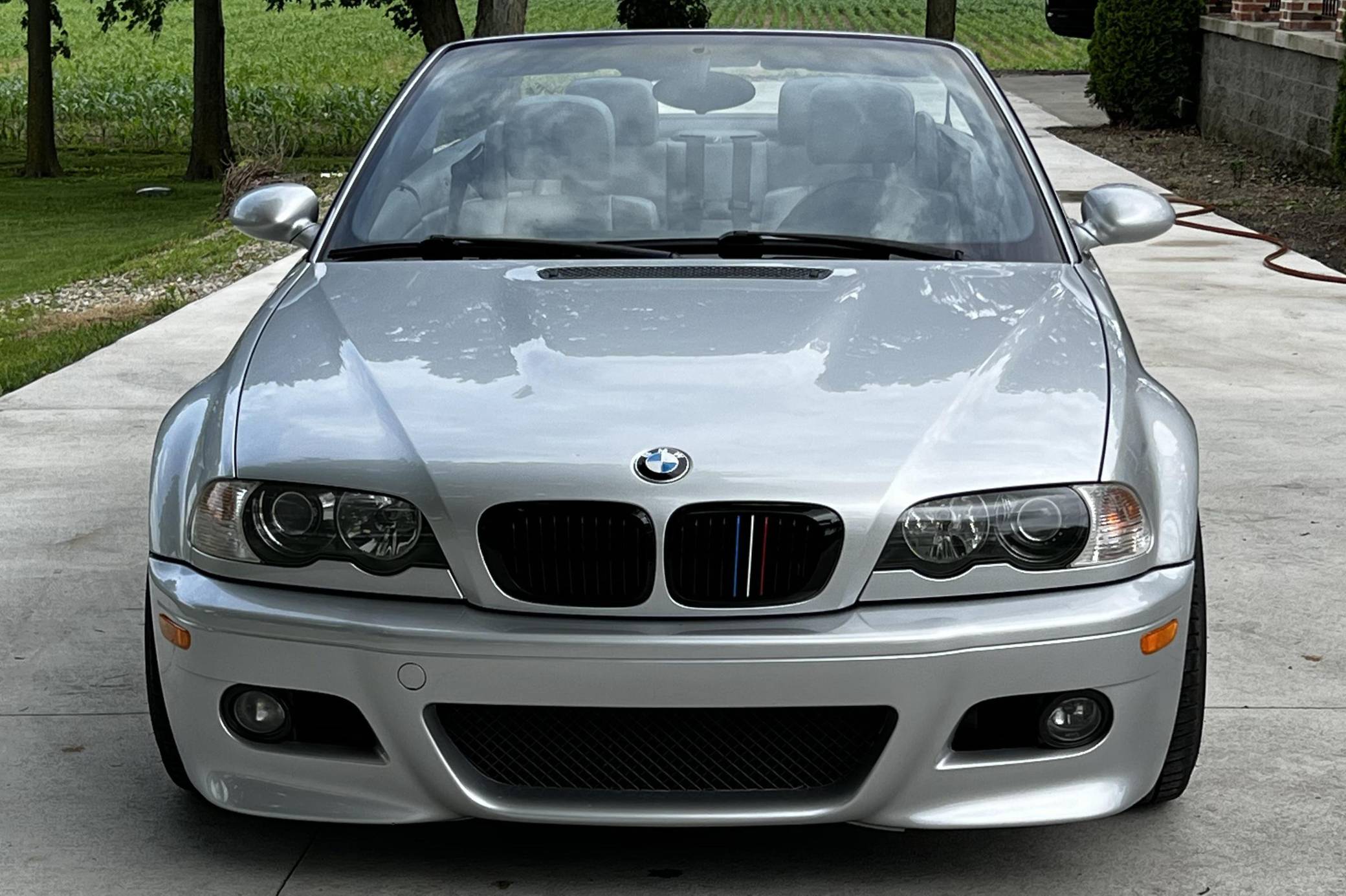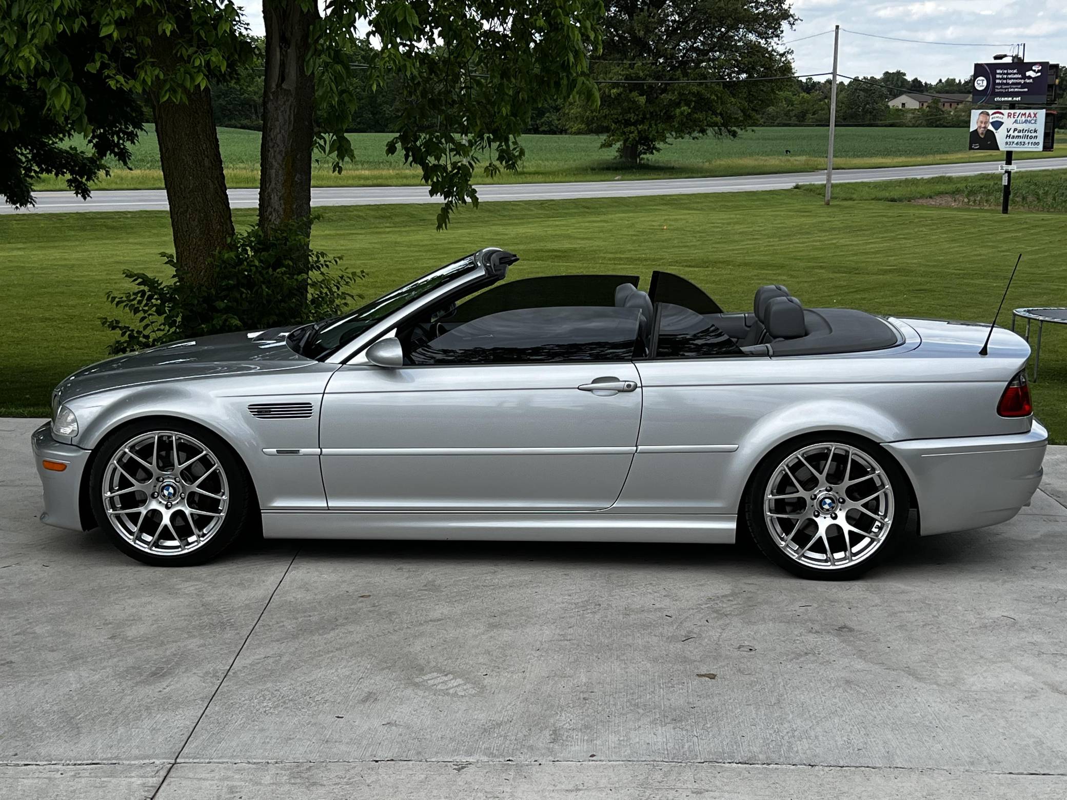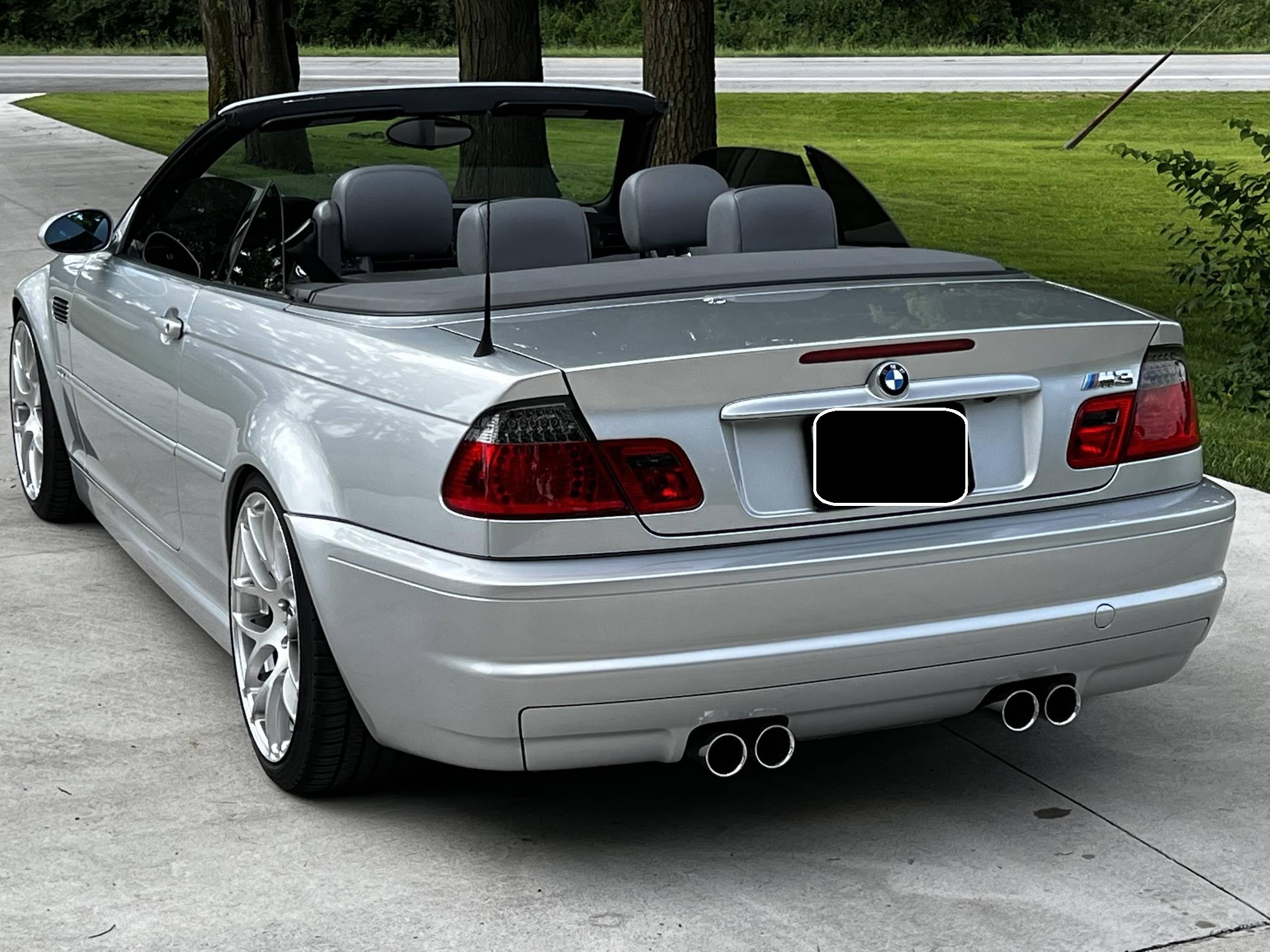 2001 BMW M3 Convertible, finished in Titanium Silver Metallic with a black soft top and a gray interior. This M3 is equipped with the desirable 6-speed manual transmission. Factory equipment includes Dynamic Stability Control (DSC), xenon headlights, fog lights, Nappa leather upholstery, power-adjustable front sport seats, and a Harman/Kardon audio system, among others listed below. Modifications reported by the seller include 19-inch VMR wheels, an aftermarket ECU tune, KW V2 coilovers, Racing Dynamics adjustable sway bars, Status Gruppe stainless steel cat-less headers, Status Gruppe SCZA muffler, an aftermarket CPI 200 section, aftermarket kidney grilles and side grilles, window tint, and tinted taillights. The third-generation M3 made its debut for the 2000 model year as the quickest and most powerful evolution of the E46 3 Series. Offered as a coupe and as a convertible, it received a high-revving straight-6 engine, suspension improvements, and a muscular-looking exterior design. Production ended in 2006. Power comes from a 3. 2-liter "S54" straight-6 engine, rated at 333 horsepower and 262 lb-ft of torque. This engine may be making more power as a result of the modifications, though a dyno sheet is not included. It spins the rear wheels via a 6-speed manual transmission.