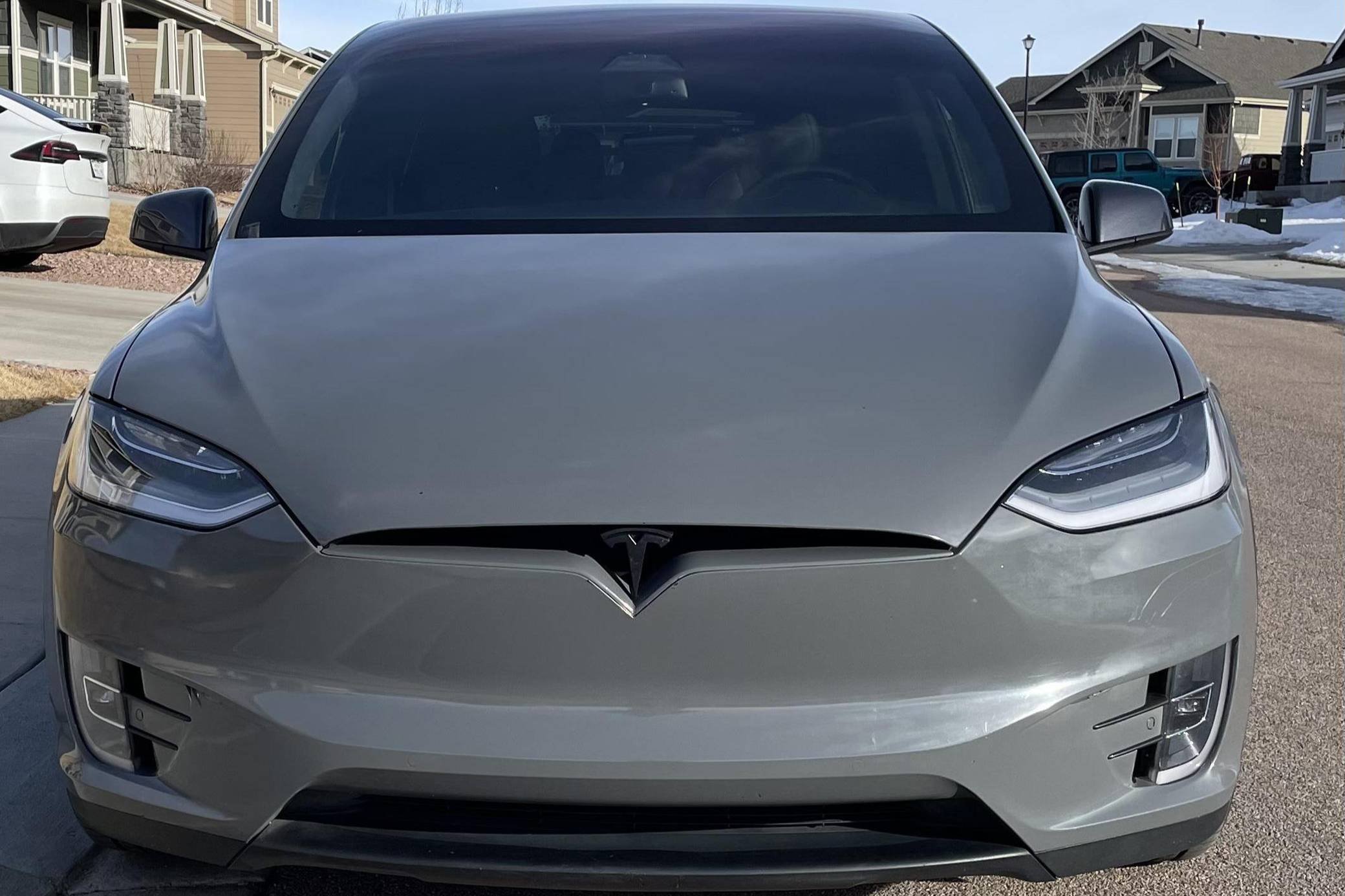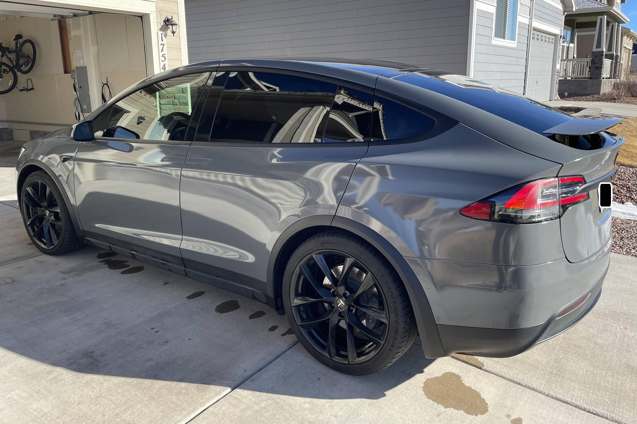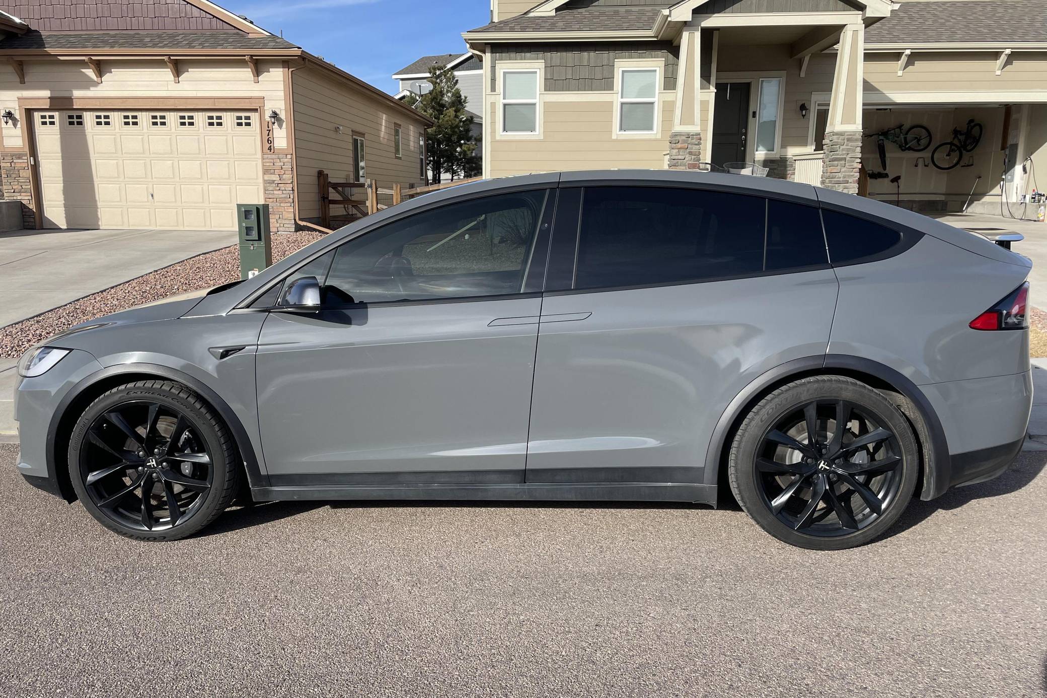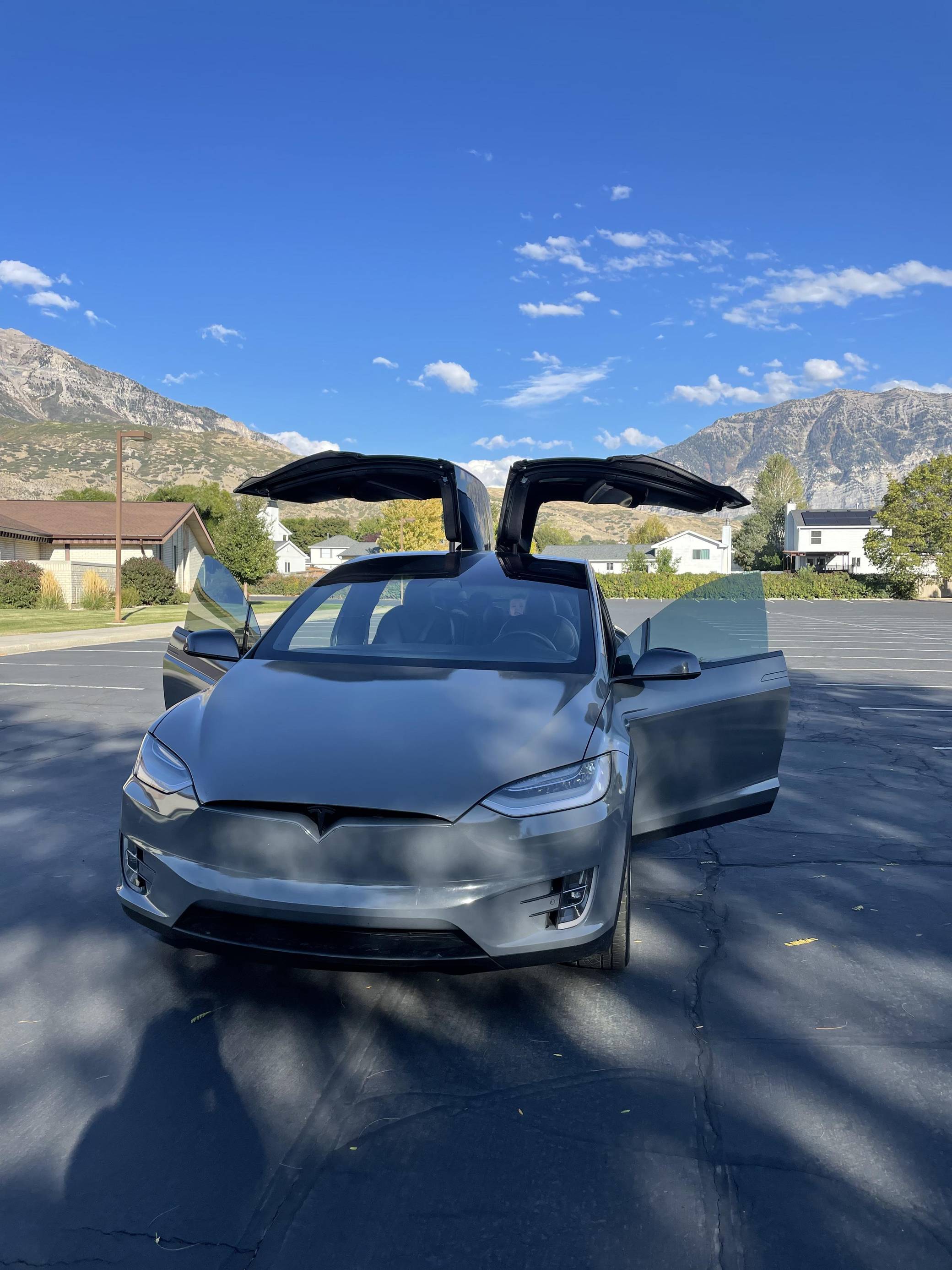 THIS. . . is a 2020 Tesla Model X Long Range Plus, finished in Midnight Silver Metallic with a gray exterior wrap and a black interior. Factory equipment includes a rear spoiler, wood interior trim, heated and power-adjustable front seats, heated second-row seats, heated third-row seats, Enhanced Autopilot technology, and the "Full Self-Driving" computer (subscription required). In addition to the gray exterior wrap, the list of modifications reported by the seller includes tinted windows and 22-inch T Sportline wheels. Tesla introduced the Model X for the 2016 model year as a taller, more spacious alternative to the Model S. It stood out from other crossovers with unusual double-hinged falcon rear doors. It has gone through several powertrain and interior evolutions since its launch, and it's still available today. Power comes from a pair of electric motors, which draw electricity from a 100-kilowatt-hour lithium-ion battery pack to zap the four wheels with approximately 534 horsepower and 556 lb-ft of torque according to third-party estimates. In 2020, the EPA gave the Model X Long Range Plus a maximum driving range rating of 351 miles, though the 22-inch wheels might reduce this figure.