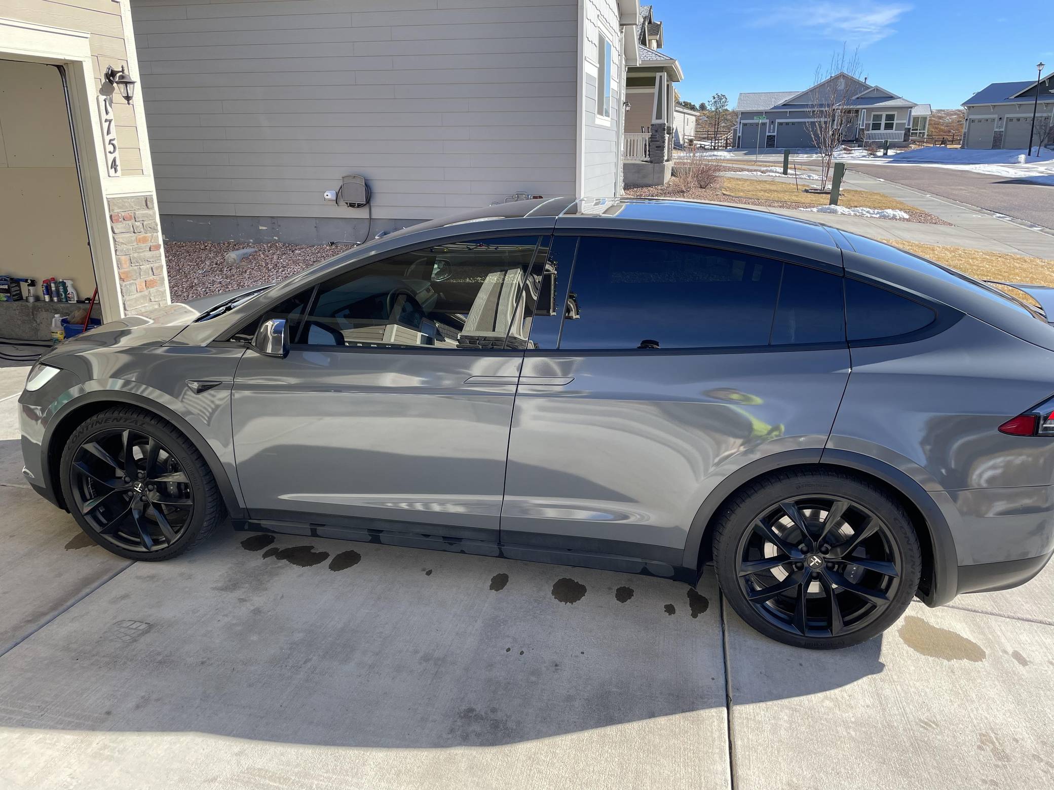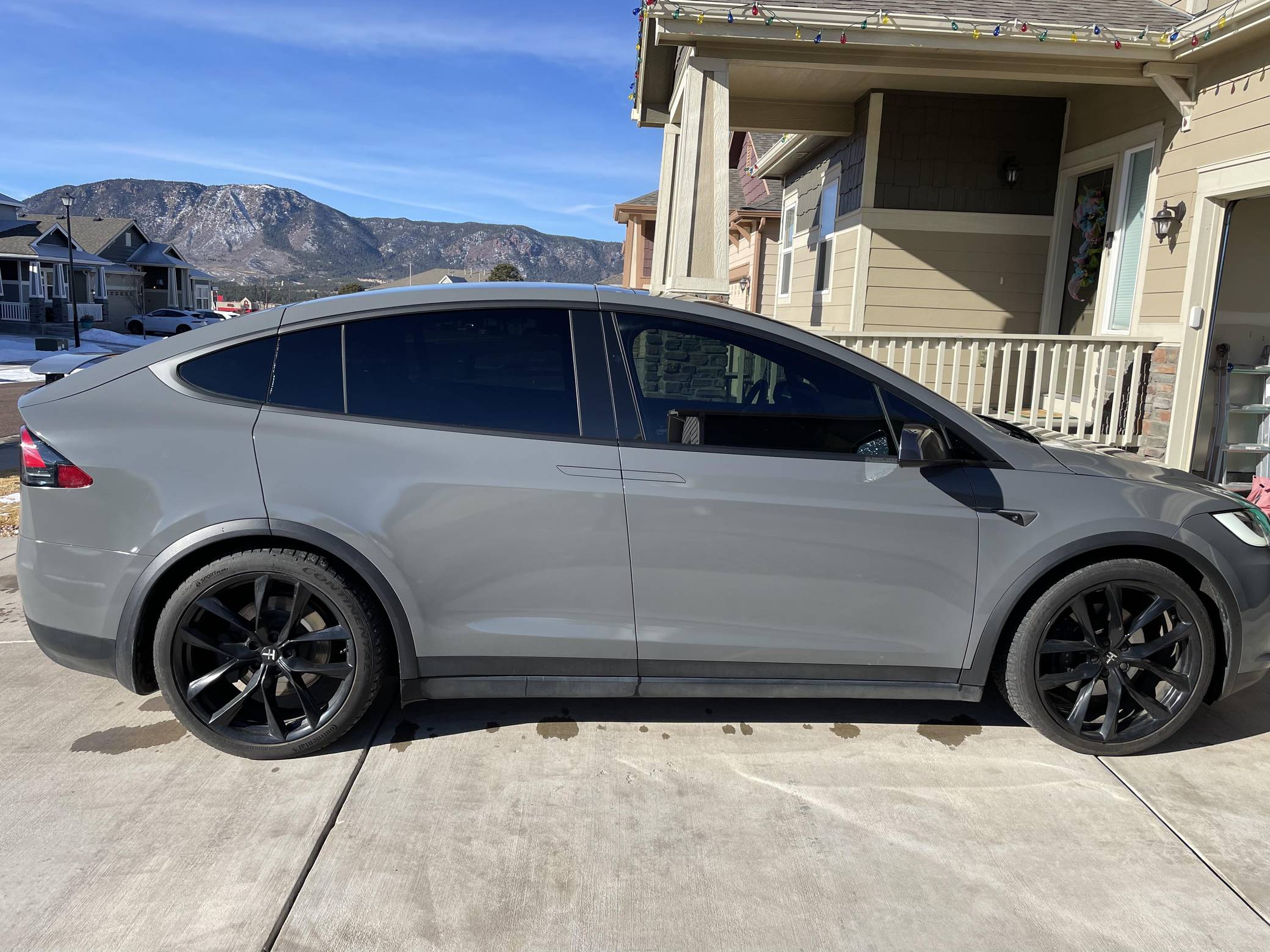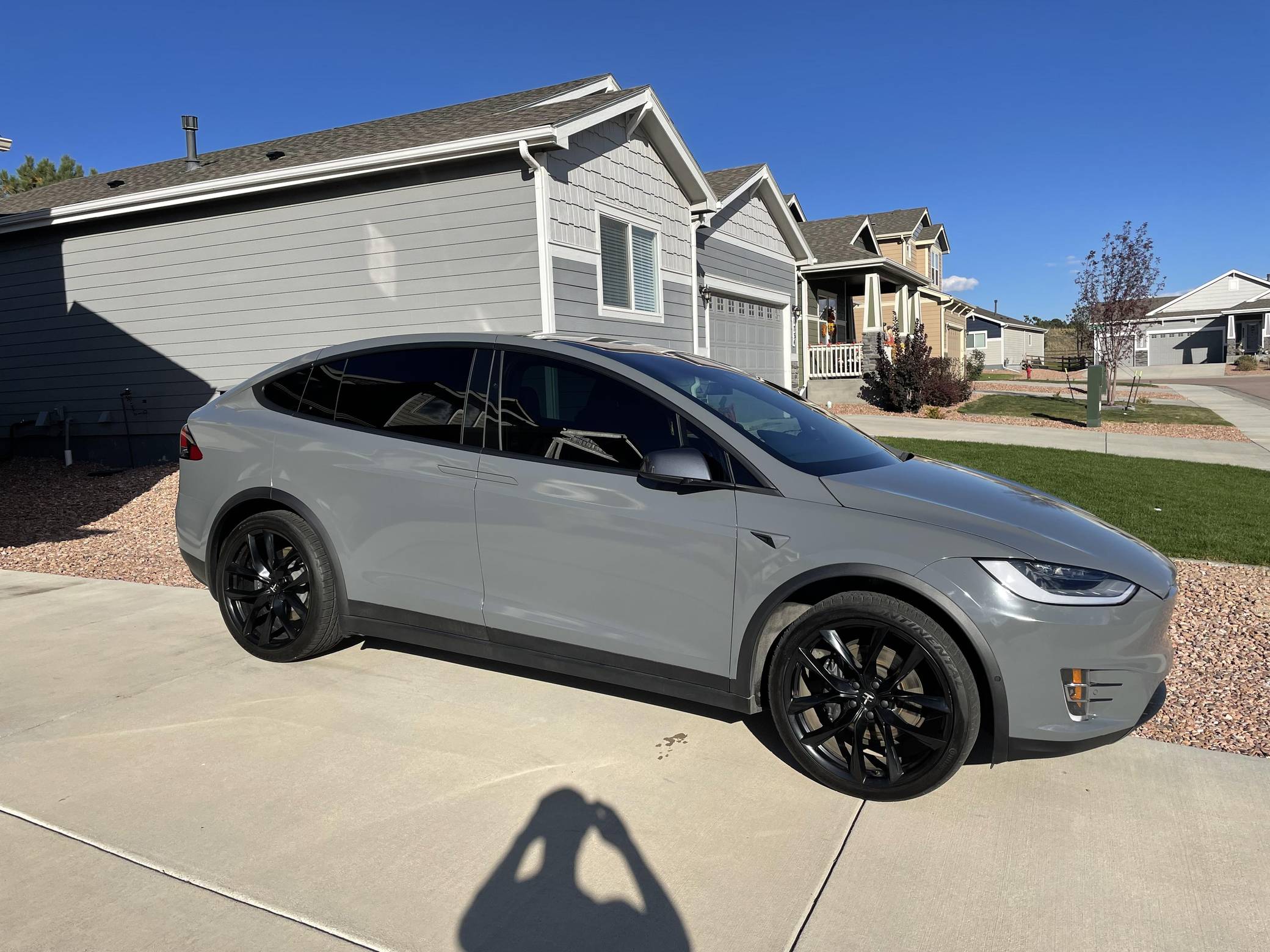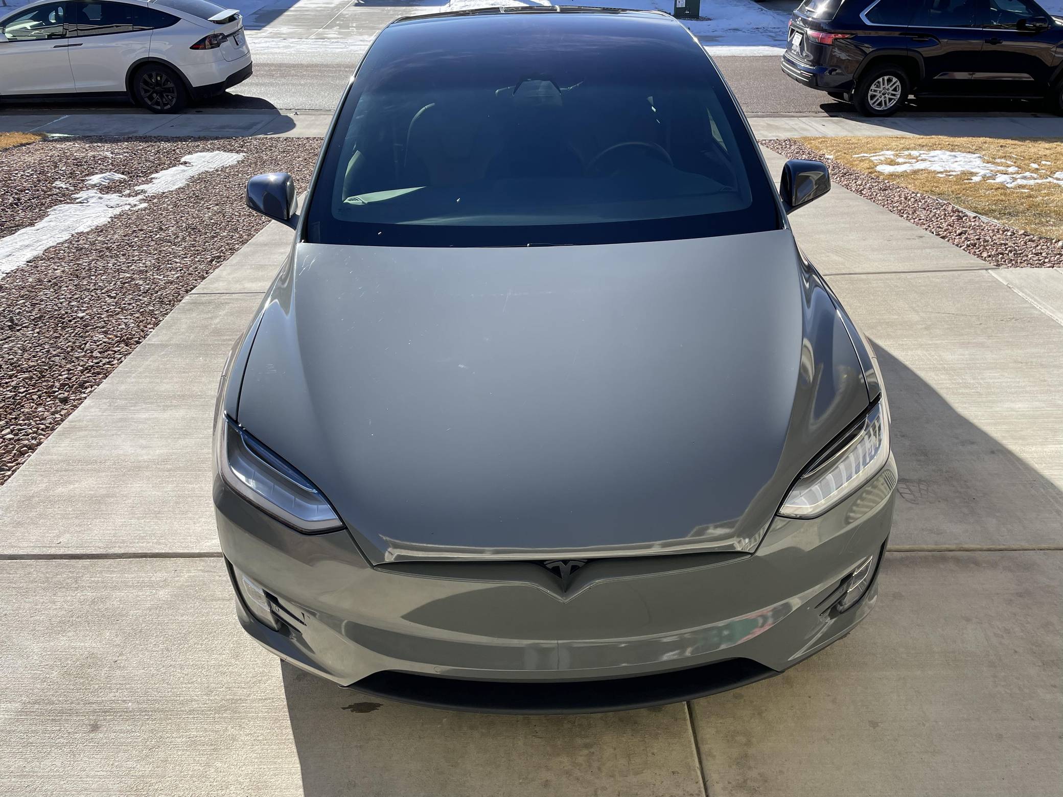 THIS. . . is a 2020 Tesla Model X Long Range Plus, finished in Midnight Silver Metallic with a gray exterior wrap and a black interior. Factory equipment includes a rear spoiler, wood interior trim, heated and power-adjustable front seats, heated second-row seats, heated third-row seats, Enhanced Autopilot technology, and the "Full Self-Driving" computer (subscription required). In addition to the gray exterior wrap, the list of modifications reported by the seller includes tinted windows and 22-inch T Sportline wheels. Tesla introduced the Model X for the 2016 model year as a taller, more spacious alternative to the Model S. It stood out from other crossovers with unusual double-hinged falcon rear doors. It has gone through several powertrain and interior evolutions since its launch, and it's still available today. Power comes from a pair of electric motors, which draw electricity from a 100-kilowatt-hour lithium-ion battery pack to zap the four wheels with approximately 534 horsepower and 556 lb-ft of torque according to third-party estimates. In 2020, the EPA gave the Model X Long Range Plus a maximum driving range rating of 351 miles, though the 22-inch wheels might reduce this figure.