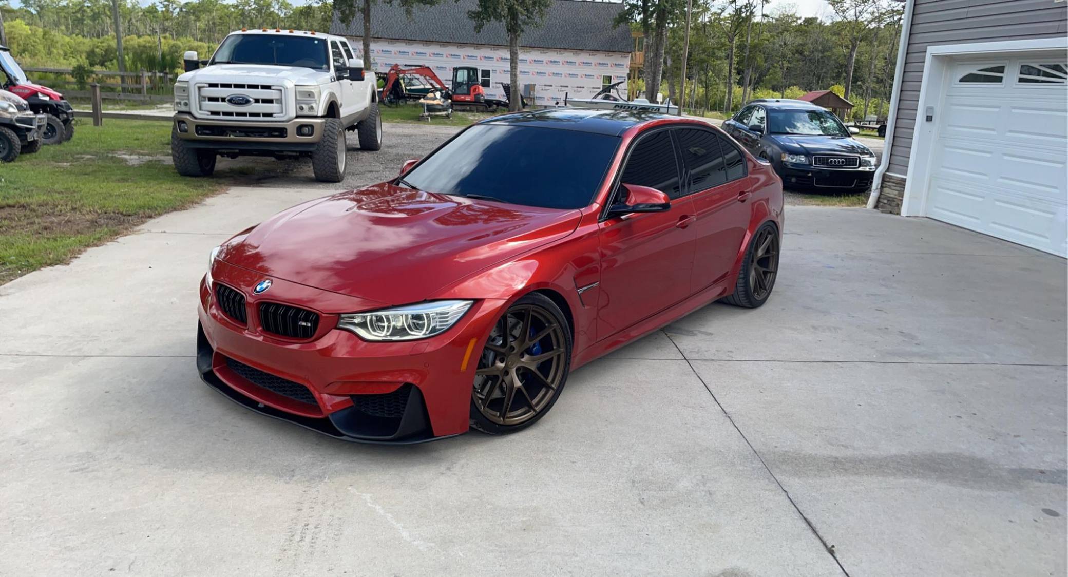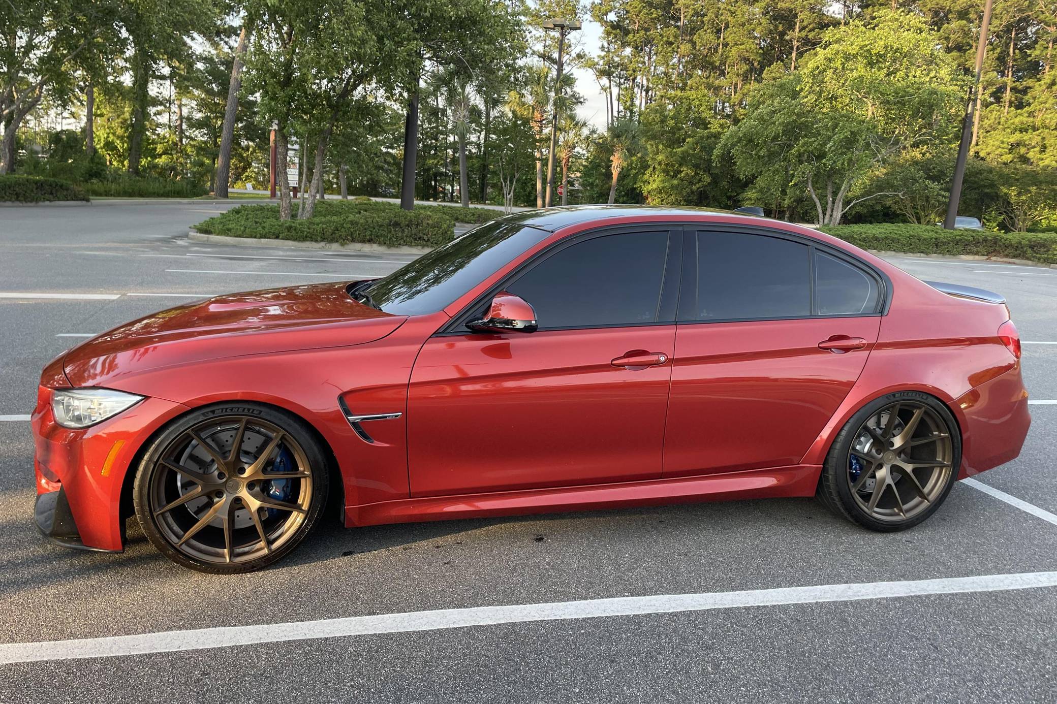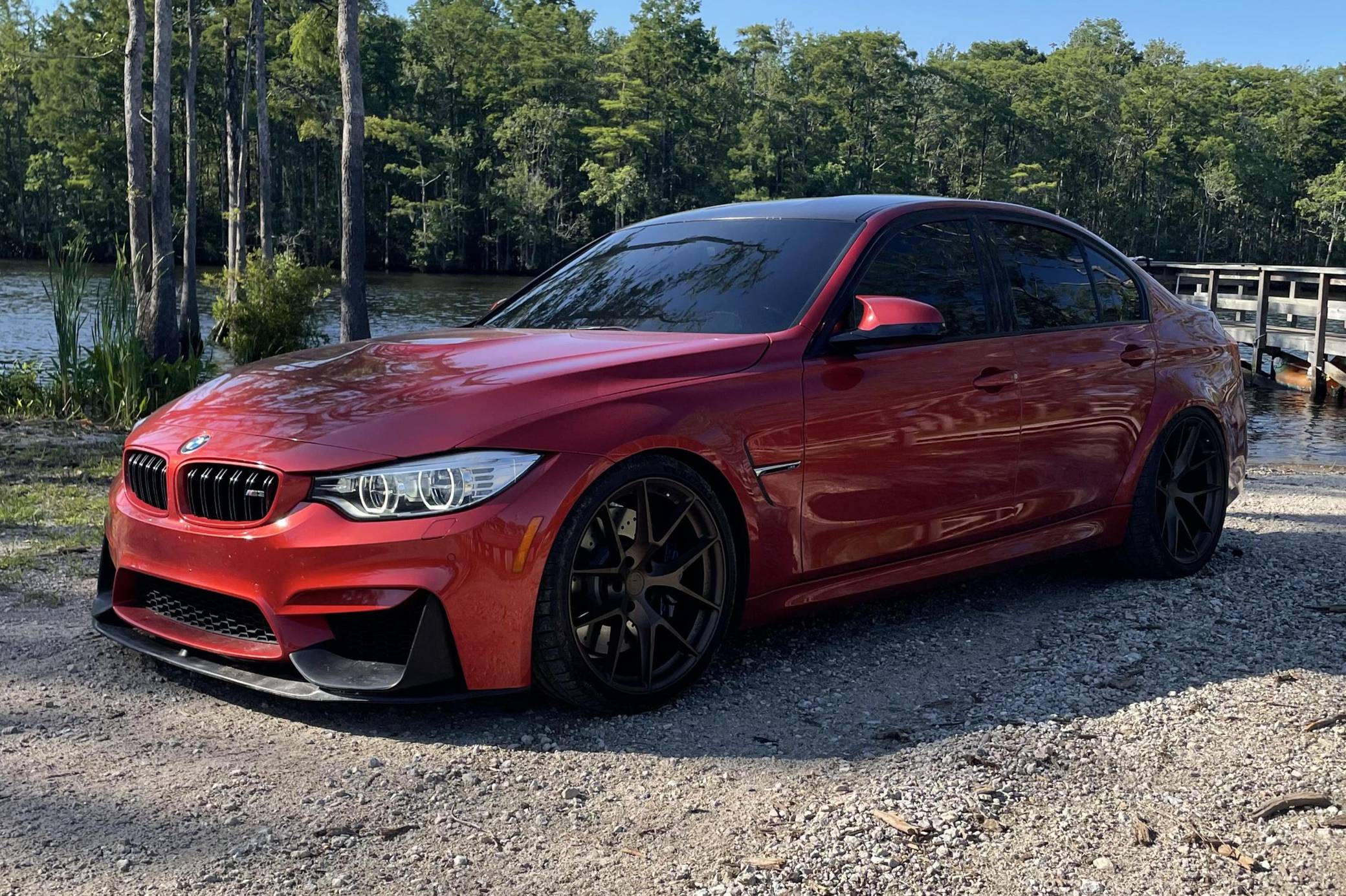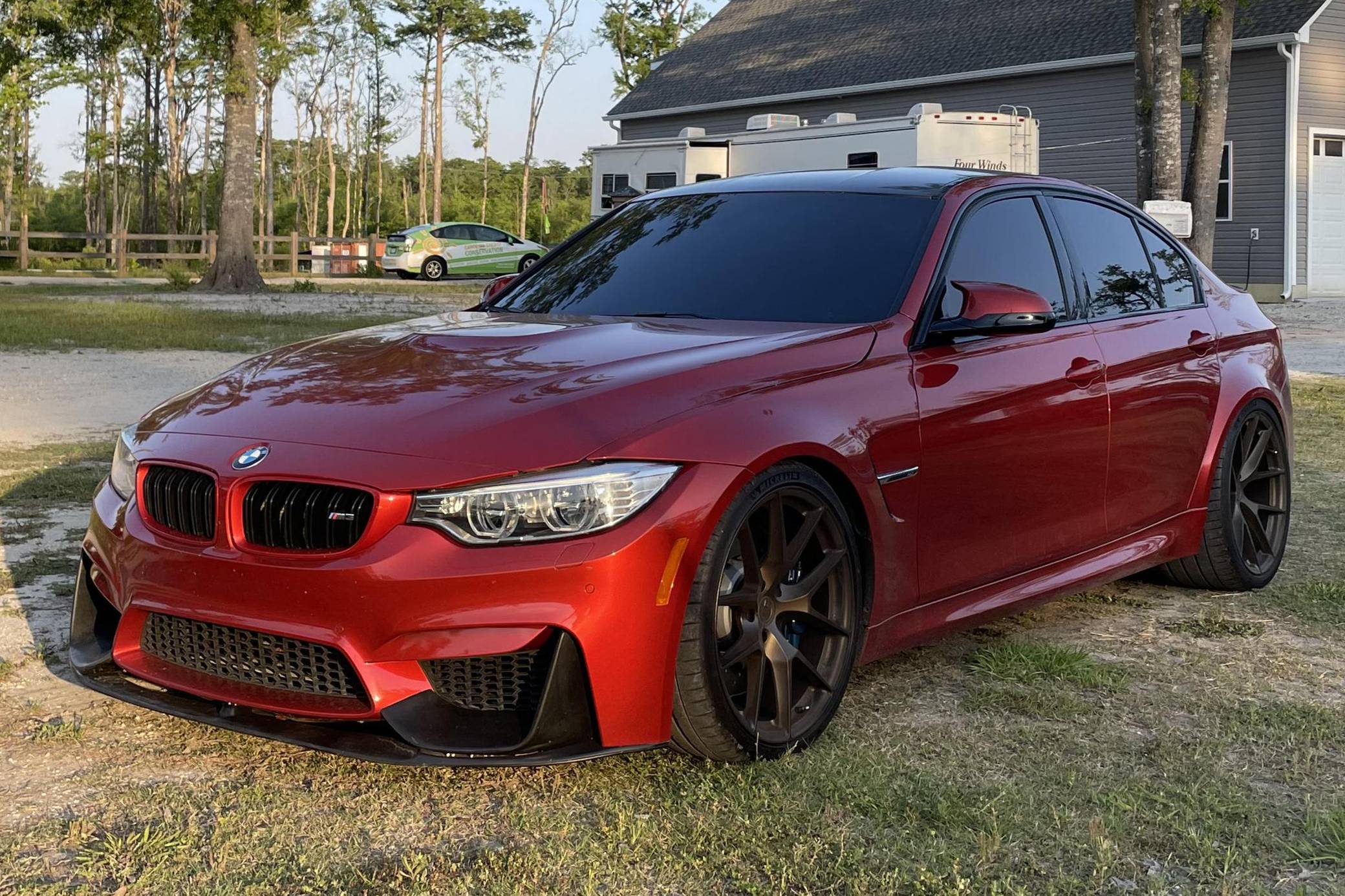 THIS… is a 2015 BMW M3, finished in Sakhir Orange with a Sakhir Orange interior. This BMW features the desirable 6-speed manual transmission. According to the build sheet provided in the gallery, factory equipment includes the Light Package, carbon roof, Merino leather upholstery, heated and power-adjustable front seats, heated rear seats, heated steering wheel, dual-zone automatic climate control, head-up display, Harman/Kardon surround sound system, and a navigation system, among others listed below. Modifications reported by the seller include an MHD tune, an aftermarket fluid crank hub, H&R lowering springs, catless downpipes, a custom exhaust system, 20-inch Aodhan wheels, a trunk lip spoiler, and window tint. The "F80" was the first M3 with forced induction as well as the first without coupe and convertible companions — which were called M4 as part of the automaker's renaming strategy. A 7-speed dual-clutch automatic gearbox was far more common, though this M3 is fitted with the desirable 6-speed manual. Power comes from the "S55" 3. 0-liter twin-turbocharged inline-6 engine, rated at 425 horsepower and 406 lb-ft of torque in stock form. Due to the modifications performed to this M3, it may produce more power, but a dyno sheet was not provided to confirm. Power is sent to the rear wheels via a 6-speed manual transmission.