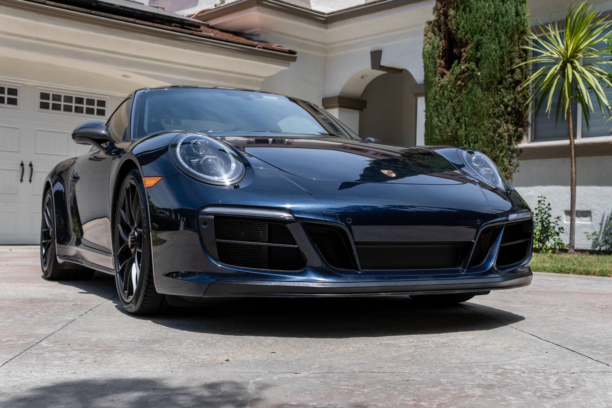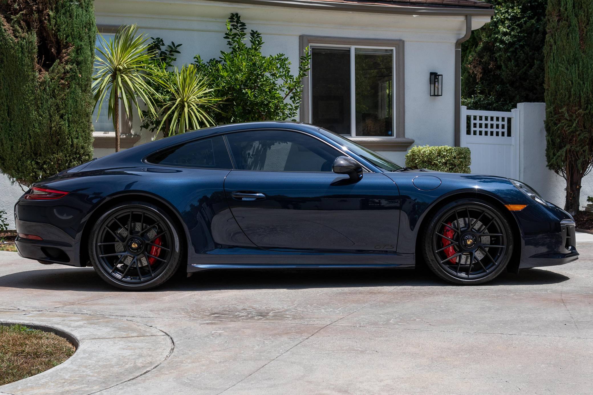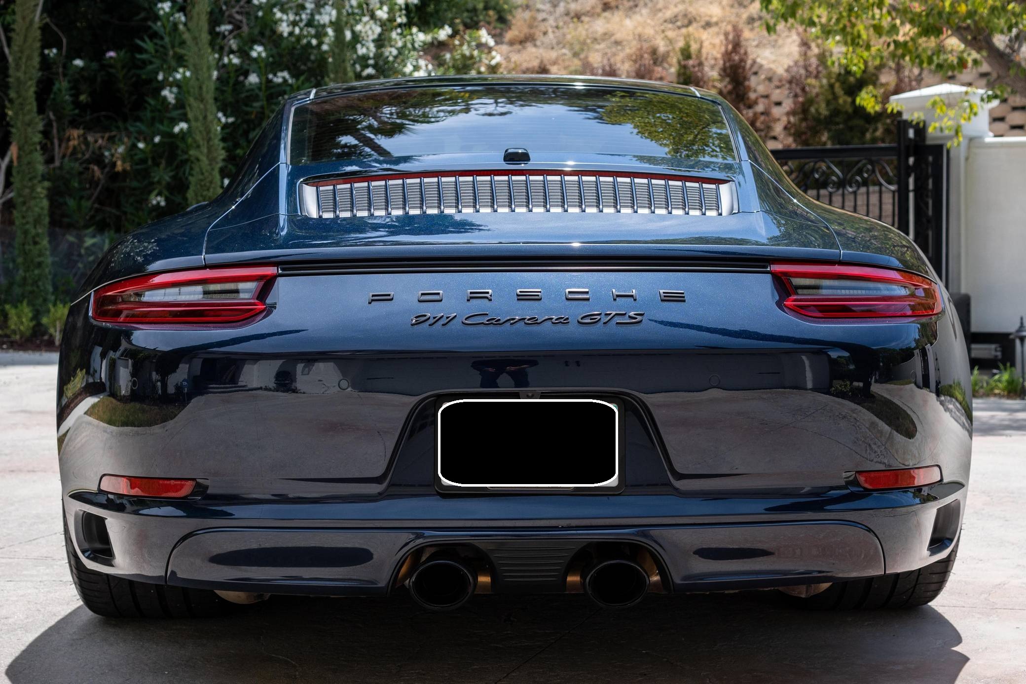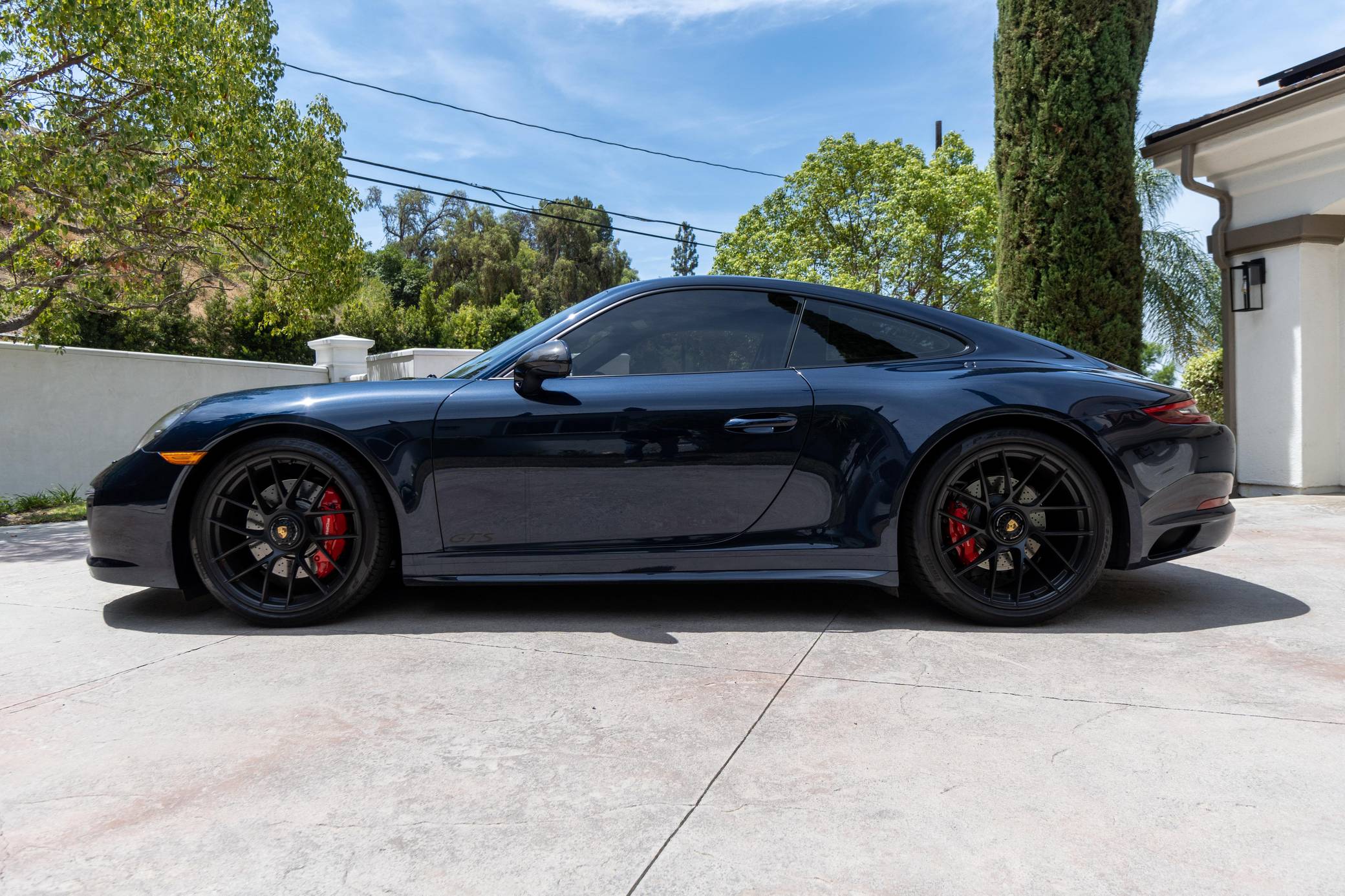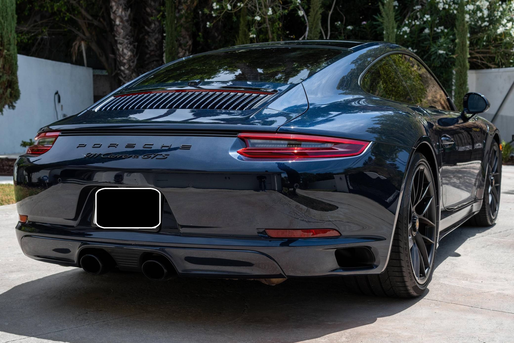 2017 Porsche 911 Carrera GTS, finished in Night Blue Metallic with a black interior. This Porsche's odometer displays about 18,500 miles. Factory equipment includes the Premium Package Plus, the Carbon Fiber Interior Package, 20-inch Turbo S center-lock wheels, red-painted brake calipers, painted side skirts, LED headlights in black with Porsche Dynamic Light System Plus (PDLS+), a sunroof, leather upholstery, a heated GT sport steering wheel, and a Bose surround sound system. Modifications reported by the seller include a Sharkwerks exhaust system, paint protection film on the front bumper, hood, fenders, and side mirrors, and tinted windows. Porsche introduced the 991-generation 911 for the 2012 model year. It arrived as an evolution of its predecessor, the 997, which received more powerful engines across the board and a more luxurious interior. It was longer, lower, and wider but it relied extensively on aluminum to avoid putting on weight. 2017 brought a significant change: Porsche turbocharged non-Turbo variants, including the base Carrera, for the first time in the name of fuel efficiency. 991 production ended in 2019. Power comes from a 3. 0-liter twin-turbocharged flat-6, rated at 450 horsepower and 405 lb-ft of torque. It spins the rear wheels via a 7-speed PDK dual-clutch automatic transmission.