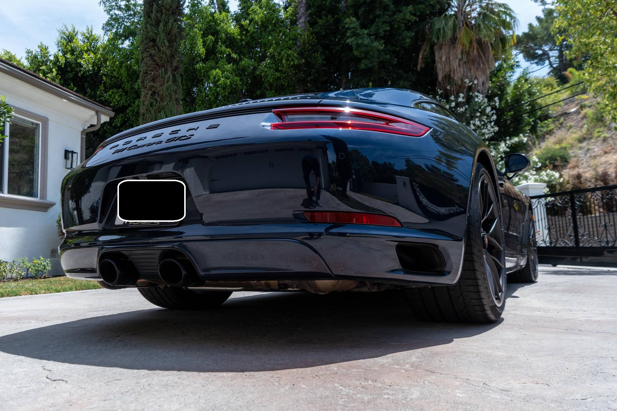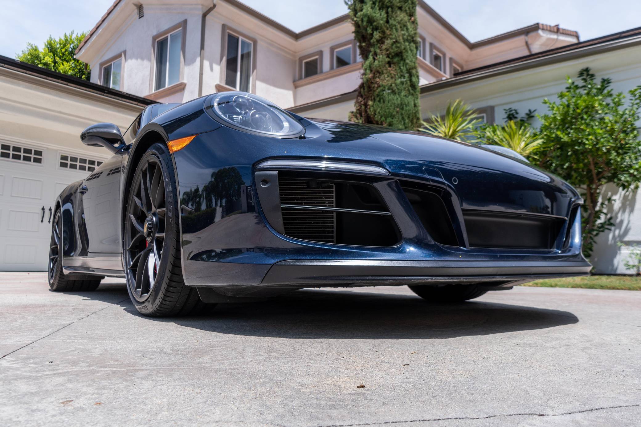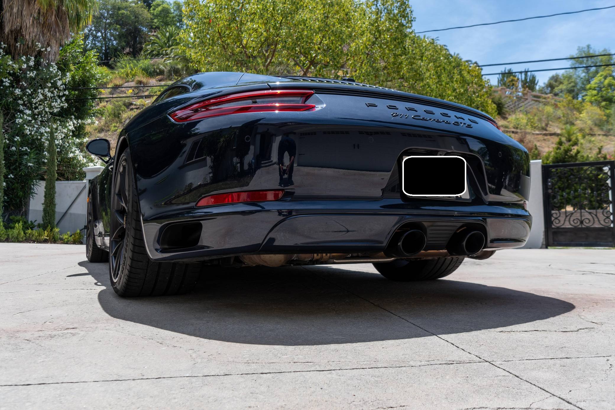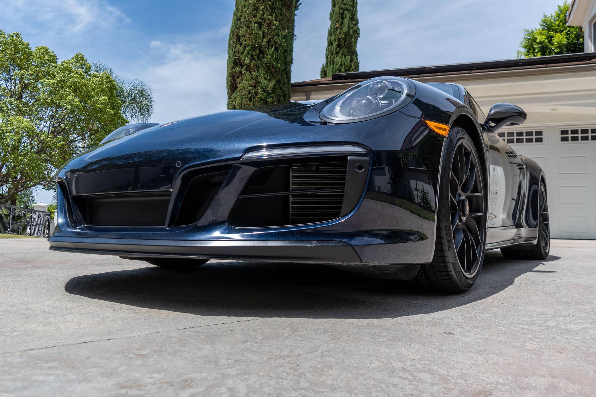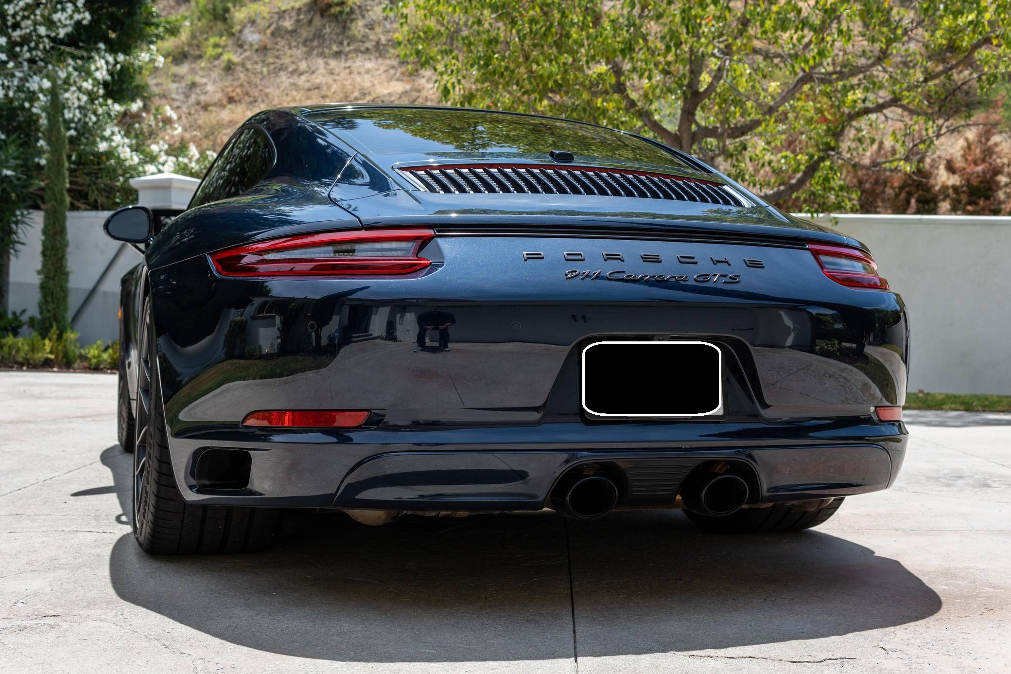 2017 Porsche 911 Carrera GTS, finished in Night Blue Metallic with a black interior. This Porsche's odometer displays about 18,500 miles. Factory equipment includes the Premium Package Plus, the Carbon Fiber Interior Package, 20-inch Turbo S center-lock wheels, red-painted brake calipers, painted side skirts, LED headlights in black with Porsche Dynamic Light System Plus (PDLS+), a sunroof, leather upholstery, a heated GT sport steering wheel, and a Bose surround sound system. Modifications reported by the seller include a Sharkwerks exhaust system, paint protection film on the front bumper, hood, fenders, and side mirrors, and tinted windows. Porsche introduced the 991-generation 911 for the 2012 model year. It arrived as an evolution of its predecessor, the 997, which received more powerful engines across the board and a more luxurious interior. It was longer, lower, and wider but it relied extensively on aluminum to avoid putting on weight. 2017 brought a significant change: Porsche turbocharged non-Turbo variants, including the base Carrera, for the first time in the name of fuel efficiency. 991 production ended in 2019. Power comes from a 3. 0-liter twin-turbocharged flat-6, rated at 450 horsepower and 405 lb-ft of torque. It spins the rear wheels via a 7-speed PDK dual-clutch automatic transmission.
