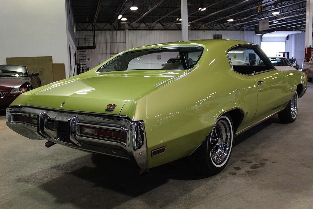 Very excited to present this amazing car that comes out of a Buick enthusiast collection. We have a 1 of 801 Buick GS Stage 1 cars produced in 1971. The original owner had possession of this car until 1990. Has owner history including a very detailed maintenance log from the original owner. The engine is numbers matching as is the carb, heads and distributor. A mountain of paperwork and receipts from the engine build to bodywork. There is no doubt that Buick was GM's division for Luxurious muscle cars and they did not disappoint with the GS line. And even though the 1970 and 1971 were the beginning of the end for the muscle cars, the 455 Stage I cars did not disappoint offering a conservative based 350 HP and 460 ft. lbs of torque. In fact, in the 1980's a magazine article pronounced that the Stage 1 cars of this era were faster than any of the Hemi cars of the same time. This controversy prompted several tests by many auto related magazines and unfortunately remains a true mystery to this day. Other than the stock original and hard-to-find interior that shows remarkable, this car has been completely restored including a full engine re-build and number verification. It has a couple very careful and tastefully completed modifications. The first is the installation of a Hurst/Tremec 5-speed transmission that operates flawlessly. And the only other modification is the Summit digital gauge cluster with volt-meter, water temp and oil pressure. The complete original and numbers matching automatic transmission is sold with the vehicle including the center console and torque converter if the new buyer wishes to install it. Some of the other options and accessories is air-conditioning (blows cold), power windows and locks, power steering and brakes, a power drivers seat, rear defrost, am/fm radio and sport steering wheel with everything in good working operation. This GS starts, runs and stops perfectly. The engine runs strong….real strong with no leaks or smoke. Transmission shifts smoothly with the 5th gear making it very nice for cruising the highway. It was re-painted back to its original color of “lime mist” just a short time ago. This car is ready to be enjoyed and driven.