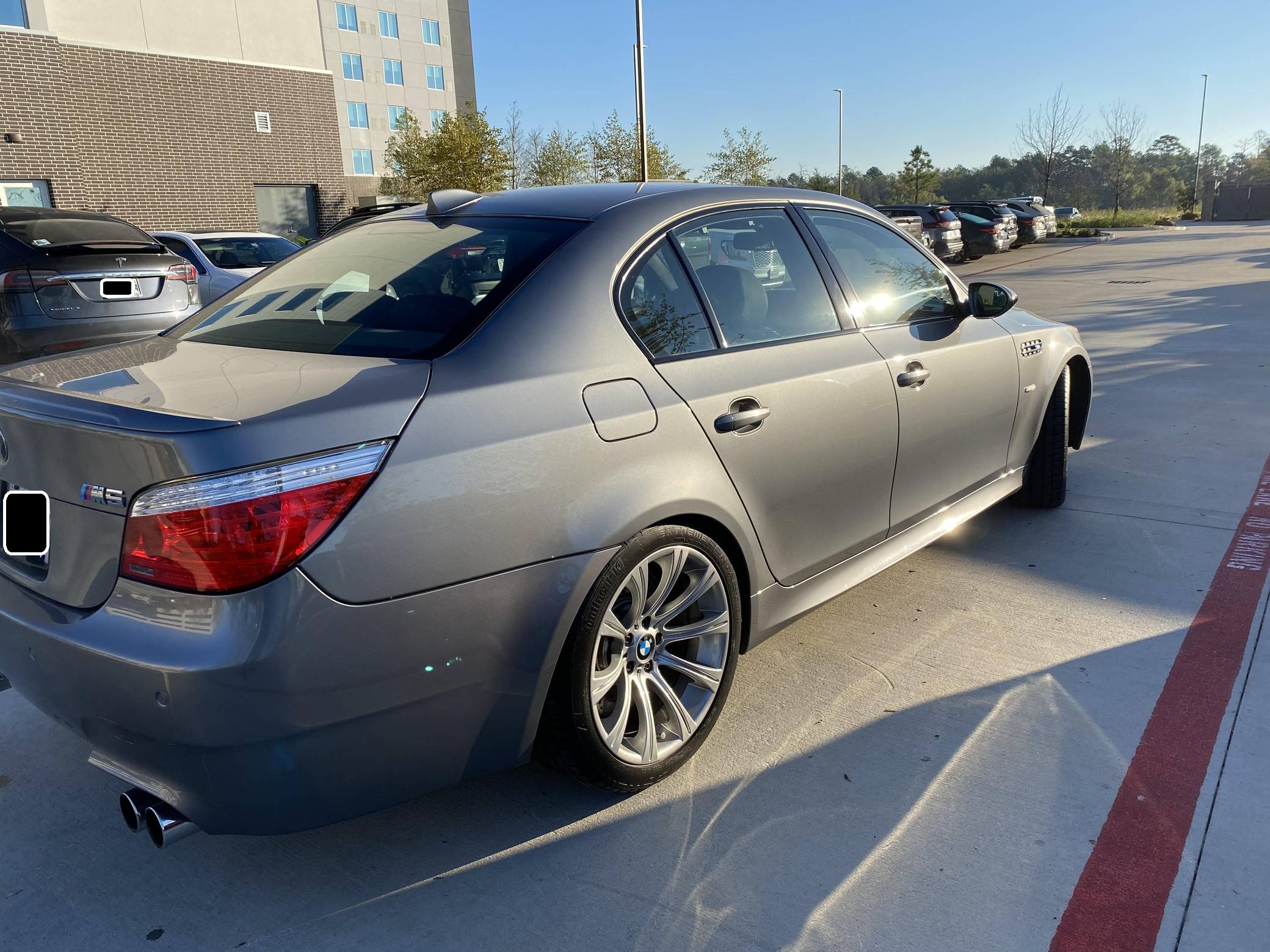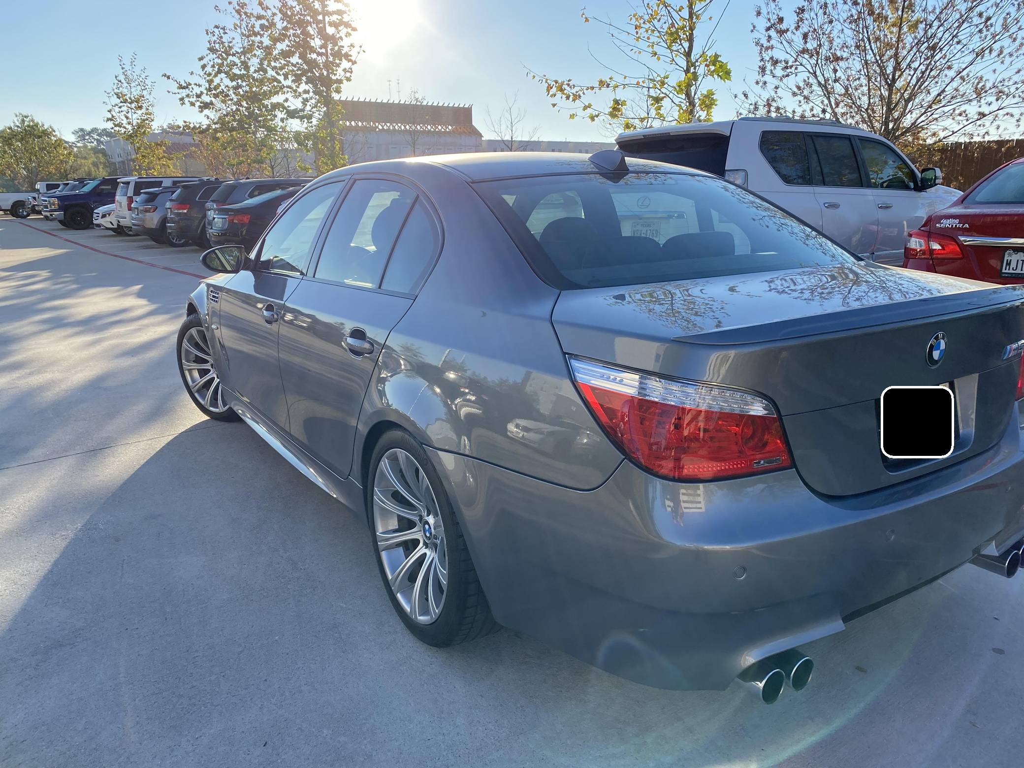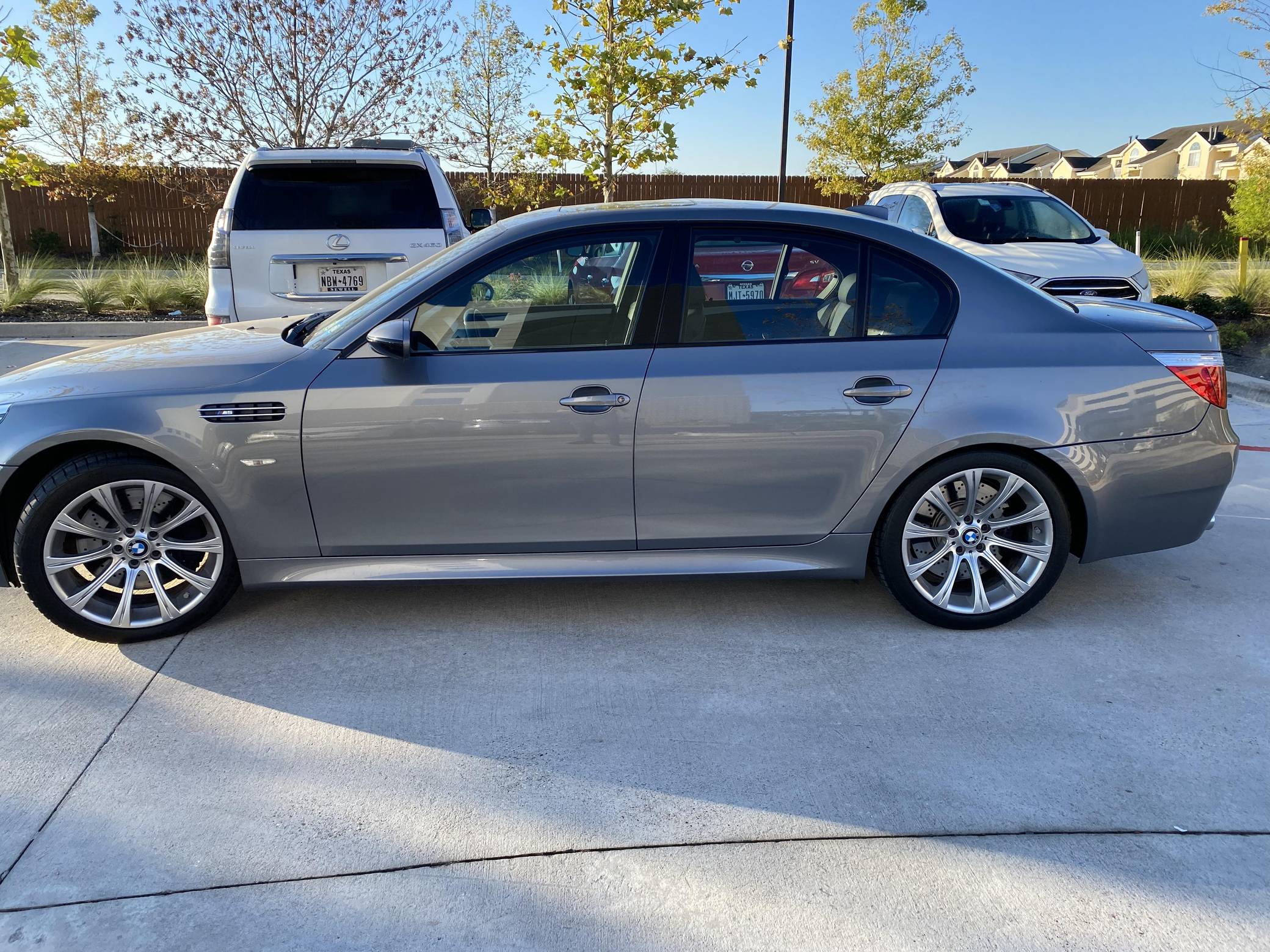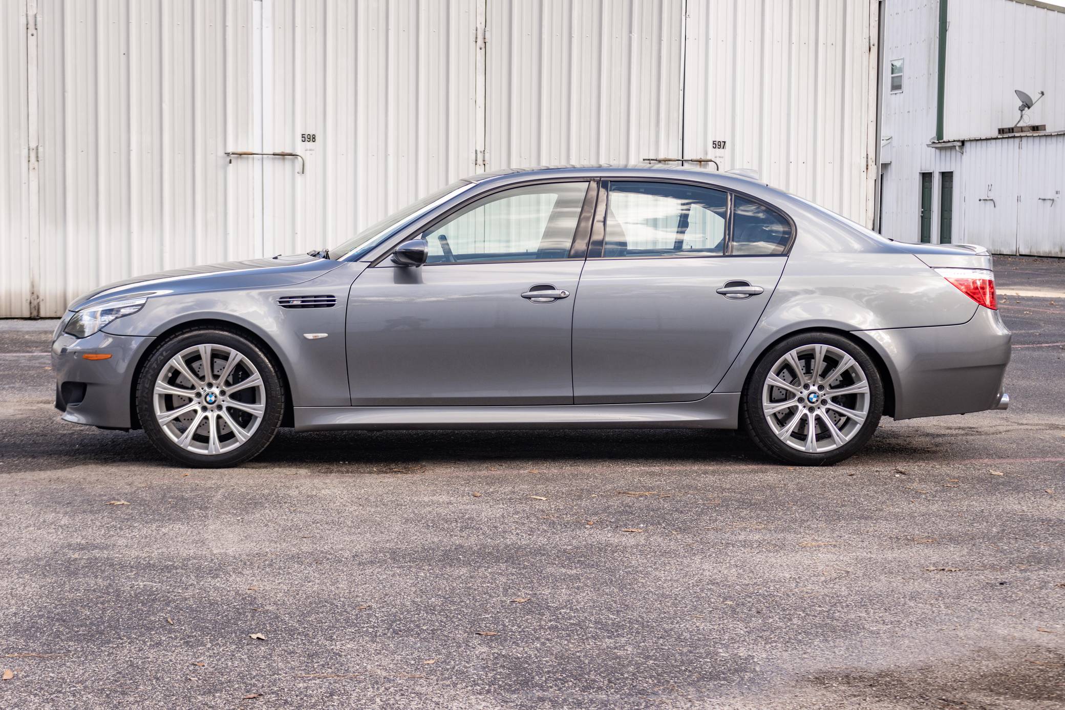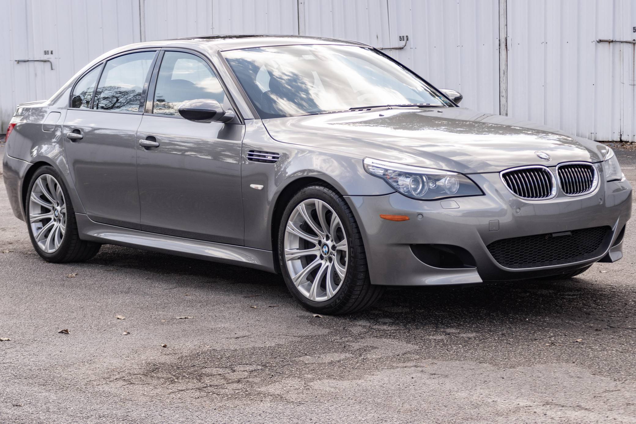 2008 BMW M5, finished in Space Gray Metallic with a black interior. This M5 is equipped with the desirable 6-speed manual transmission. According to the build sheet pictured in the photo gallery, this M5 came equipped with Lights Package (adaptive xenon headlights), 19-inch Style 166M wheels, a sunroof, Merino leather upholstery, heated and power-adjustable front seats, aluminum interior trim, rear sunshades, a head-up display, and soft-close doors, among others listed below. The seller reports no modifications. Based on the E60-generation 5 Series, the fourth-generation M5 made its debut for the 2006 model year with a mighty V10 engine between its vented fenders. It followed its segment's shift towards technology and luxury by offering enthusiasts a longer list of equipment than its predecessor, including a "Power" button and configurable driving modes. Production ended in 2010, and BMW hasn't released another V10-powered M5 since. Power for this M5 comes from an "S85" 5. 0-liter V10, rated at 500 horsepower and 383 lb-ft of torque. Output is sent to the rear wheels via a 6-speed manual transmission.