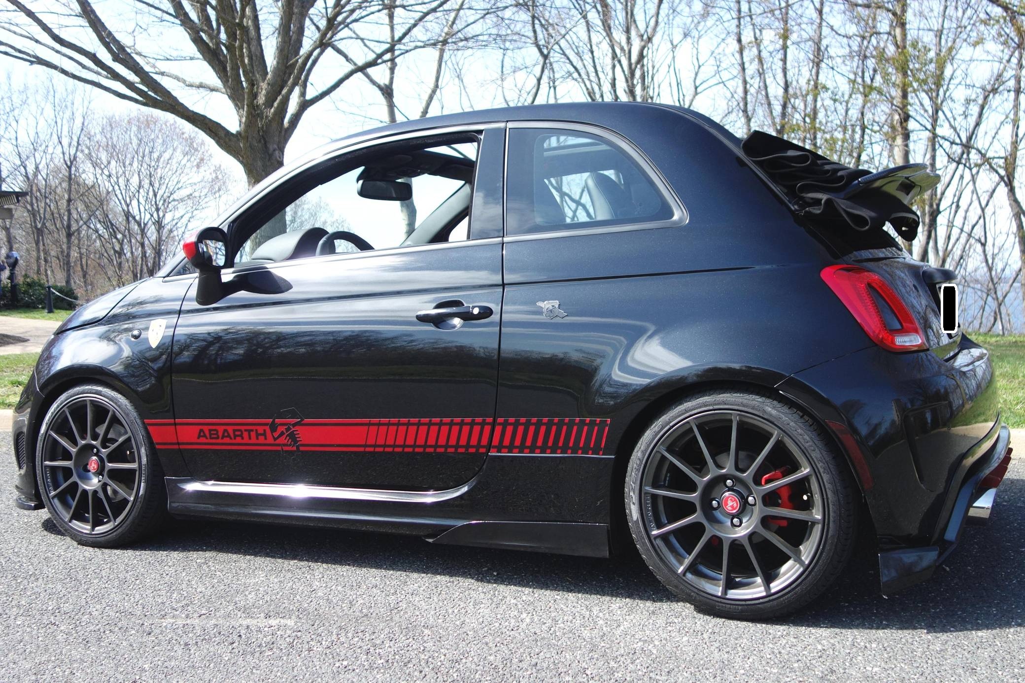 2013 Fiat 500C Abarth Cabriolet, finished in Nero with a Nero soft top and a Nero interior. This 500C Abarth features the desirable 5-speed manual transmission, and the odometer currently displays approximately 6,200 miles. Equipped with the Beats Premium Audio Package (6-speaker Beats Audio sound system with subwoofer), the Comfort/Convenience Group (automatic air conditioning, SiriusXM satellite radio compatibility), 17-inch forged aluminum Hyper Black wheels, a retractable performance soft top, performance leather-trimmed high-back bucket seats, and more as detailed below. Modifications to this 500C Abarth are extensive, and highlights include a Eurocompulsion Euro+Drive stage 2+ tune, a 500 Madness Monza exhaust, an ATM Speedshop front mount intercooler and Fenderwell ram air intake, Koni yellow shocks, Neuspeed Neu-F performance springs and rear torsion bar, Road///Race Motorsports fender braces, a Huper Optik 40% ceramic window tint, a Morimoto 5k HID kit, a Maxton Design front lip, ACS Composite side rocker winglets, a 500 Speedlab rear diffuser, a 500 Madness carbon fiber rear spoiler extension, a custom leather dashboard wrap, shift boot, and visor covers, a 2015+ Fiat 500 LCD gauge cluster, and an Alpine iLX-207 head unit. The full list of modifications can be seen below. The fixed-profile convertible variant of the 500 debuted at the Geneva Motor Show in March 2009. It was designated as the 500C, historically recalling the fixed-profile convertible of the original 1957 Fiat 500. The top can be controlled either via the key remote or by open/close buttons. It can retract to the first two stages at speeds up to 37 mph, and into its third stage at up to 50 mph. The Abarth version of the 500C was unveiled at the 2010 Geneva Motor Show to rave reviews and shares the same powertrain as the Abarth coupe. Power comes from a 1. 4-liter turbocharged inline-4 engine, rated at 160 horsepower and 170 lb-feet of torque in stock form. Due to the modifications performed to this 500C Abarth, it likely produces more power, but a dyno sheet was not provided to confirm. Output is sent to the front wheels via a 5-speed manual transmission.