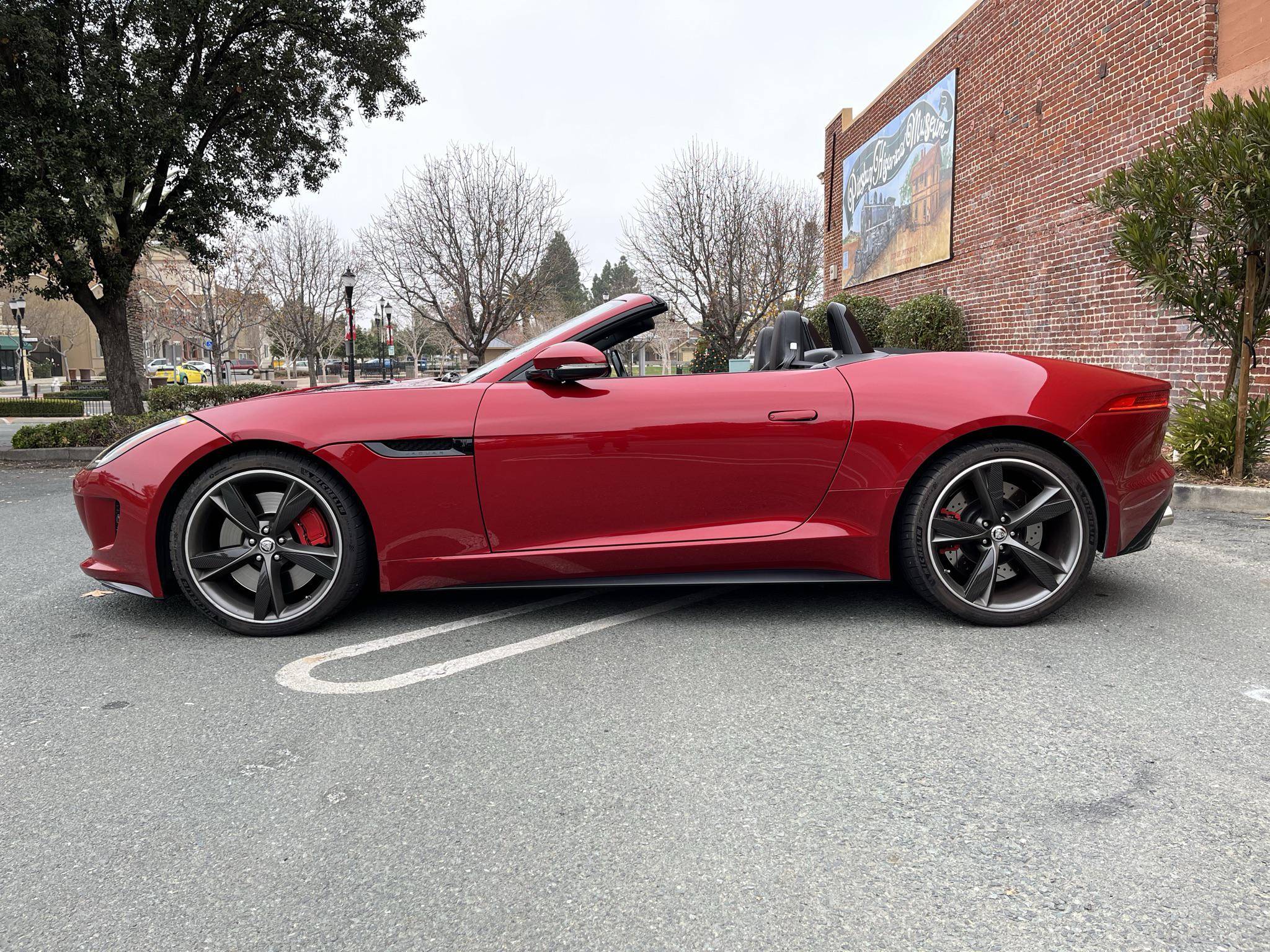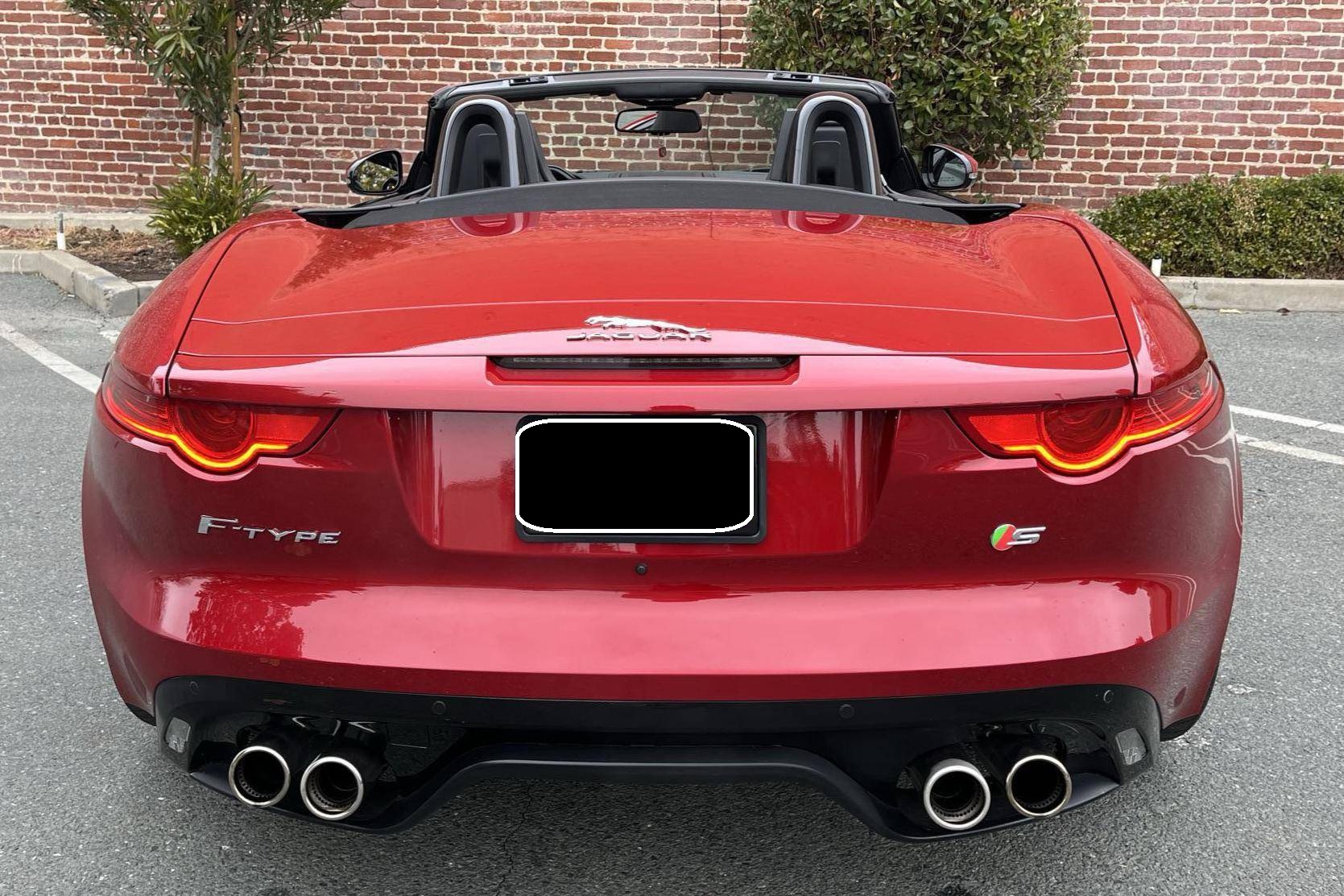 2014 Jaguar F-Type V8 S Convertible, finished in Italian Racing Red with a black soft top and a Jet interior. According to the Monroney Label pictured in the gallery, factory equipment includes the Performance, Premium, Climate, Vision, Extended Leather, and Black packs, 20-inch "Carbon Blade" wheels, adaptive dampers, an electronic active differential, a power-operated soft top, a Meridian premium sound system, and more as listed below. The only modification reported by the seller is a StopTech drilled and slotted rear axle pack. Jaguar unveiled the hotly-anticipated F-Type for the 2014 model year. Offered as a coupe and as a convertible, the F-Type was presented as the E-Type's spiritual successor, and as a British-flavored alternative to sports cars like the Porsche 911. Power comes from a 5. 0-liter supercharged V8, rated at 495 horsepower and 460 lb-ft of torque. Output is sent to the rear wheels via an 8-speed automatic transmission.
