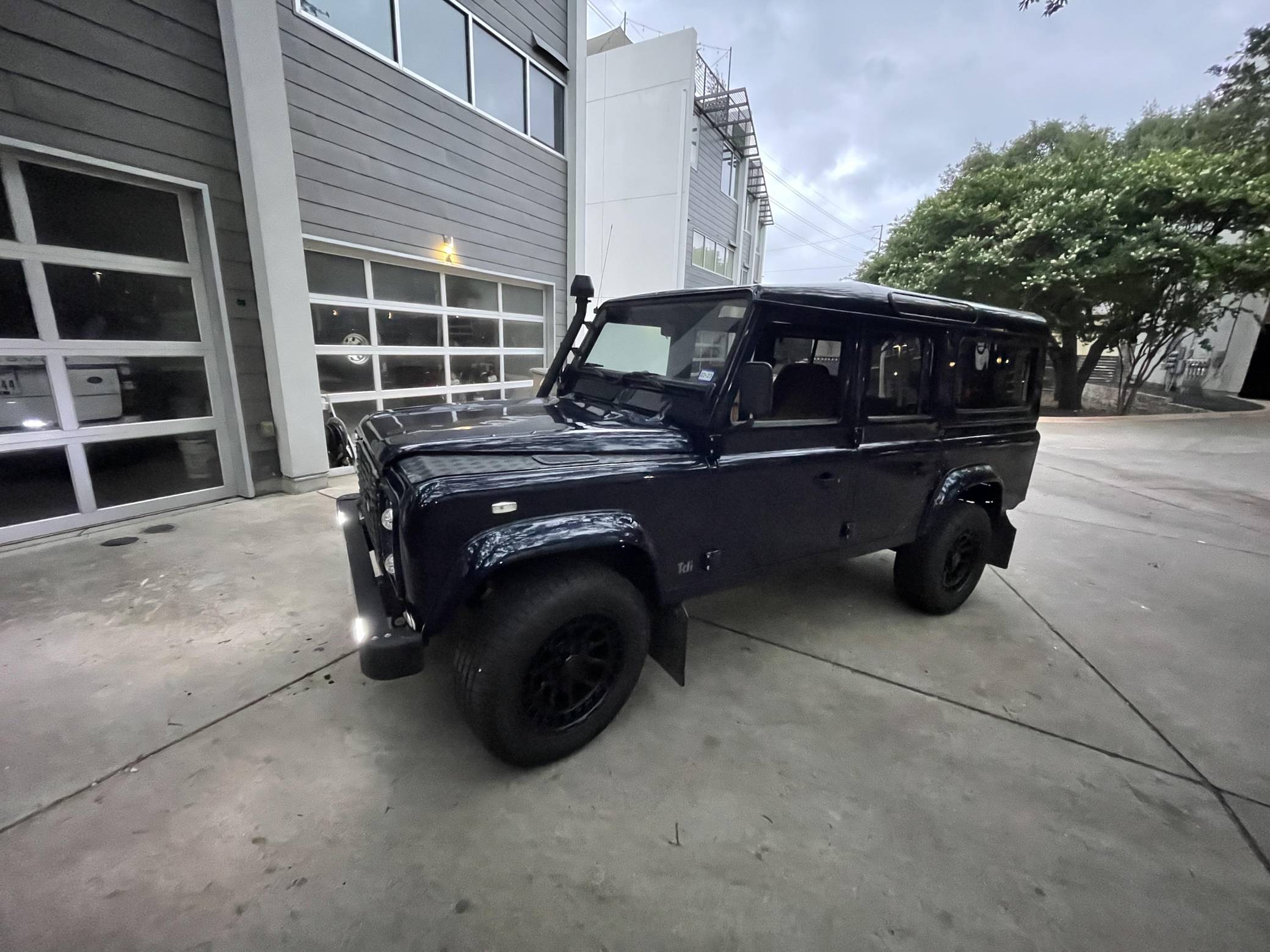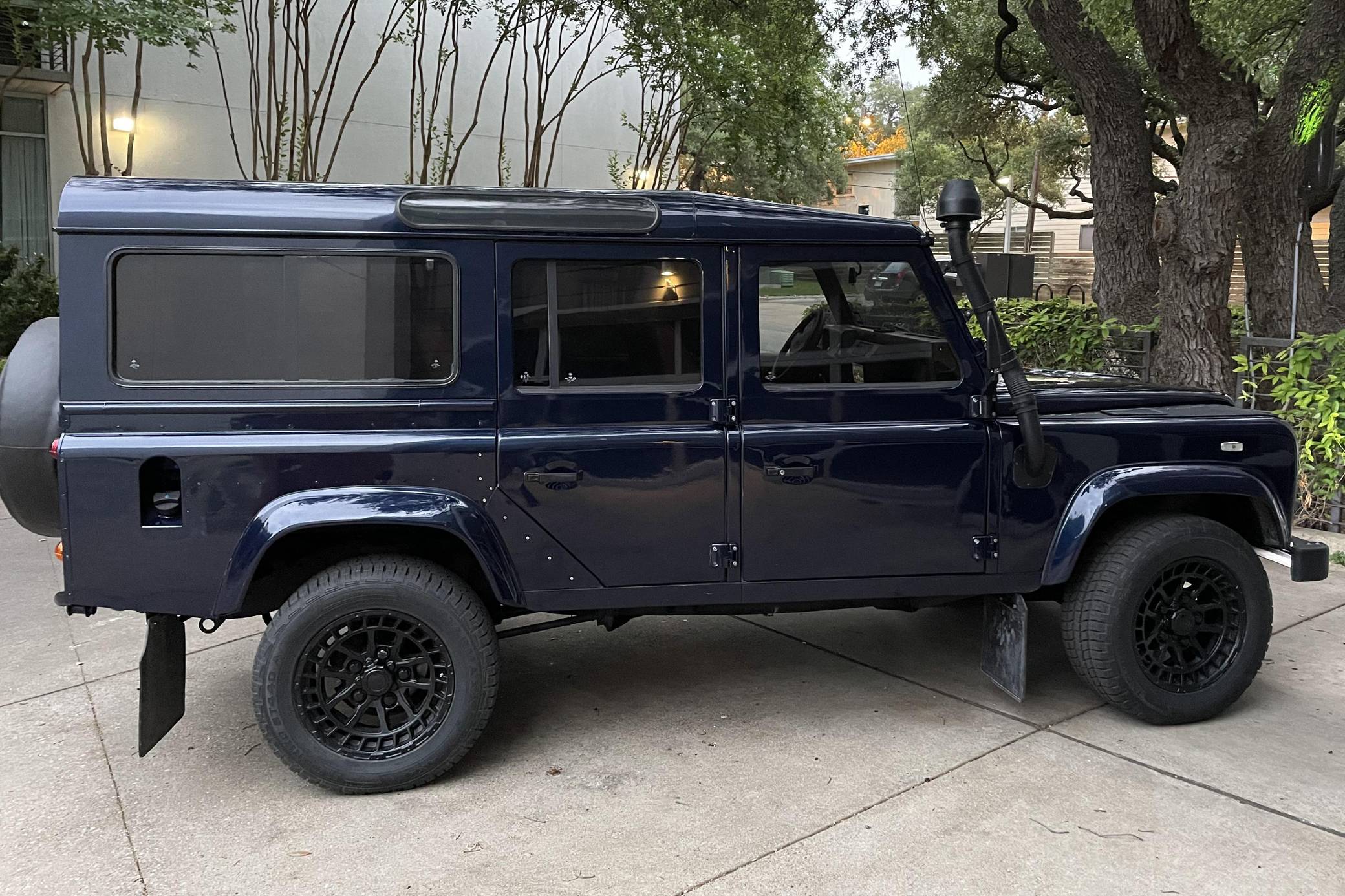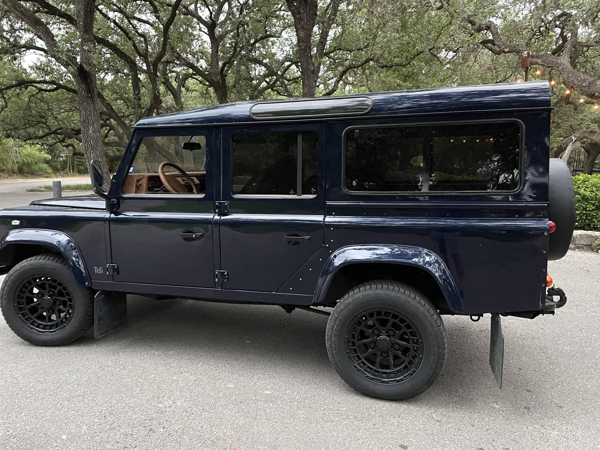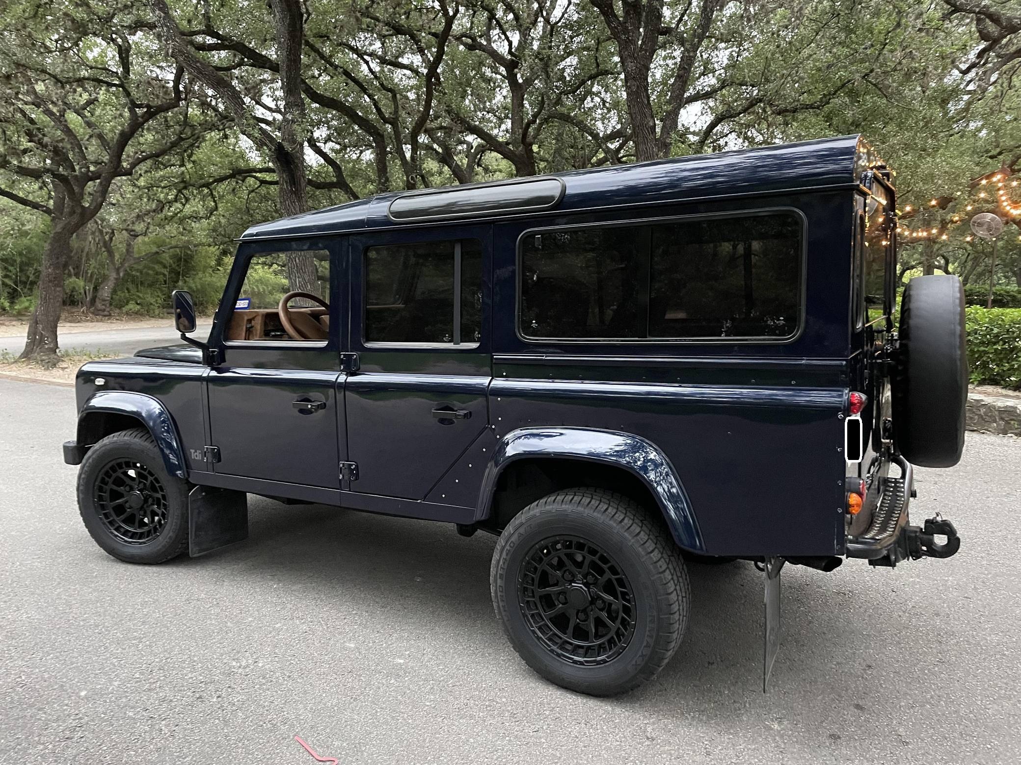 1996 Land Rover Defender 110, finished in Oslo Blue with a tan interior. This Defender is a Turkey-spec, left-hand-drive truck. Imported from Turkey in March 2022 by the seller, it’s equipped with a metric instrument cluster and its odometer currently shows about 76,800 kilometers, which represents approximately 47,800 miles. Modifications to this Defender are extensive, and the full list is detailed below. include a complete repaint to Oslo Blue, 18-inch aftermarket wheels, LED headlights and taillights, new vinyl upholstery for the seats, dash, door cards, headliner, retrofitted air conditioning, and aftermarket center consoles front and rear. Photos from the repaint work can be found in the photo gallery. Land Rover's celebrated Defender arrived in 1990 as an evolution of the 90/110 released in 1983. Shaped like the box it came in, it remained an unapologetically basic off-roader built for extremely demanding terrain, but it gained an available turbodiesel engine that made it more capable on the pavement. England's favorite workhorse remained in production with minor but regular updates until regulations killed it off in 2016. Few were sold new in America, and none were sent here with a turbodiesel engine. Power comes from a 2. 5-liter "300TDi" turbodiesel 4-cylinder engine, rated at 111 horsepower and 195 lb-ft of torque. It spins the four wheels via a 5-speed manual transmission and a 2-speed transfer case.