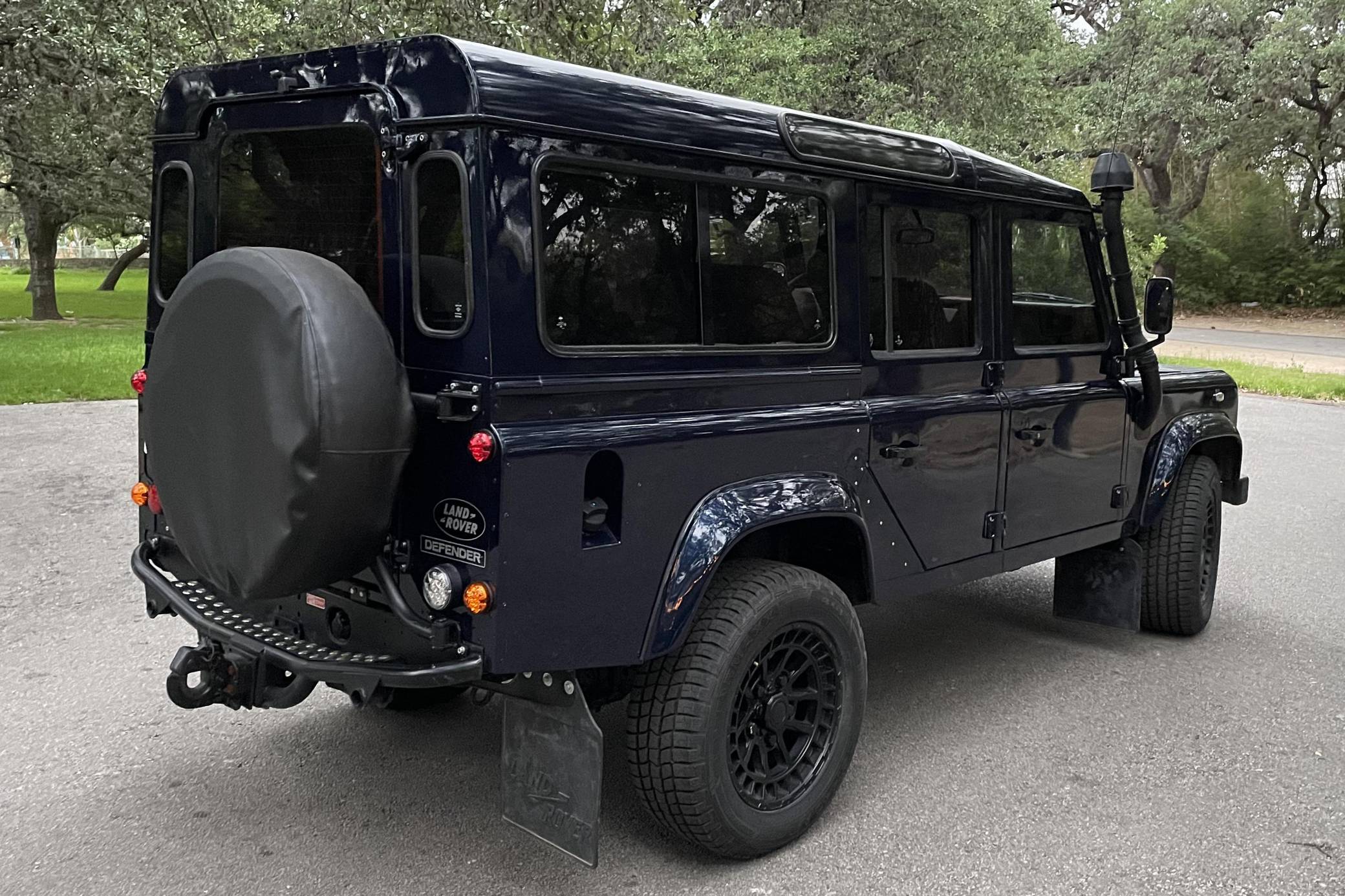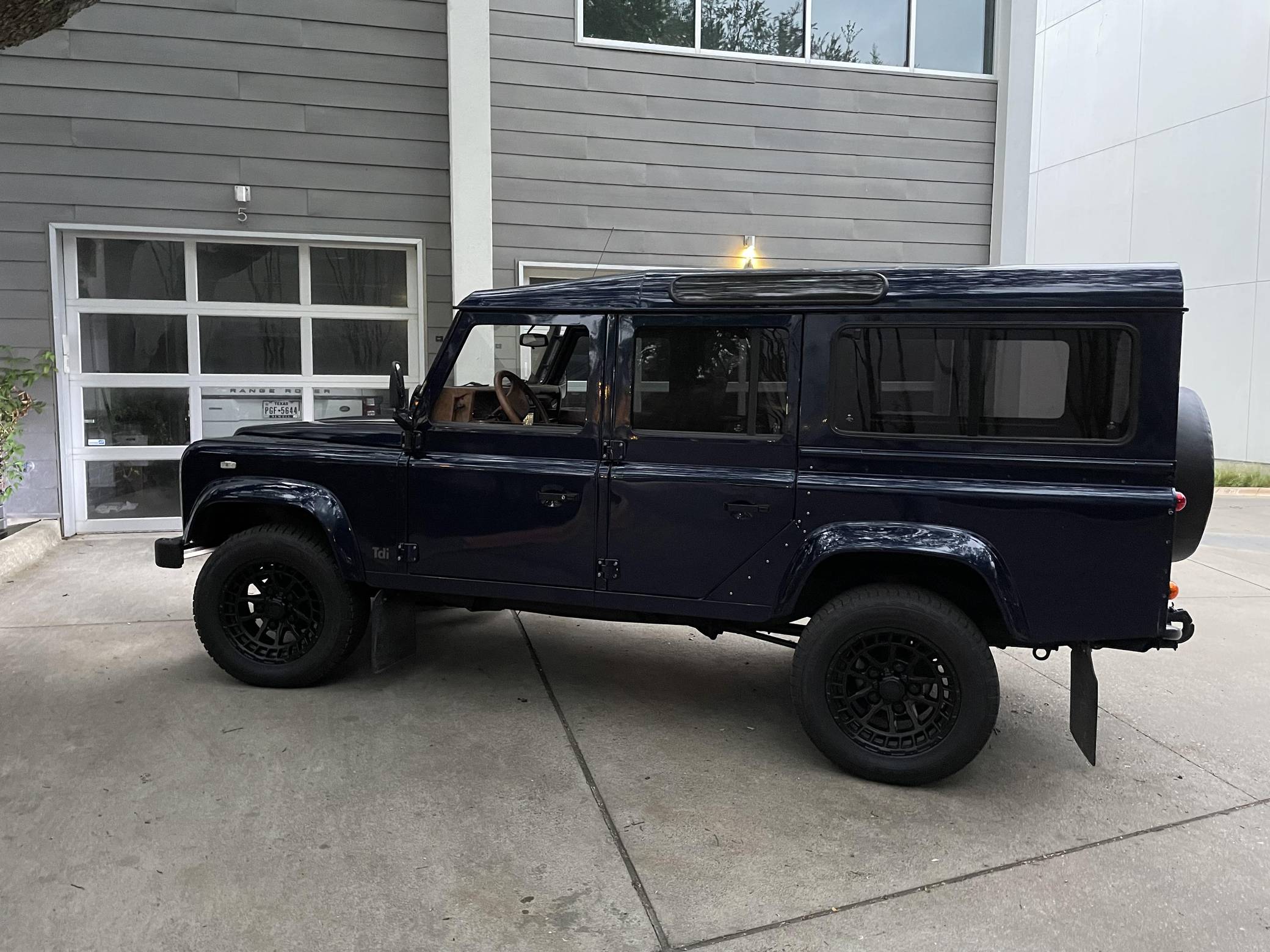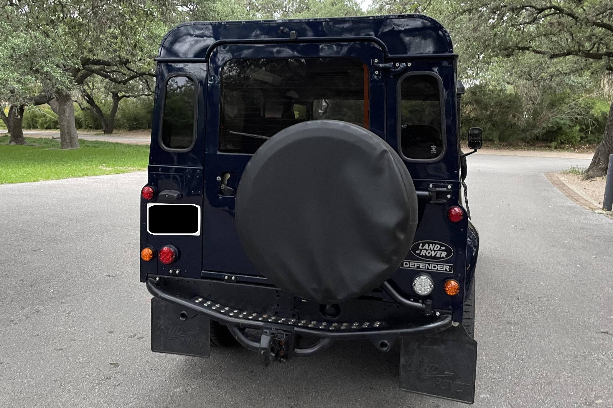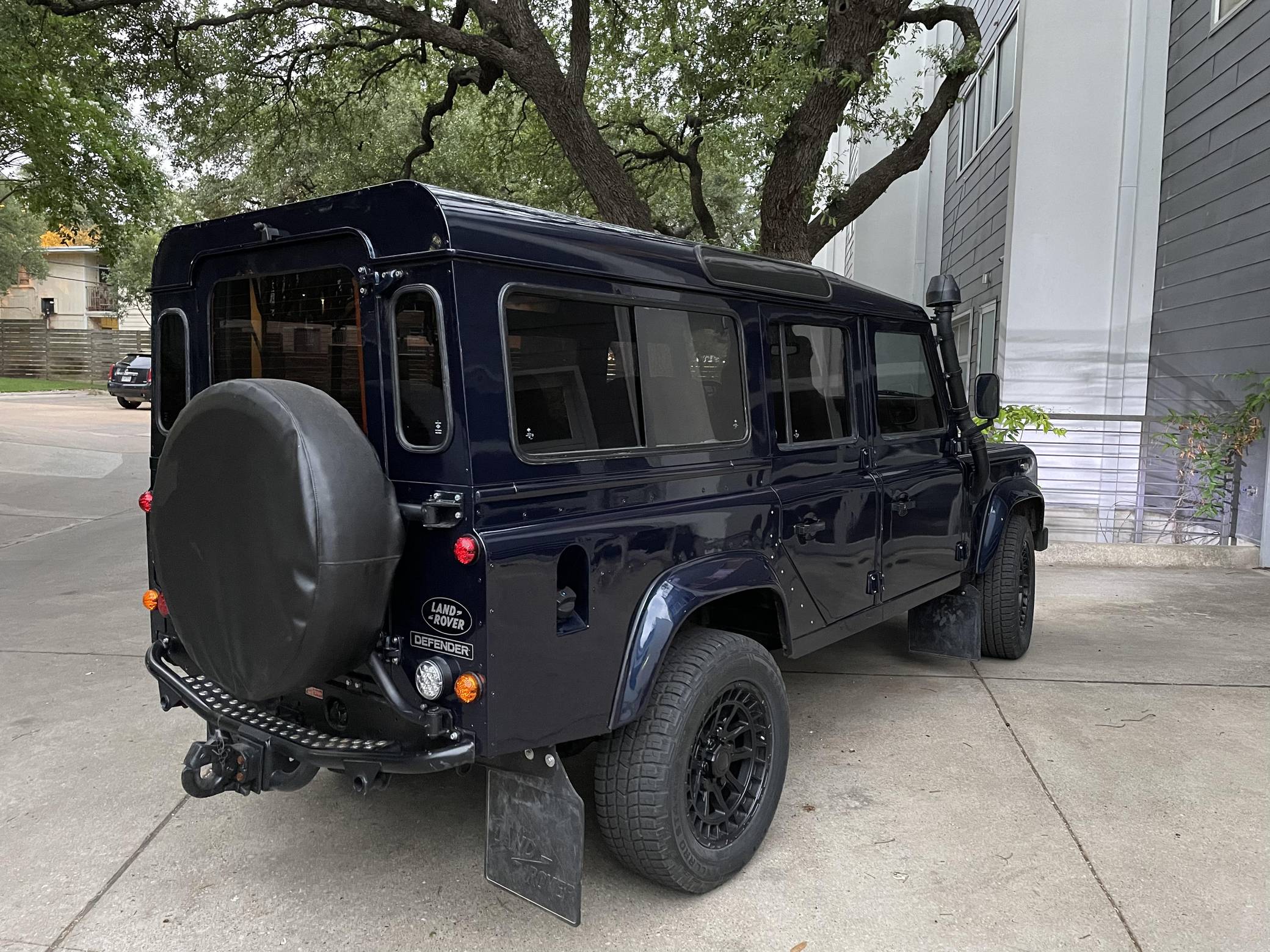 1996 Land Rover Defender 110, finished in Oslo Blue with a tan interior. This Defender is a Turkey-spec, left-hand-drive truck. Imported from Turkey in March 2022 by the seller, it’s equipped with a metric instrument cluster and its odometer currently shows about 76,800 kilometers, which represents approximately 47,800 miles. Modifications to this Defender are extensive, and the full list is detailed below. include a complete repaint to Oslo Blue, 18-inch aftermarket wheels, LED headlights and taillights, new vinyl upholstery for the seats, dash, door cards, headliner, retrofitted air conditioning, and aftermarket center consoles front and rear. Photos from the repaint work can be found in the photo gallery. Land Rover's celebrated Defender arrived in 1990 as an evolution of the 90/110 released in 1983. Shaped like the box it came in, it remained an unapologetically basic off-roader built for extremely demanding terrain, but it gained an available turbodiesel engine that made it more capable on the pavement. England's favorite workhorse remained in production with minor but regular updates until regulations killed it off in 2016. Few were sold new in America, and none were sent here with a turbodiesel engine. Power comes from a 2. 5-liter "300TDi" turbodiesel 4-cylinder engine, rated at 111 horsepower and 195 lb-ft of torque. It spins the four wheels via a 5-speed manual transmission and a 2-speed transfer case.
