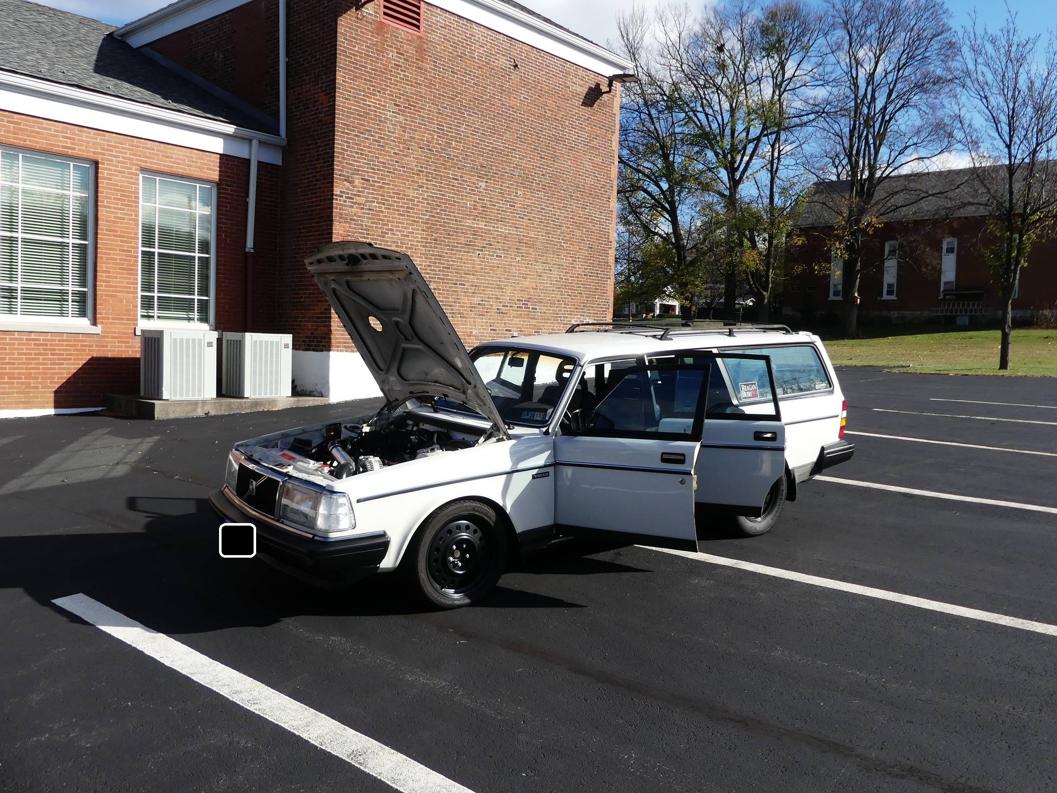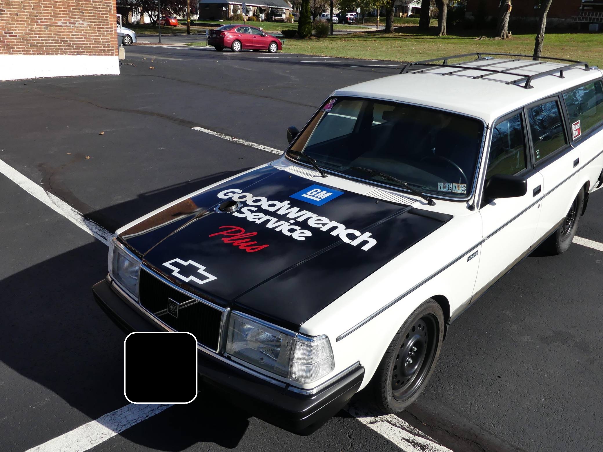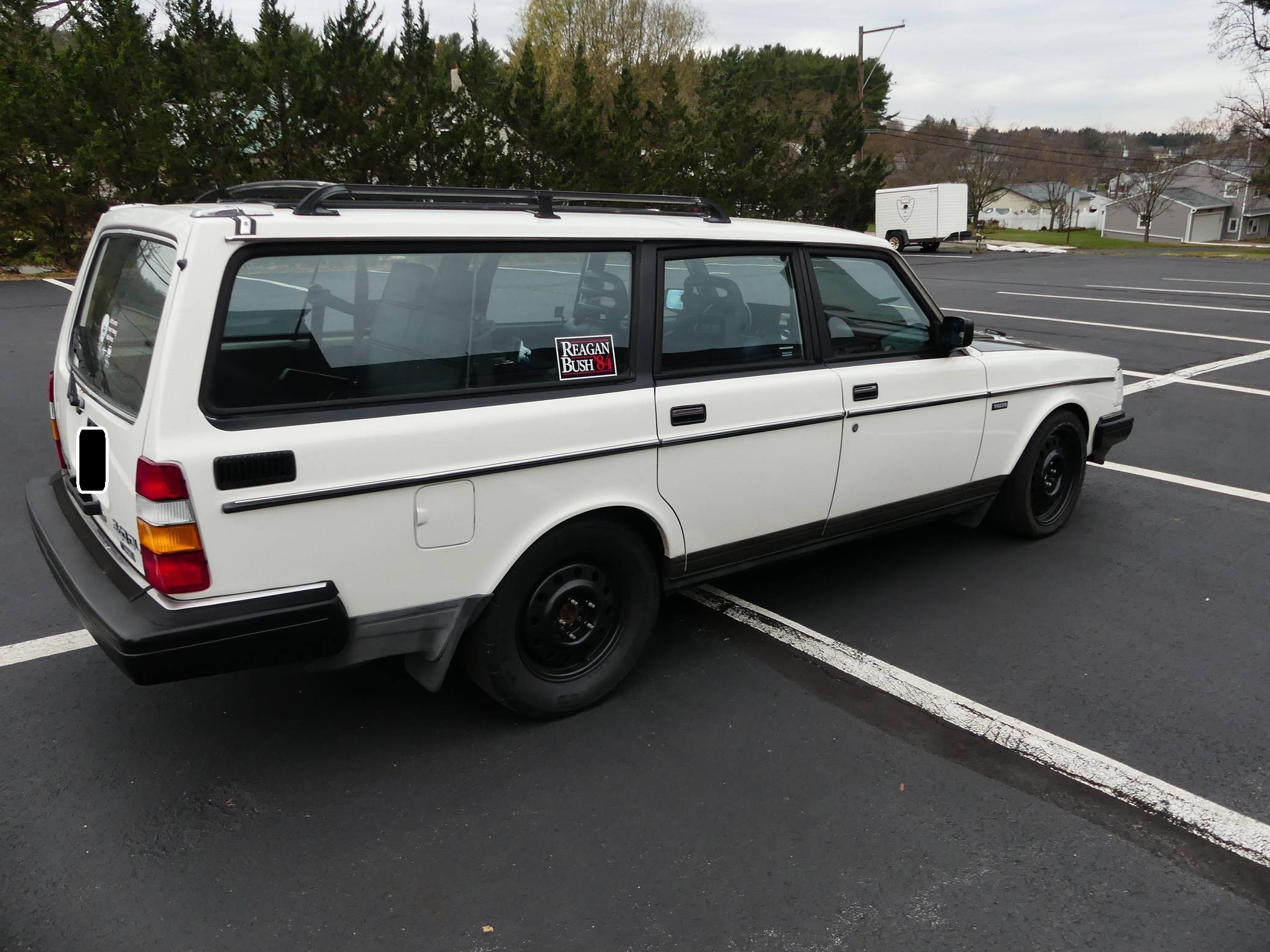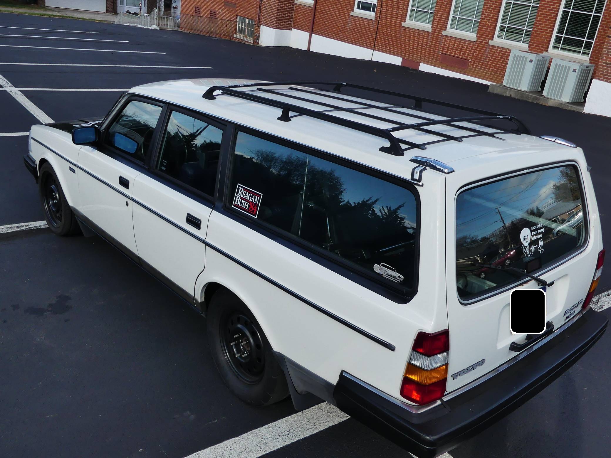 THIS… is a 1988 Volvo 240 DL Wagon, finished in white with a blue interior. This 240 DL's factory-fitted inline-4 has been replaced with a 6. 0-liter "LS" V8 and a GM-sourced "4L80" 4-speed automatic transmission. The list of modifications reported by the seller also includes a Jarrett Faggart Racing camshaft ground by ISKY Racing Cams, a VSRacing Next Gen 7875 turbocharger, Bosch 210lb fuel injectors, a TransGo shift kit, a Ford Explorer 8. 8-inch rear axle with 3. 27 rear gear ratio and carbon fiber clutch pack, staggered Cragar steel wheels with Mickey Thompson ET Street Radial rear tires, and a black vinyl-wrapped "Dale Earnhardt" hood with custom exhaust outlet. The full list of modifications can be seen below. A partial list of notable equipment includes a roof rack, vinyl upholstery, heated front seats, and rear-facing 3rd-row jump seats. Volvo launched the 240 in 1974 as a continuation of the 140-Series that preceded it by nearly a decade, and together they combined for an astonishing 27-year production run. The affectionately-known "brick" was offered in coupe (242), sedan (244), and wagon (245) form, and was available with automatic or manual transmissions in a variety of trim configurations. They all carried Volvo's legendary reputation for safety and durability, and after decades of serving as family haulers in the suburbs, these cars are now commanding an enthusiastic following. Power comes from a 6. 0-liter "LS" V8 that makes up to 701 horsepower and 648 lb-ft of torque on E85 fuel, according to a dyno run video viewable below. Output is sent to the rear wheels via a GM "4L80" 4-speed automatic transmission.