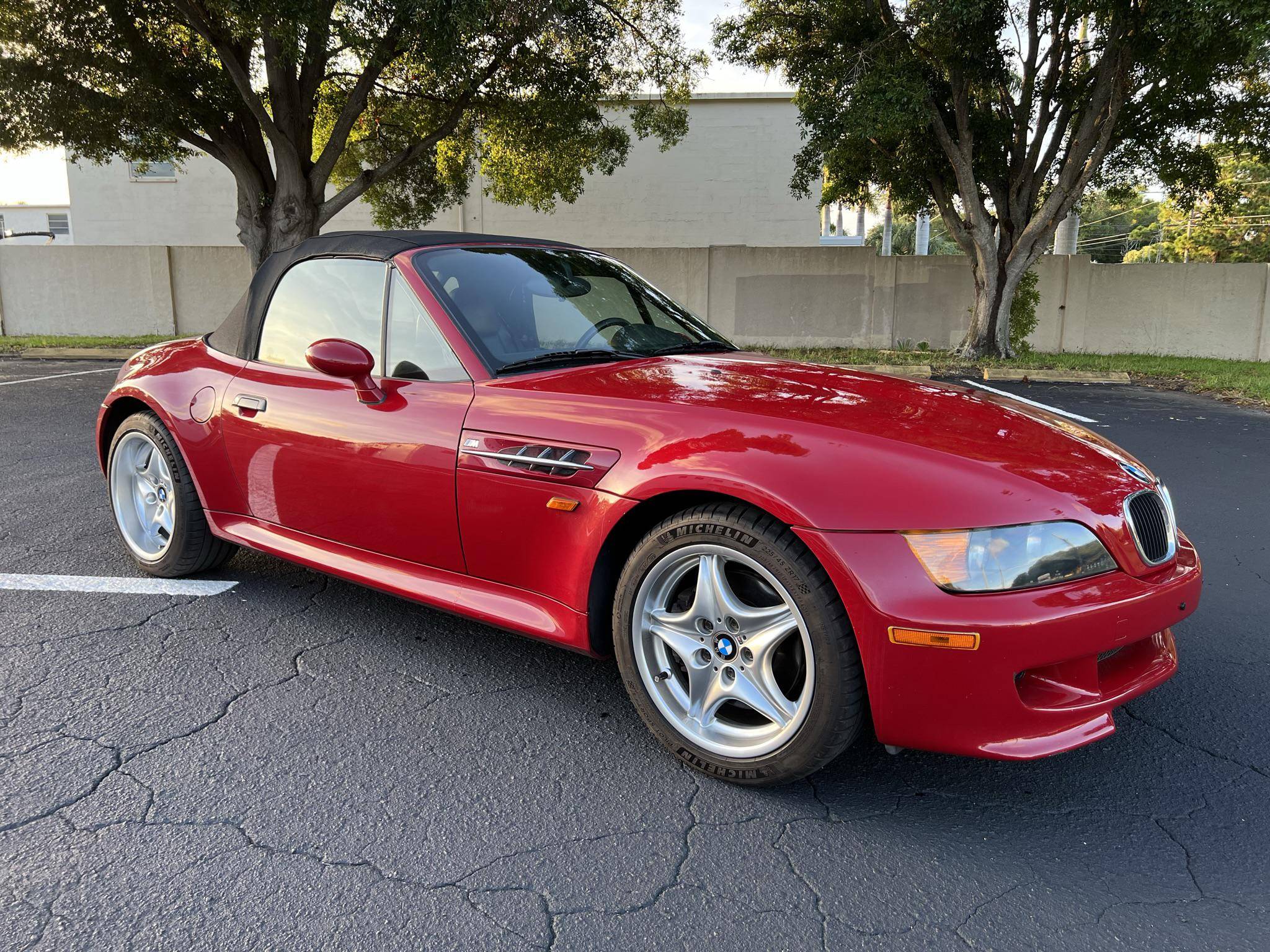 THIS… is a 1998 BMW Z3 M Roadster, finished in Imola Red with a black soft top and black interior. This Z3 M features a 5-speed manual transmission. According to the build sheet provided in the gallery, factory equipment includes 17-inch Style 40 wheels, a limited-slip differential, a power-retractable soft top, leather upholstery, air conditioning, cruise control, and a Harman/Kardon sound system. Modifications reported by the seller include a Dinan supercharger, ECU tune, intake, and strut bar. Based on the Z3, the M Roadster made its debut in 1998 with a more powerful engine shared with the E36 M3, a sportier suspension system, and wider wheel arches, among other changes. It was immediately hailed as one of the best driver's cars on the market. Power comes from an "S52" 3. 2-liter straight-6, rated at 240 horsepower and 236 lb-ft of torque. Due to the modifications performed to this Z3, it may produce more power, but a dyno sheet was not provided to confirm. Output is sent to the rear wheels via a 5-speed manual transmission.