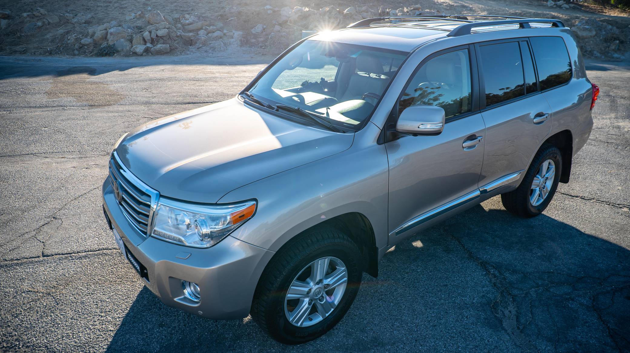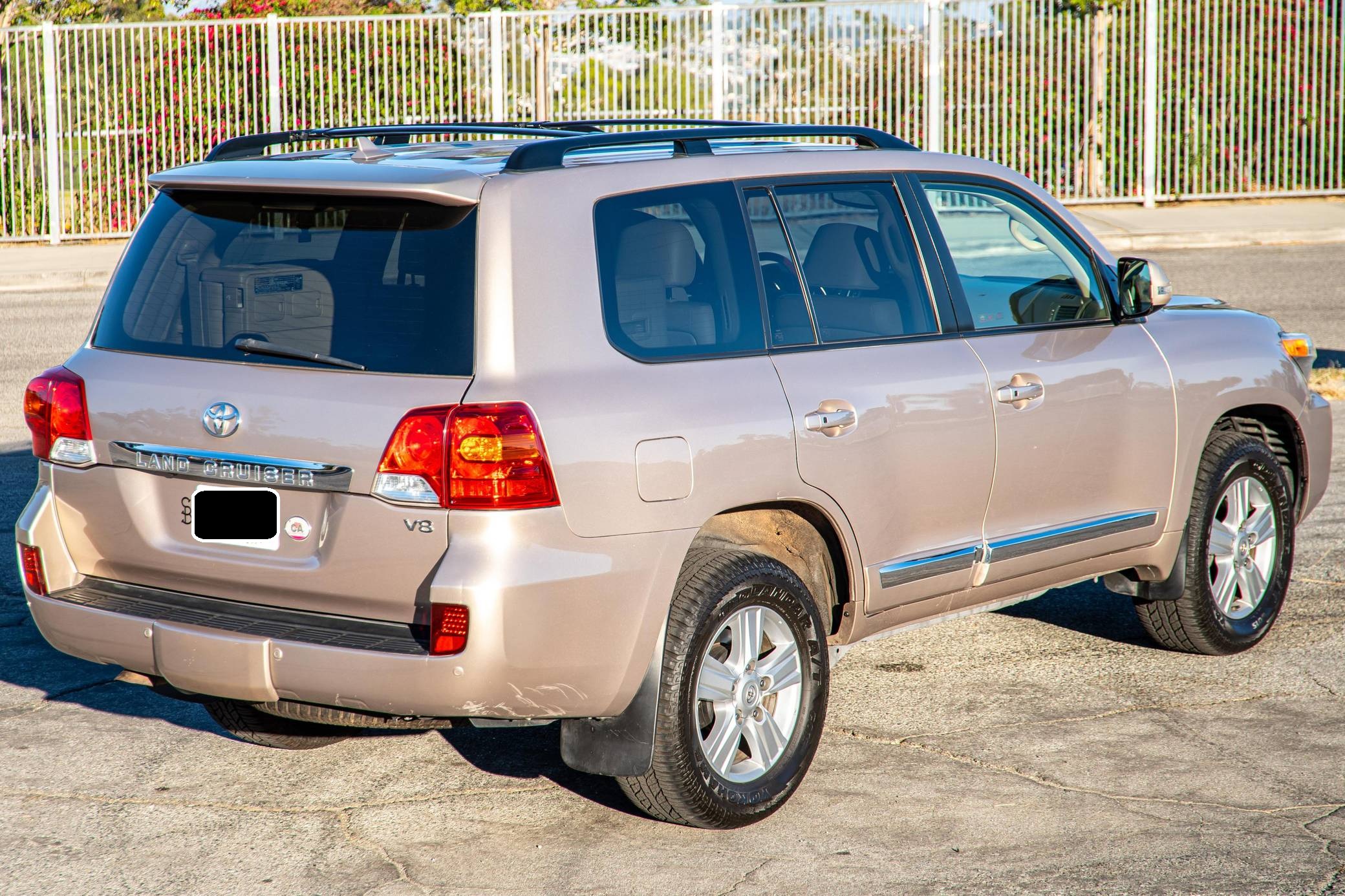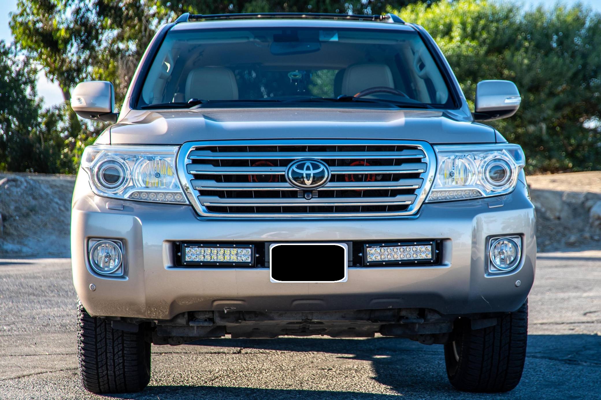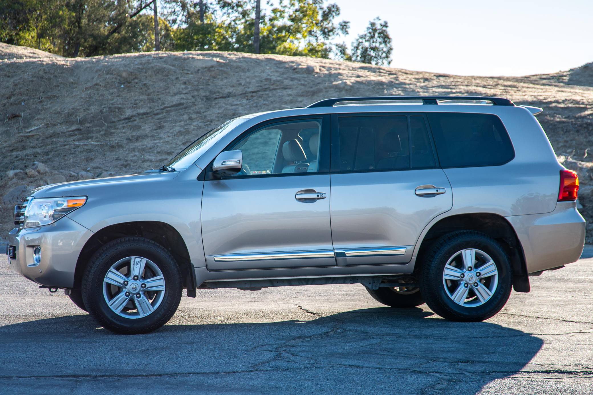 2013 Toyota Land Cruiser, finished in Sonora Gold Pearl with a Sandstone interior. Factory equipment includes leather upholstery, heated and cooled front seats, adaptive cruise control, a rear DVD entertainment system, navigation, and a JBL Synthesis audio system. Modifications to this SUV include an Old Man Emu suspension system, Hella horns, Rigid LED driving lights, and a fire extinguisher. Toyota's 200-Series Land Cruiser arrived for 2008 with a more powerful V8 shared with the Tundra, a longer list of technology added to increase on-road comfort and off-road prowess, and a quieter interior. It retained rugged body-on-frame construction but it put an even greater emphasis on luxury than its predecessor. Toyota made several updates to the 200-Series before production ended in 2021. Power comes from a 5. 7-liter V8, rated at 381 horsepower and 401 lb-ft of torque. Output is sent to the rear or all four wheels via a 6-speed automatic transmission and a 2-speed transfer case.
