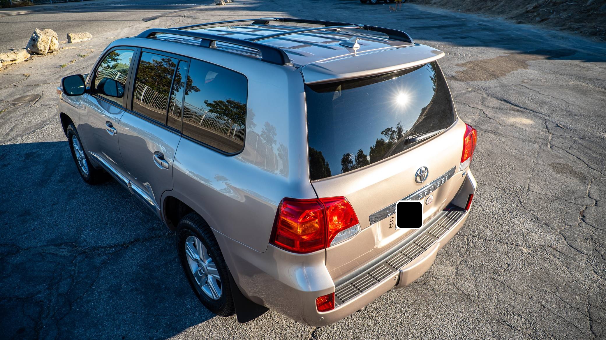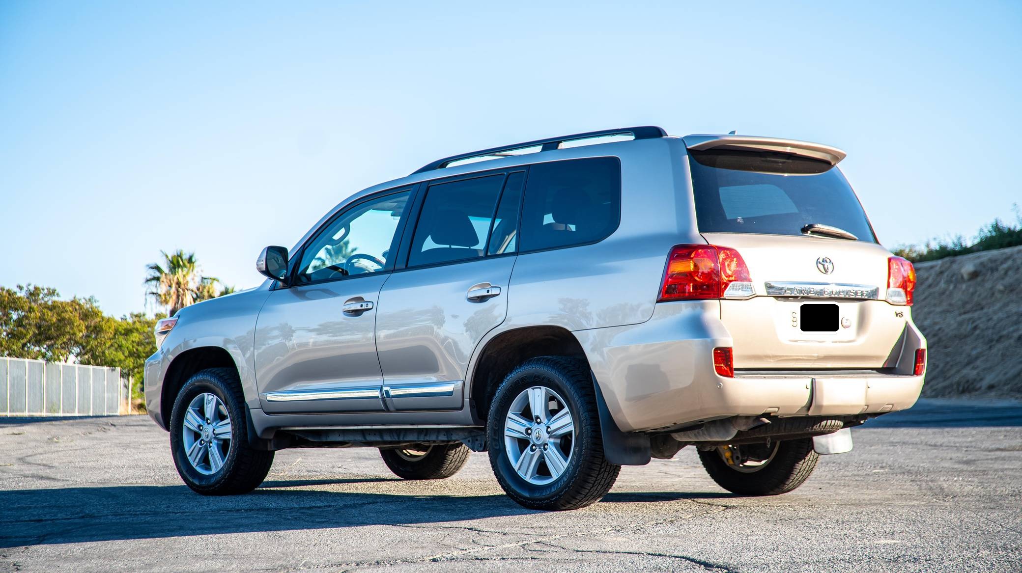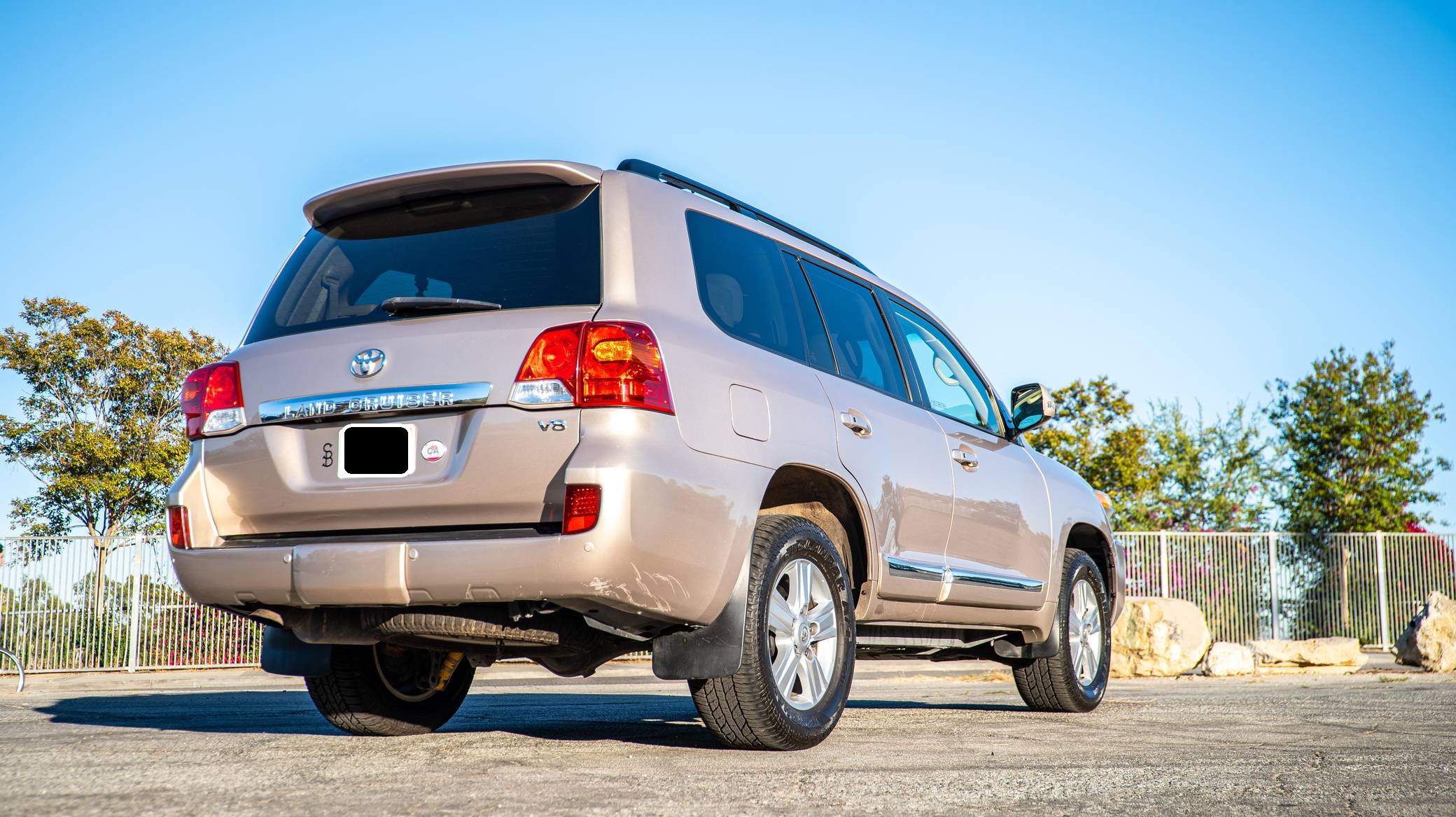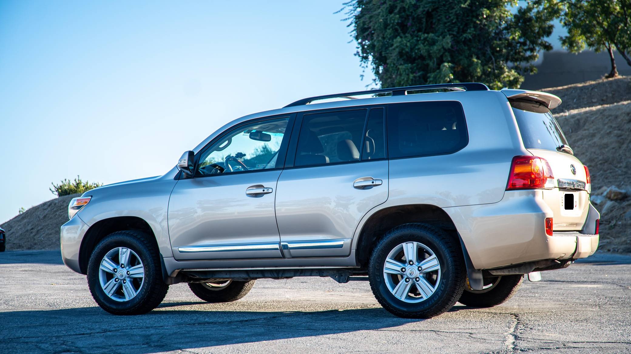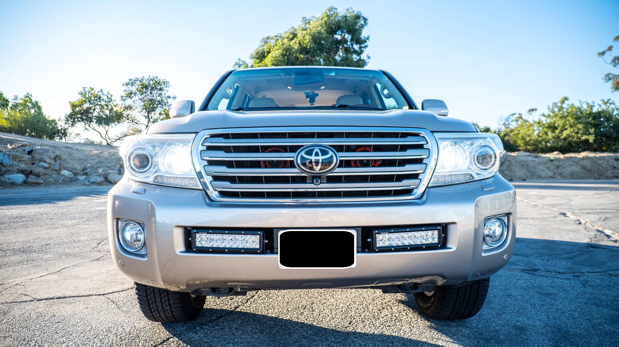 2013 Toyota Land Cruiser, finished in Sonora Gold Pearl with a Sandstone interior. Factory equipment includes leather upholstery, heated and cooled front seats, adaptive cruise control, a rear DVD entertainment system, navigation, and a JBL Synthesis audio system. Modifications to this SUV include an Old Man Emu suspension system, Hella horns, Rigid LED driving lights, and a fire extinguisher. Toyota's 200-Series Land Cruiser arrived for 2008 with a more powerful V8 shared with the Tundra, a longer list of technology added to increase on-road comfort and off-road prowess, and a quieter interior. It retained rugged body-on-frame construction but it put an even greater emphasis on luxury than its predecessor. Toyota made several updates to the 200-Series before production ended in 2021. Power comes from a 5. 7-liter V8, rated at 381 horsepower and 401 lb-ft of torque. Output is sent to the rear or all four wheels via a 6-speed automatic transmission and a 2-speed transfer case.