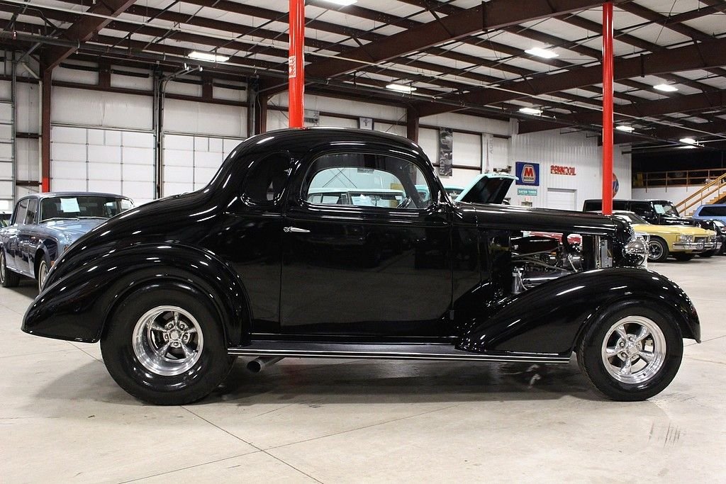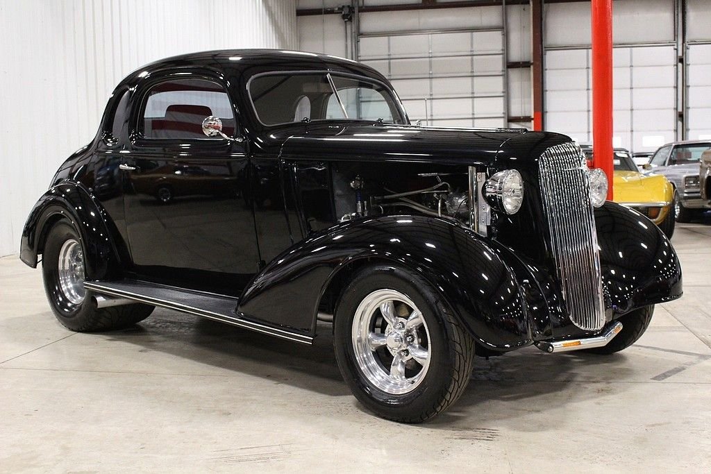 The Master Deluxe was the top trim level model from 1933 to 1940. These pre-World War II vehicles are popular collector cars for their style. Many are customized to have modern performance & comforts while maintaining the classic antique style. This '36 Chevy Coupe is a really cool build with a mean stance ready to attack the tarmac in front of it. It was restored in Florida starting in 2000 and built to be a street rod. It's powered by a built 350 horsepower, 350ci V8 engine paired with a 350 turbo automatic transmission. It features a sheet metal body, fiberglass fenders, shift kit, headers, power 4-wheel disc brakes, air conditioning, power windows, CD player/radio, Mickey Thompson racing tires, American Racing wheels, Wilwood brakes, Dolphin gauges, wood accents with center console, aux cooling fan switch, fuel switch, Billet flame steering wheel, and much more! This is a great high performance street rod that is an absolute blast to drive!